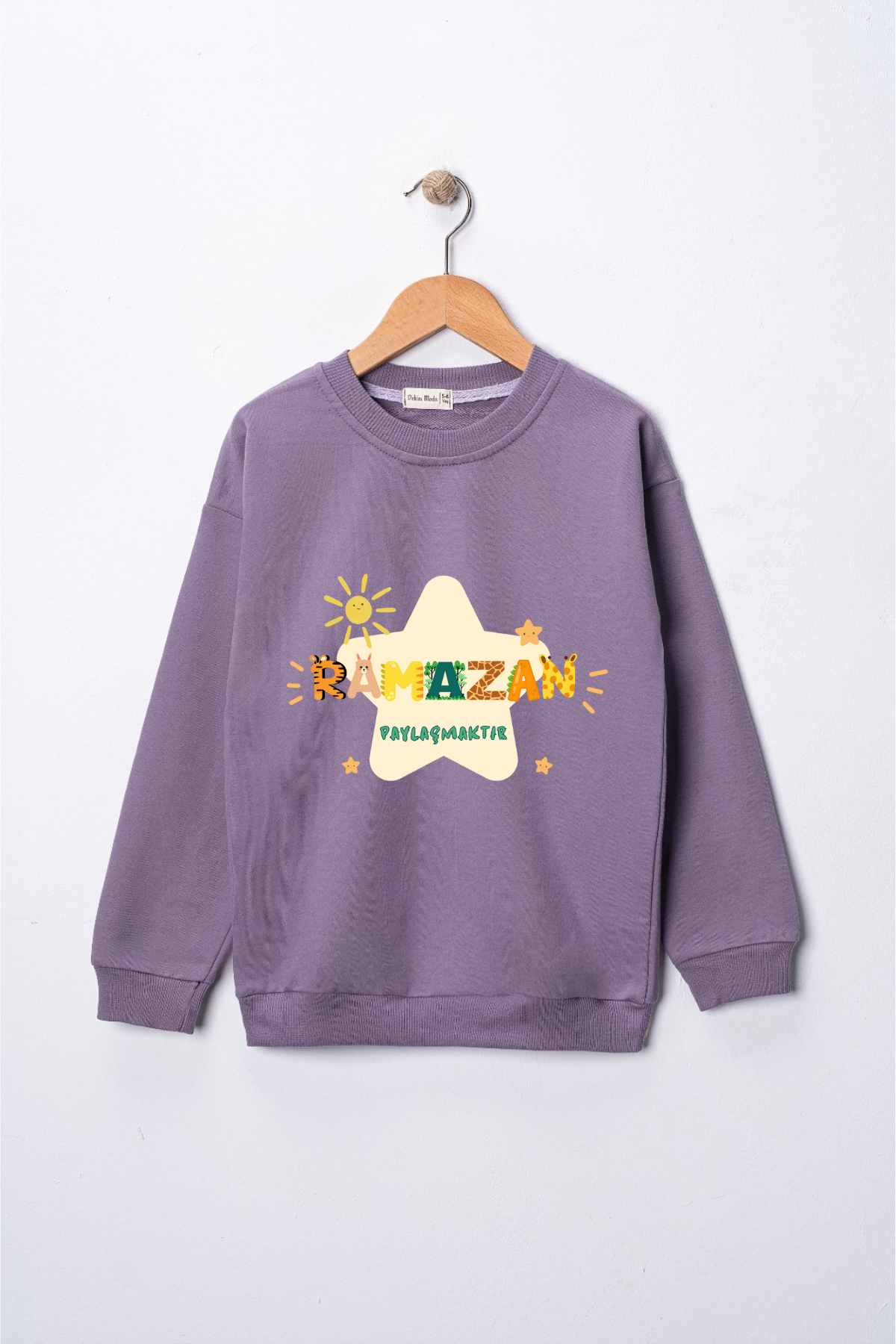 Çocuklar için Uzun kollu, pamuklu, bisiklet yaka, baskılı 2 ip sweatshirt.