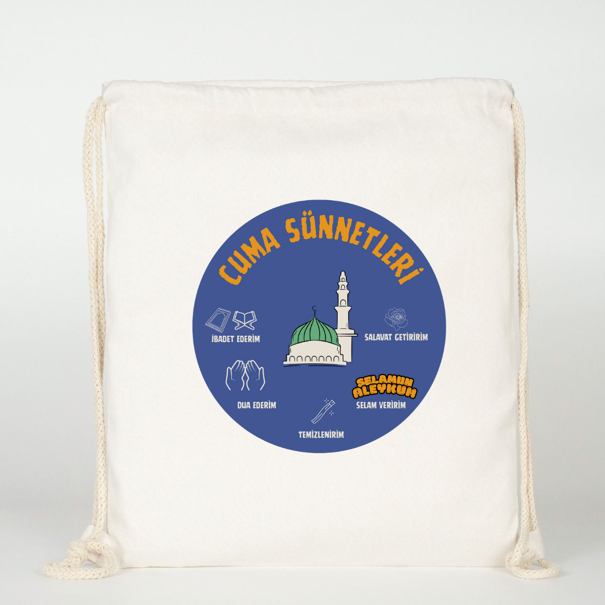 "Cuma Sünnetleri" Baskılı Ham Bez Sırt Çantası %100 Pamuk