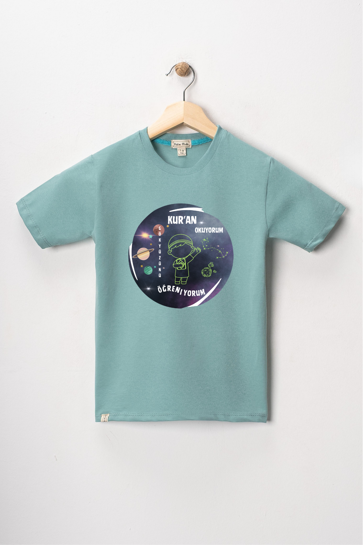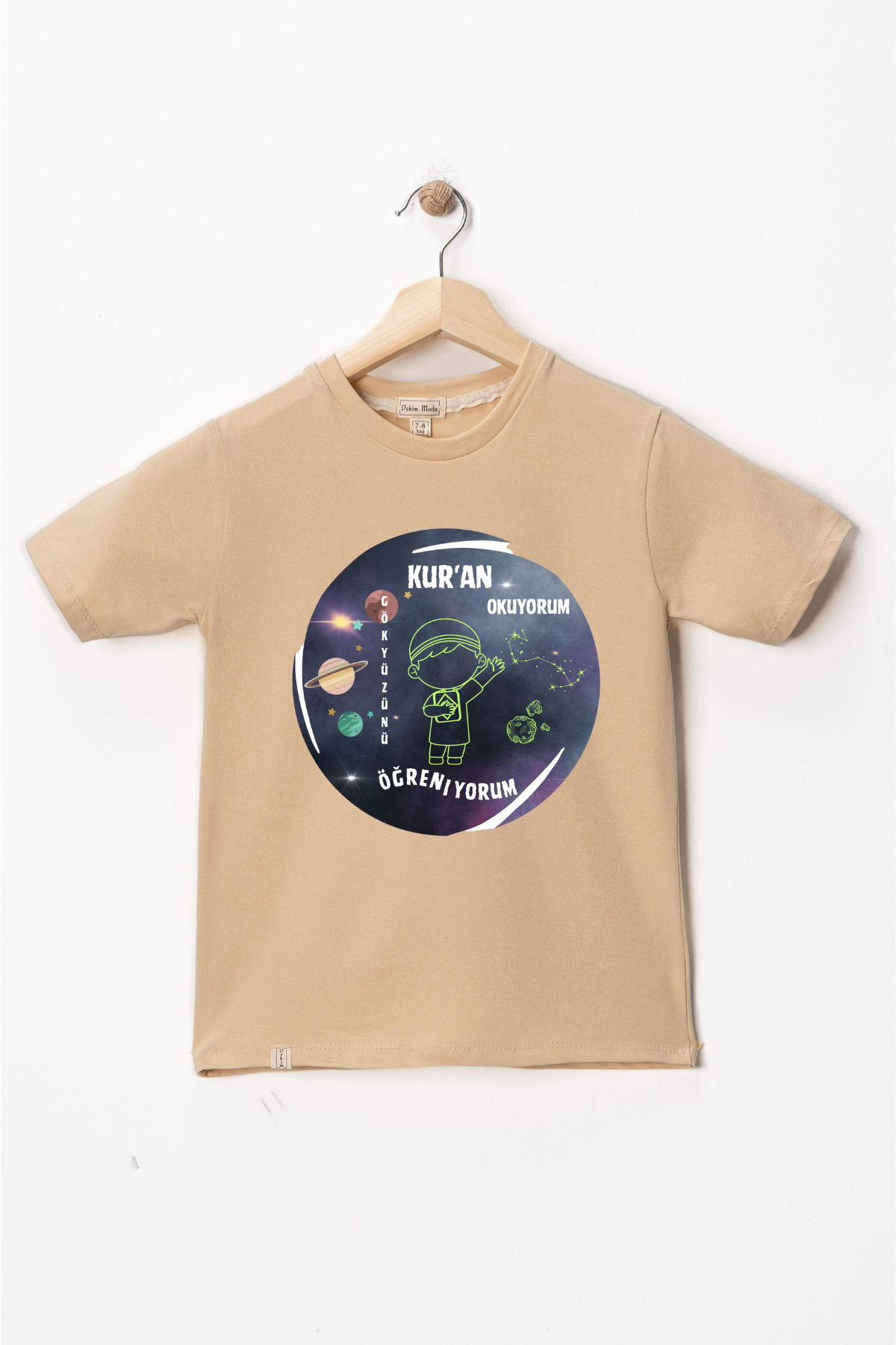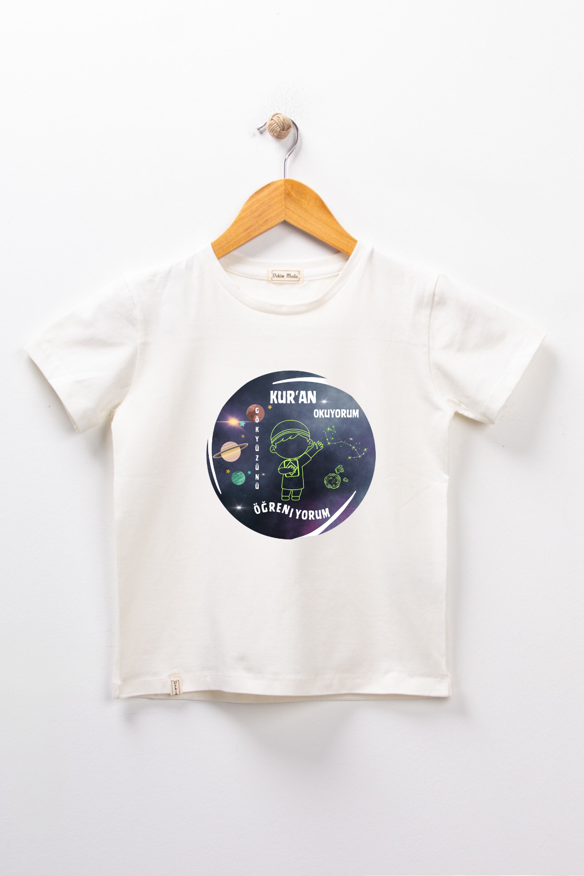 İslami tema "Kuran Okuyorum Gökyüzünü Öğreniyorum" baskılı özel tasarım üründür.