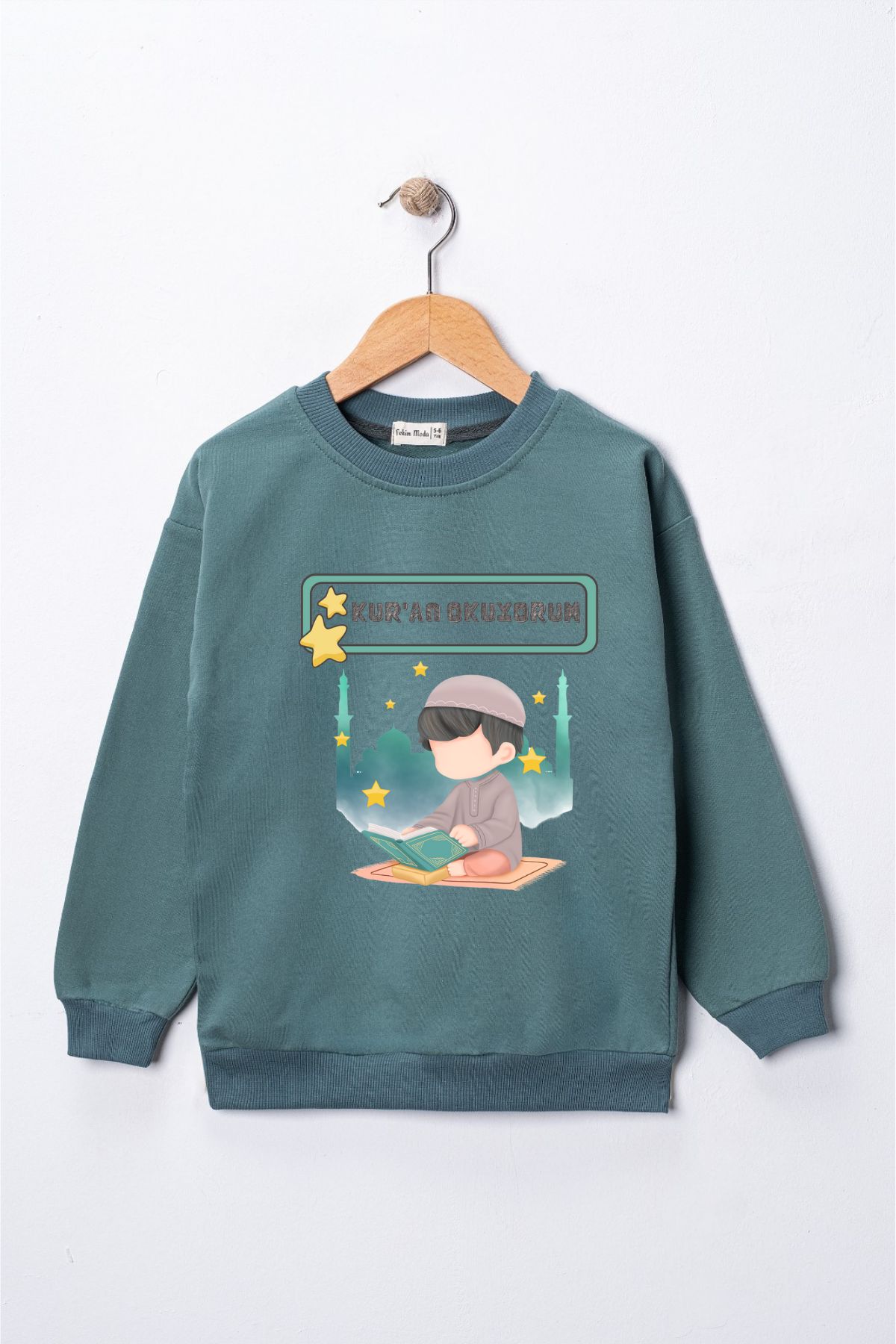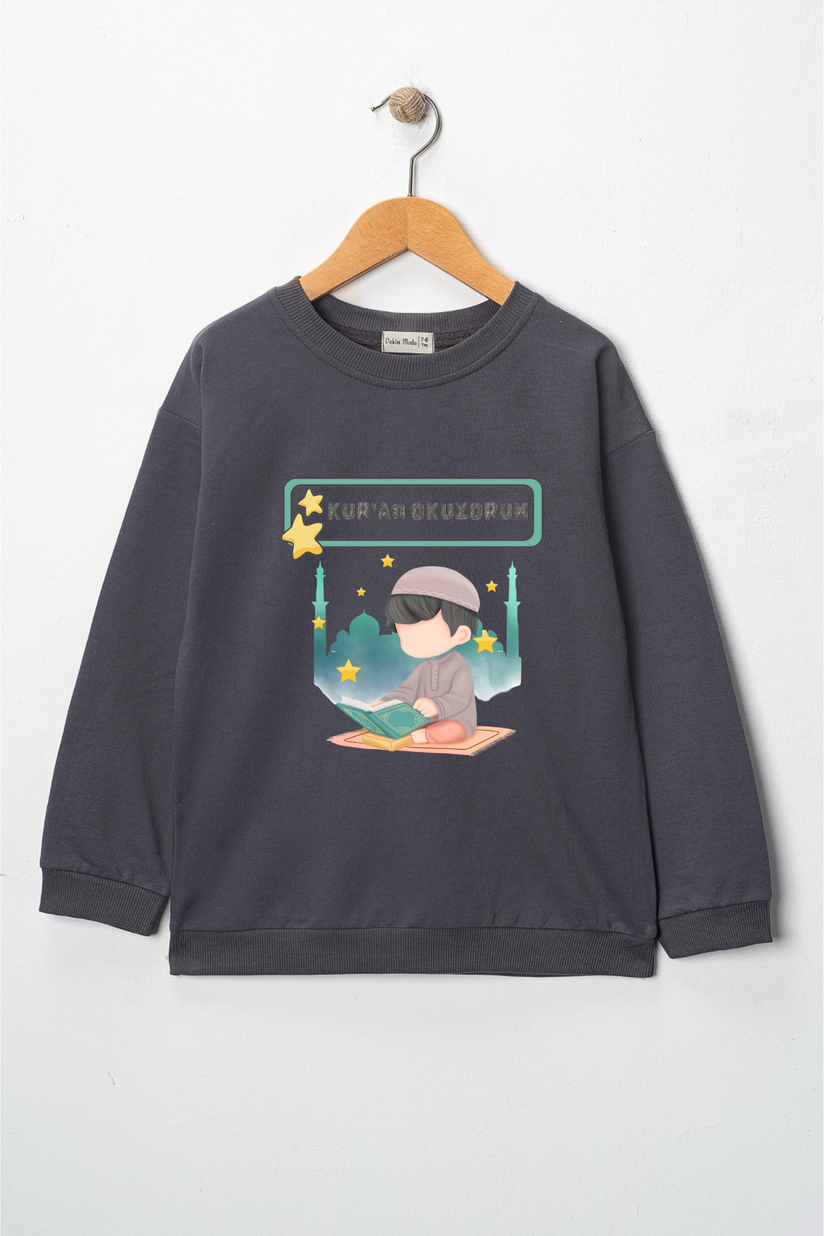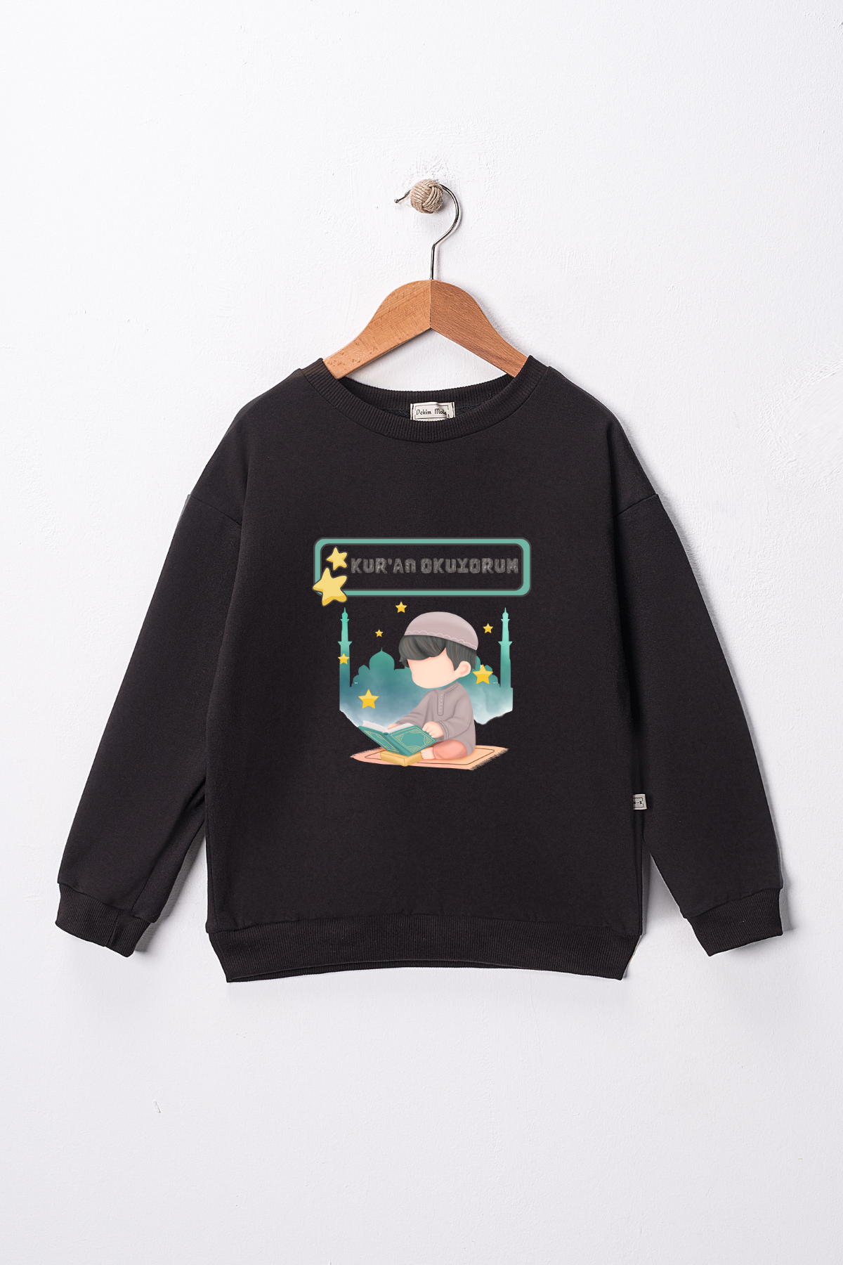 Erkek Çocuk Uzun kollu, pamuklu, bisiklet yaka, baskılı sweat.