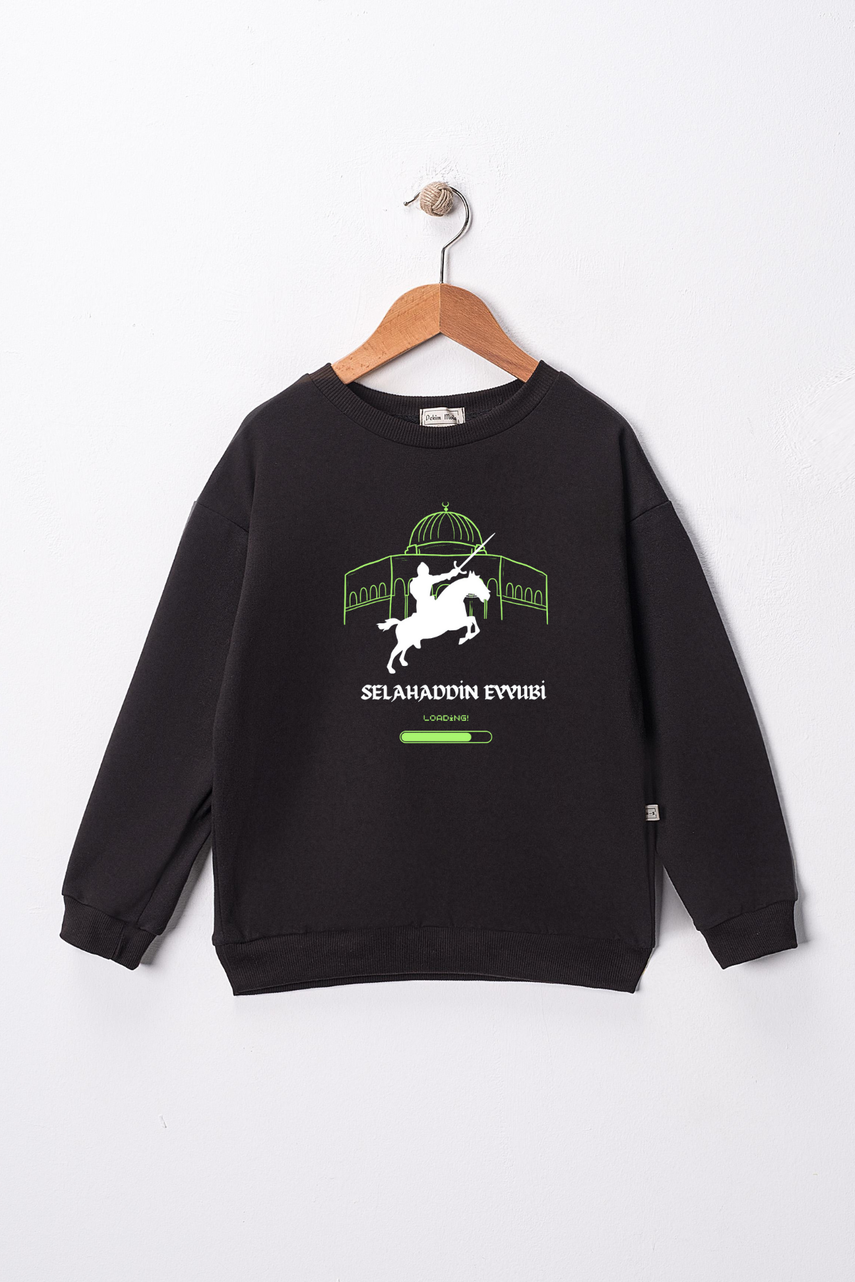 Erkek Çocuklar için Uzun kollu, pamuklu, bisiklet yaka, baskılı 2 ip sweatshirt.
