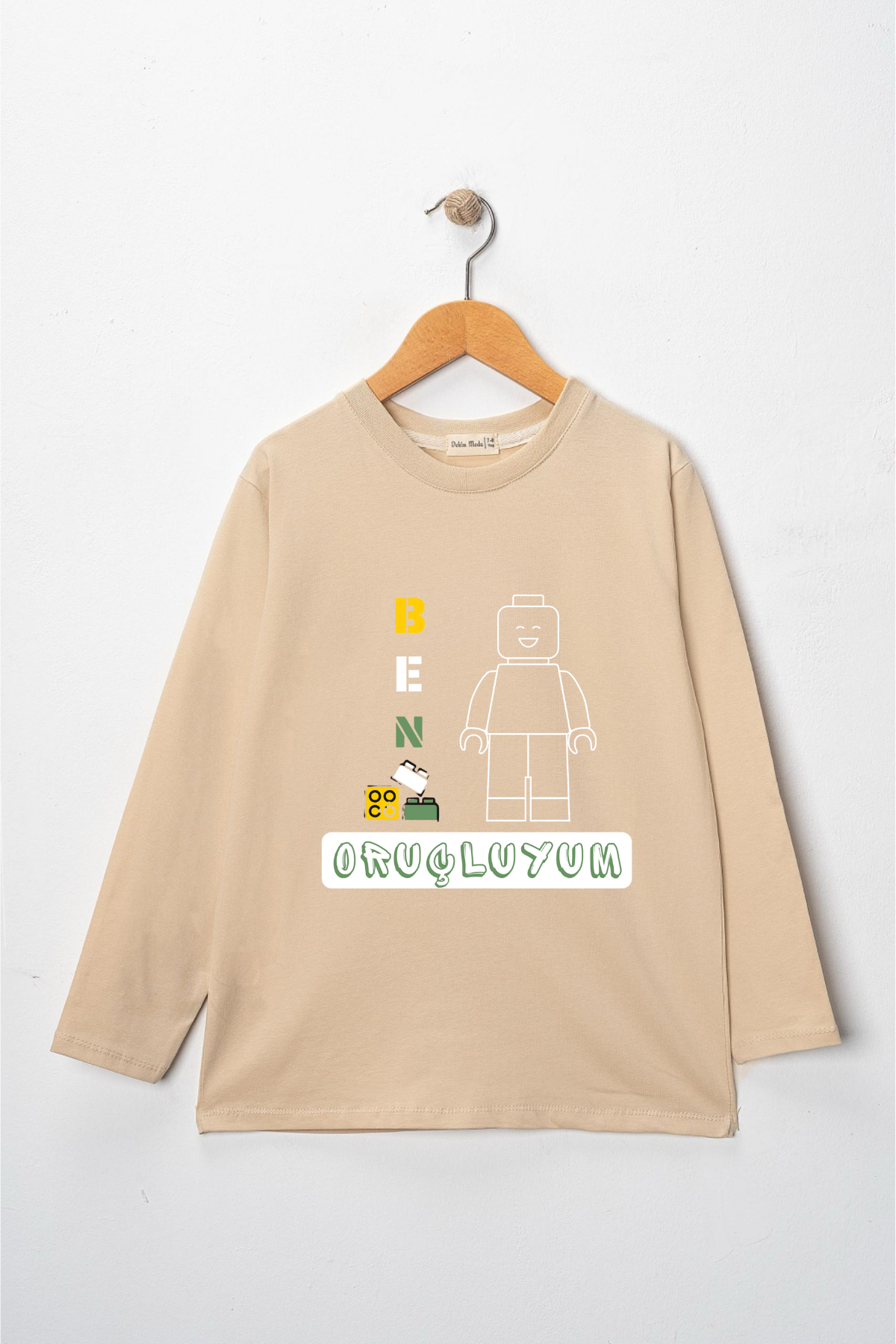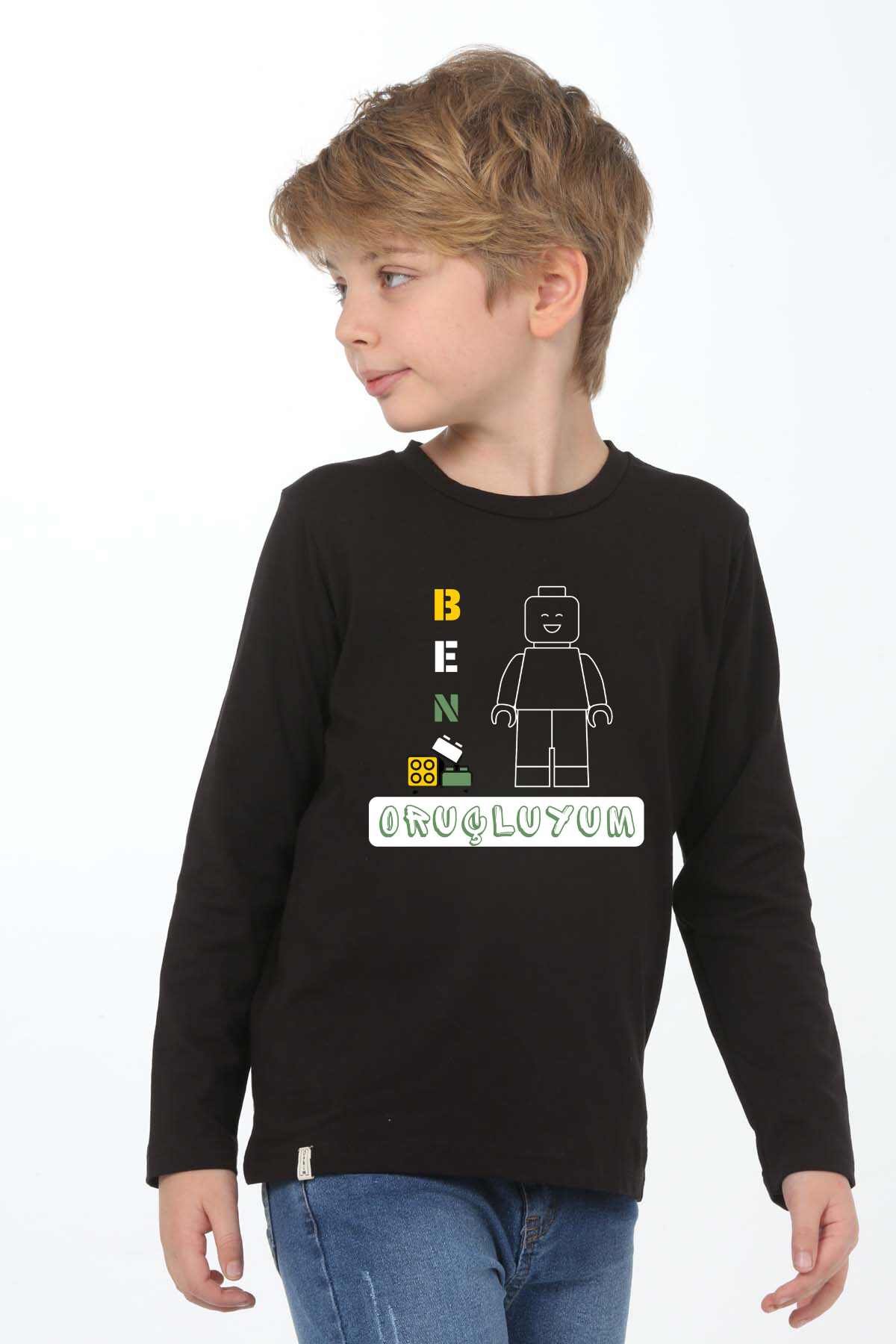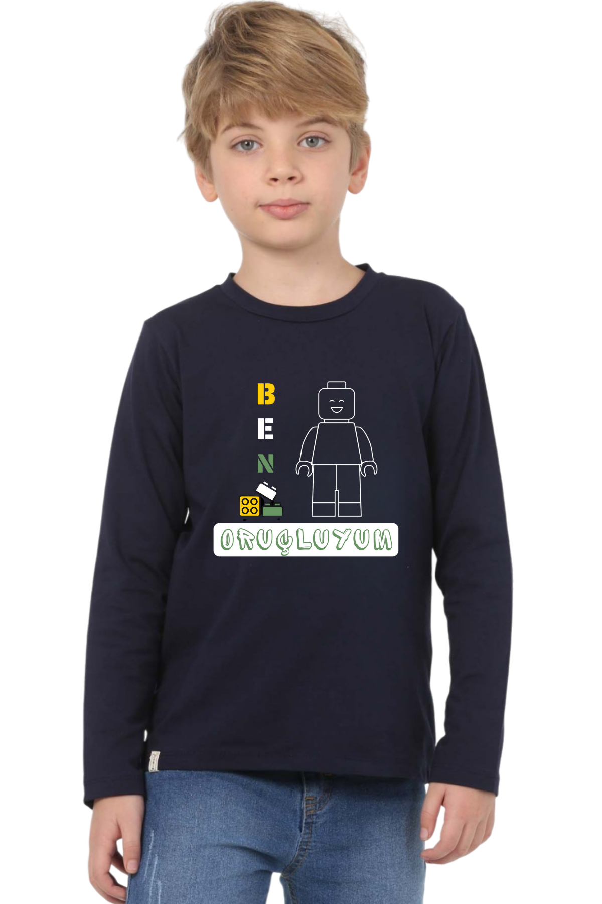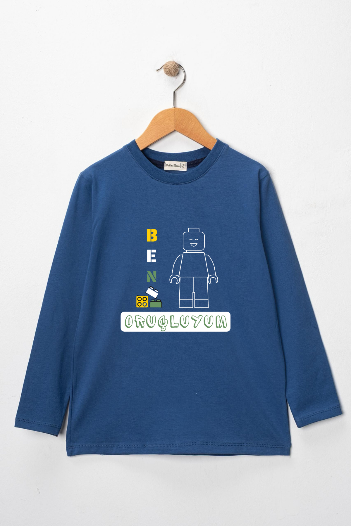 Erkek Çocuk Uzun kollu tişört, pamuklu, bisiklet yaka, baskılı t-shirt. İslami tema "Ben Oruçluyum" baskılı özel tasarım üründür. Çocuk fıtratına uygun, çocukların sevebileceği görseller kullanılarak tasarlanmıştır. Bu tişört tüm etkinliklerde çocuğuza çok güzel eşlik edecektir. Erkek çocuklarının ilgisini çeken, şık ve rahat bir ürünümüzdür. Regular (rahat/bol) kalıptır. Beden ölçülerine dikkat ederek yaşına uygun seçim yapabilirsiniz. %95 Pamuk %5 Elastan. Çok Yumuşak, esnek ve kaliteli bir üründür. Uygun sıcaklıkta yıkama yapılması halinde kumaşta çekme yaşanmayacaktır. Kumaşlarımız Oeko-Tex sertifikasına sahiptir. Ekoteks Belgesi, kumaşın zararsız olduğunu ve herhangi zararlı bir kimyasal madde içermediğini beyan etmektedir. #Özel Ürün 30 Derecede makinede yıkanabilir • Beyazlatıcı kullanımı önerilmez • Kurutucu kullanımı önerilmez • Tersten ve düşük ısı ile ütü önerilir