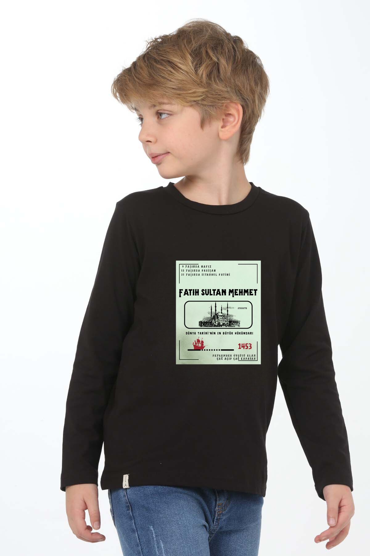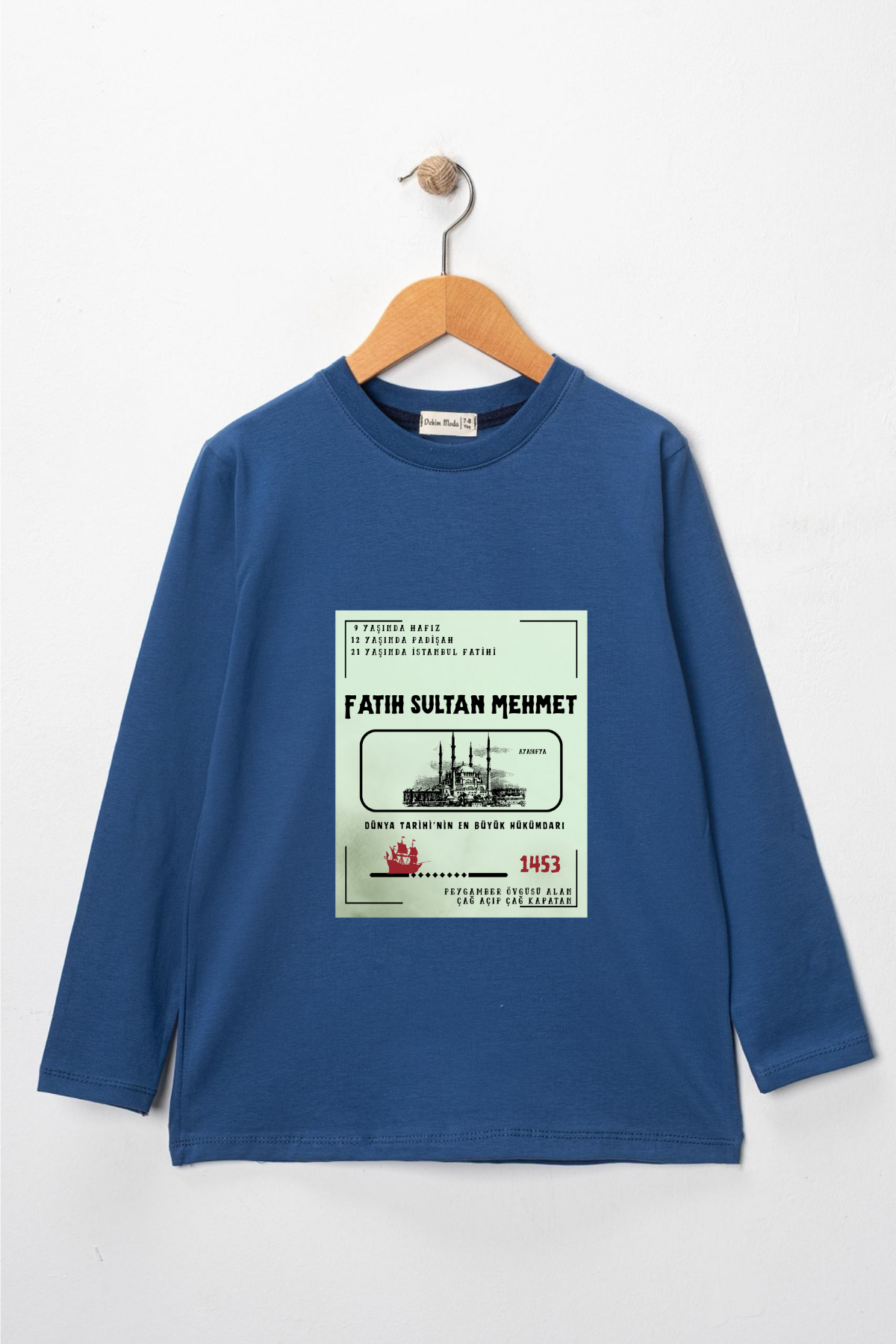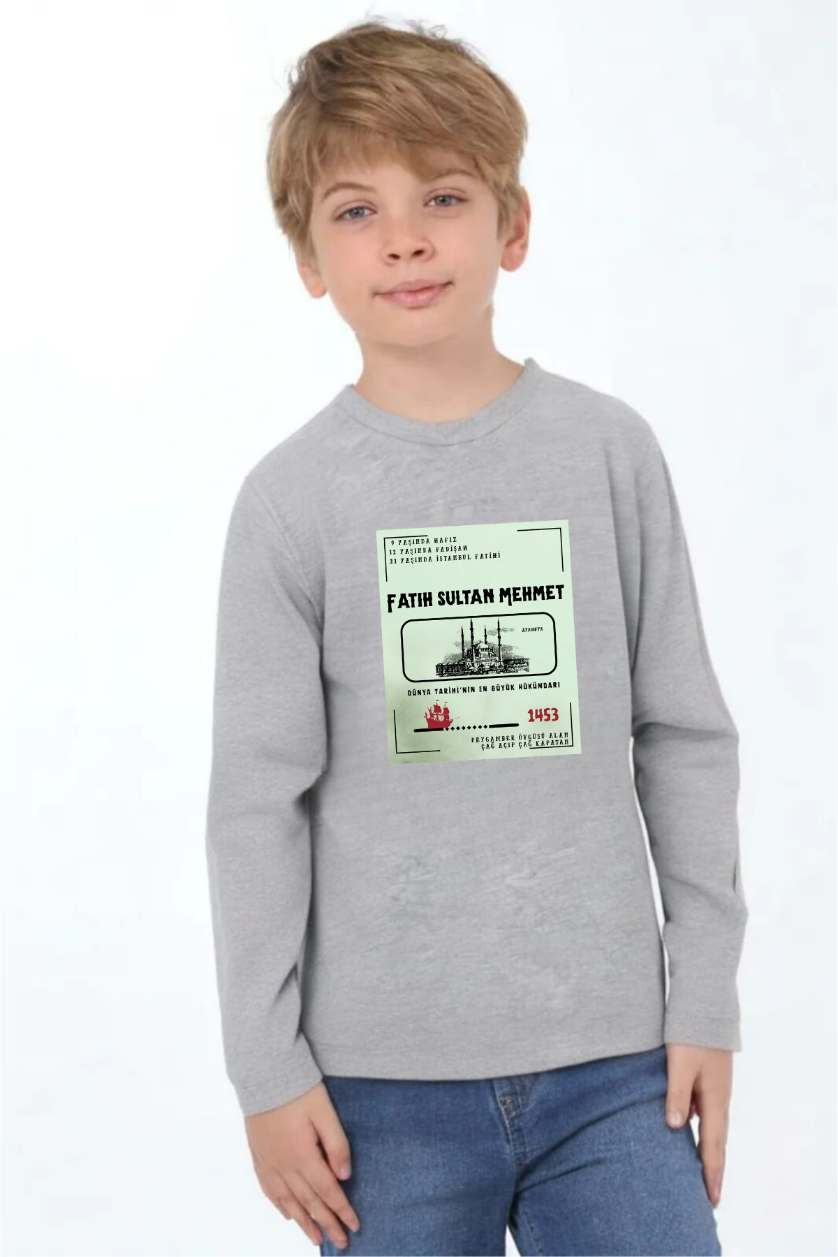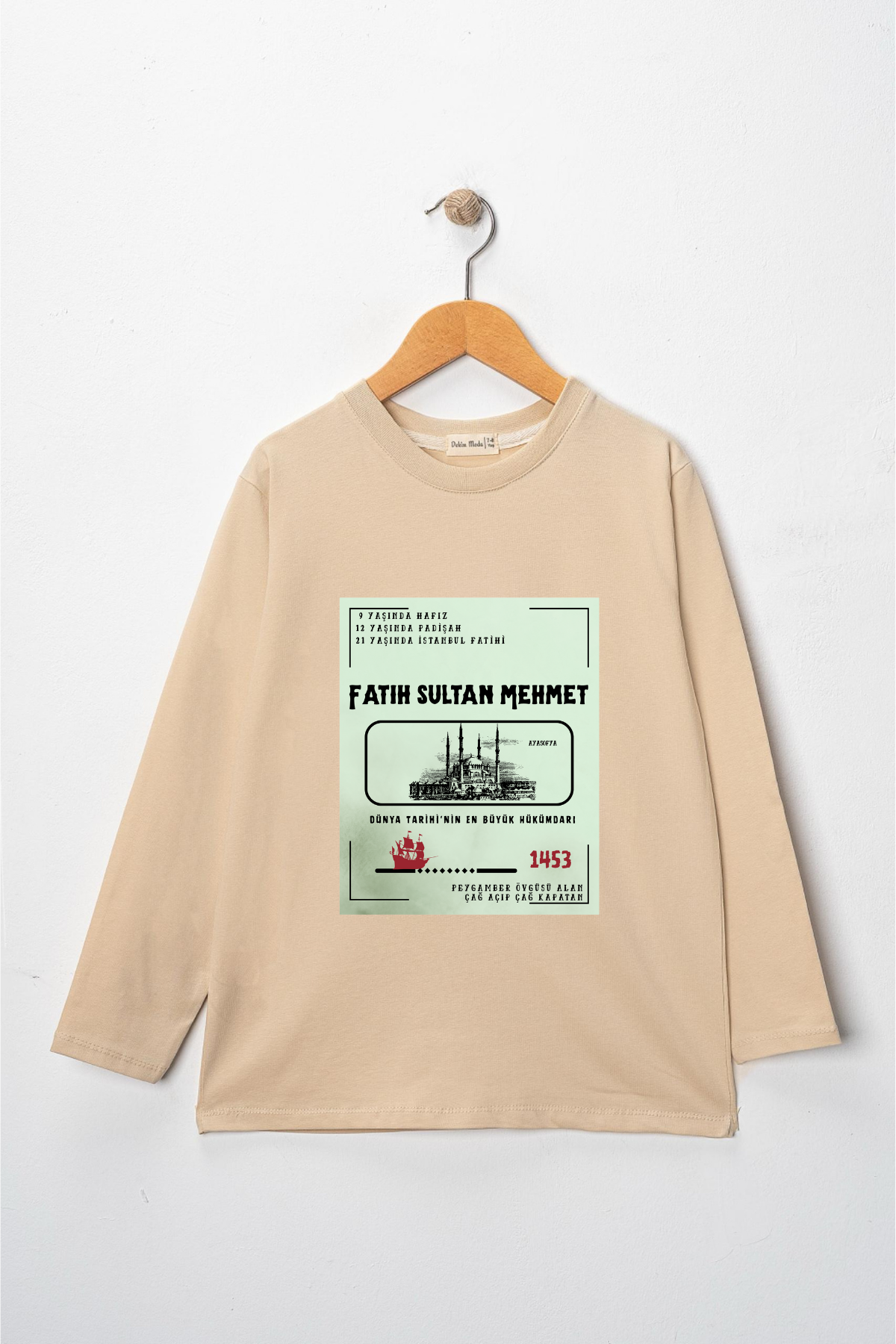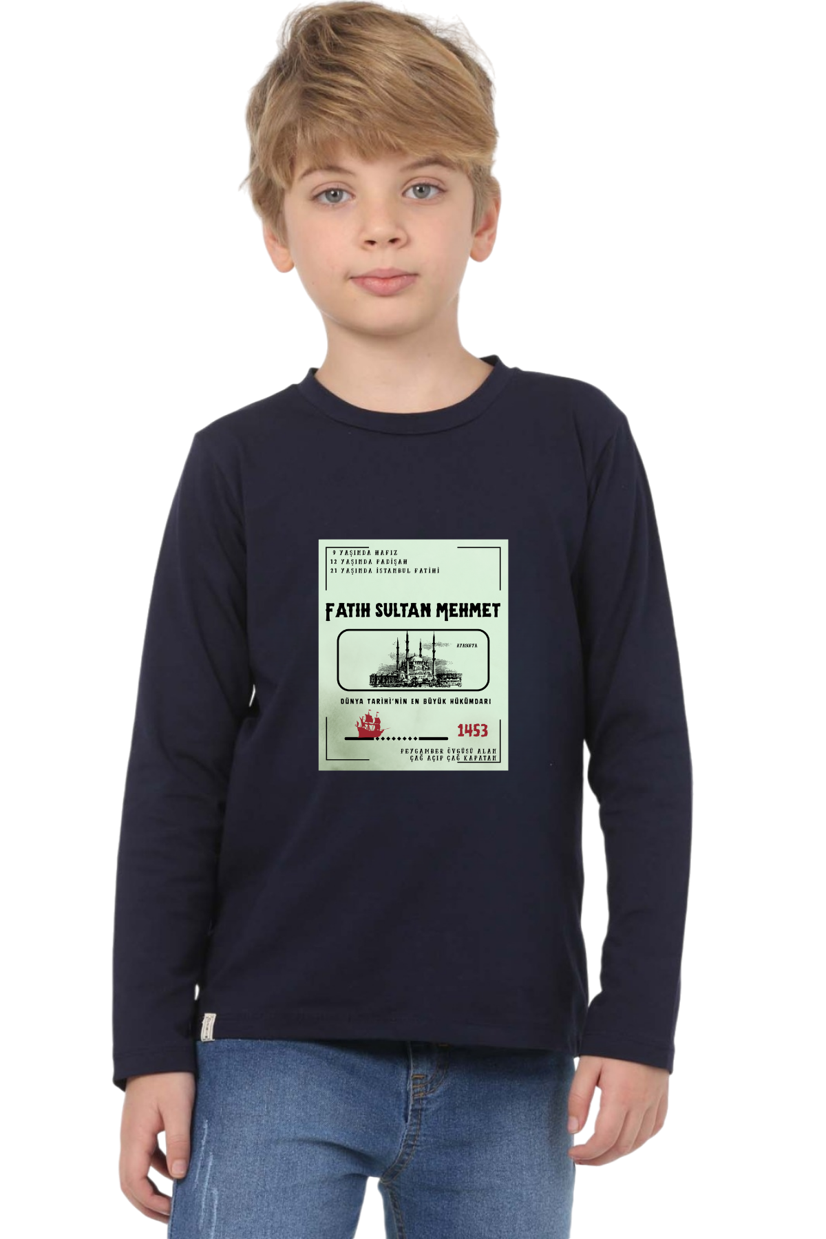 Uzun kollu, pamuklu, bisiklet yaka, "Fatih Sultan Mehmet"  baskılı özel tasarım üründür. Çocuk fıtratına uygun, çocukların sevebileceği görseller kullanılarak tasarlanmıştır.