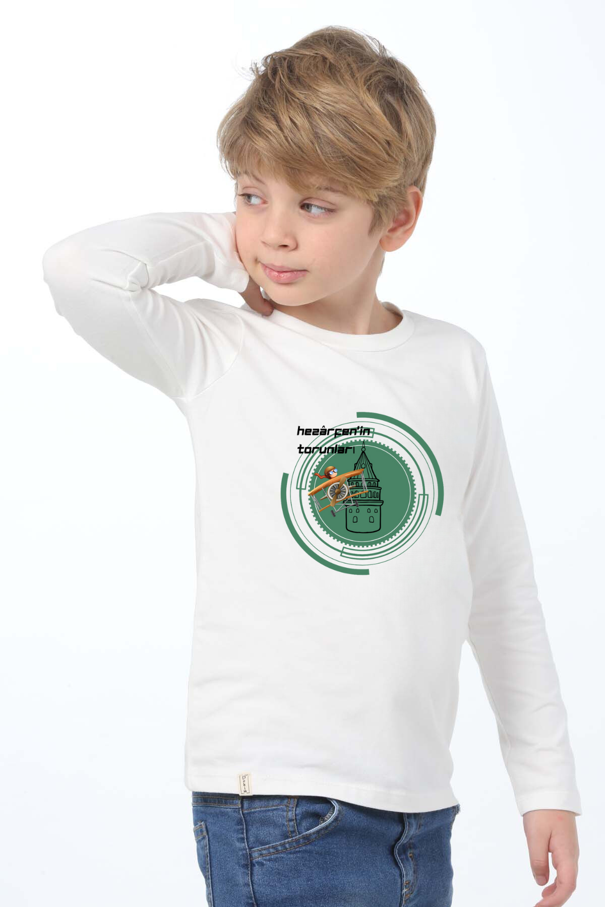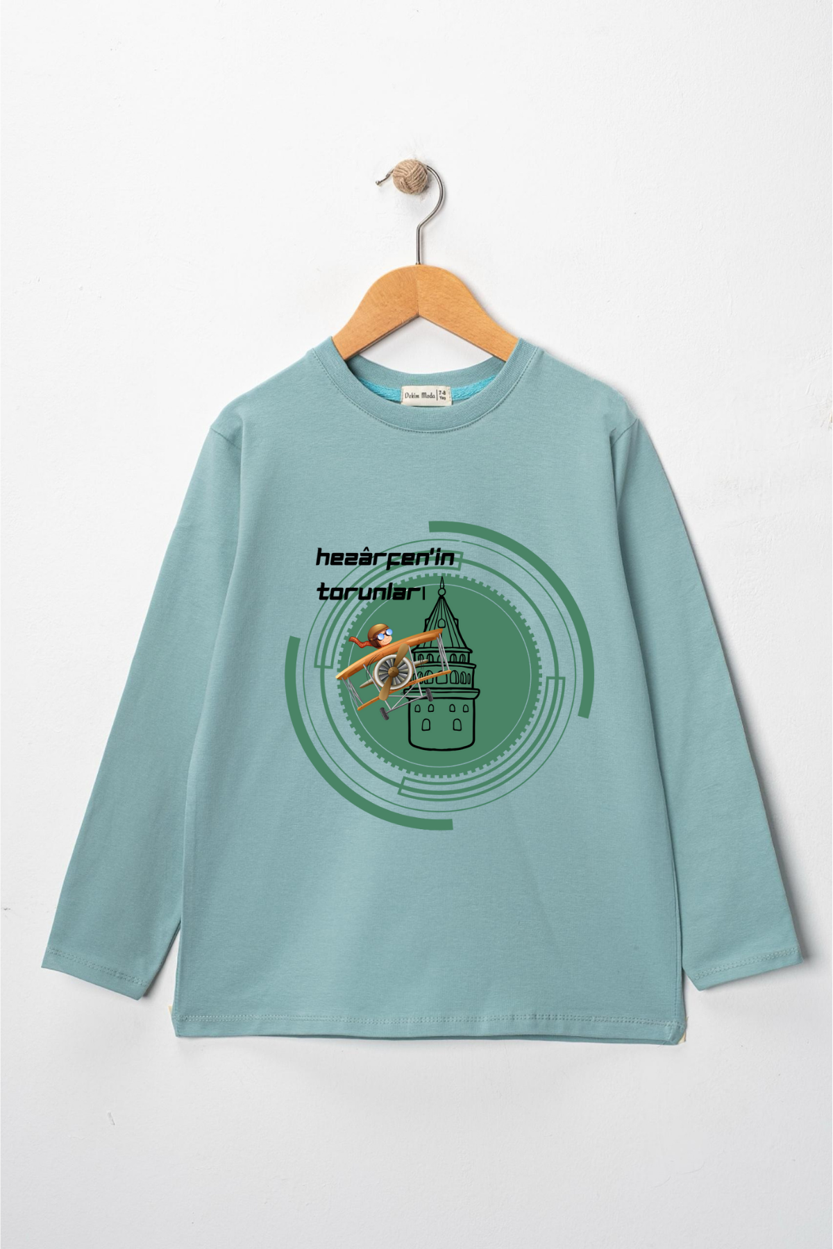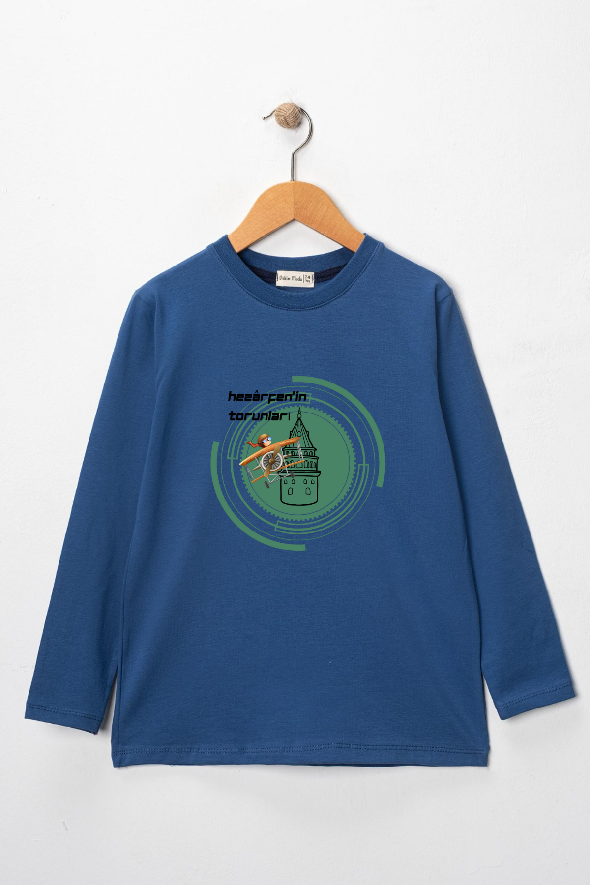 Uzun kollu, pamuklu, bisiklet yaka,Hezarfen'in Torunları baskılı özel tasarım üründür. Teknolojiyi, uçmayı ve üretmeyi seven tüm çocuklara ithafen hazırlanmıştır. Gerçek Kahramanları tanıyalım serisindendir. Çocuk fıtratına uygun, çocukların sevebileceği görseller kullanılarak tasarlanmıştır.