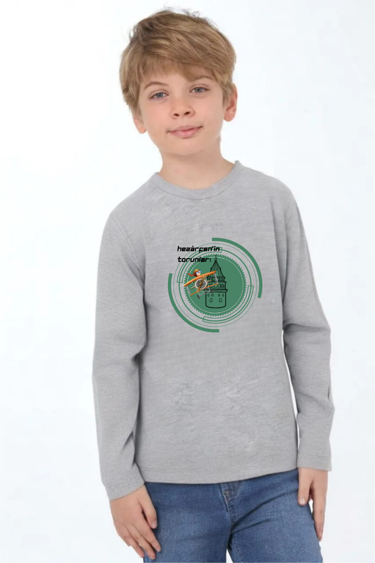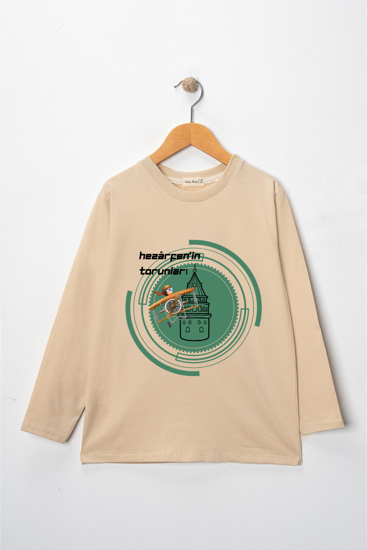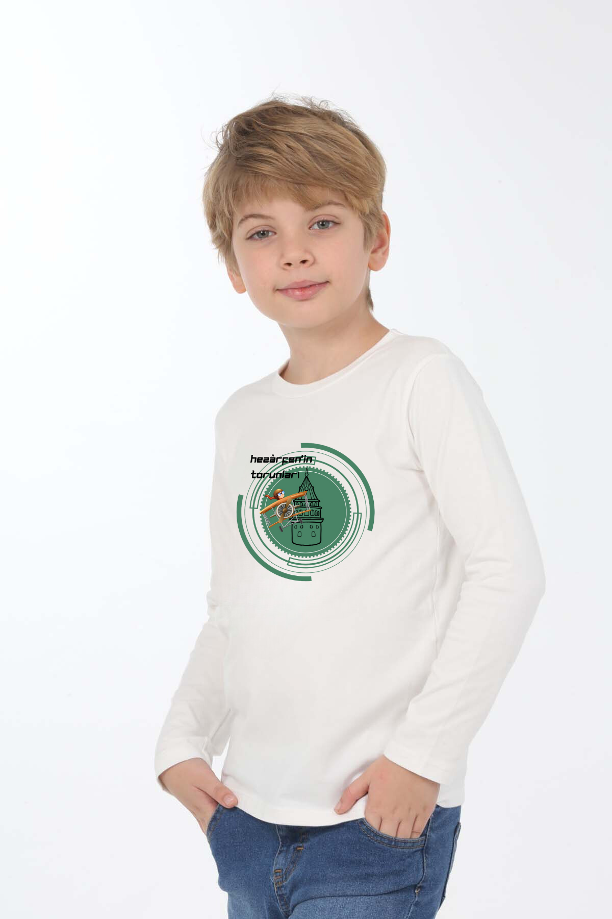 Uzun kollu, pamuklu, bisiklet yaka,Hezarfen'in Torunları baskılı özel tasarım üründür. Teknolojiyi, uçmayı ve üretmeyi seven tüm çocuklara ithafen hazırlanmıştır. Gerçek Kahramanları tanıyalım serisindendir. Çocuk fıtratına uygun, çocukların sevebileceği görseller kullanılarak tasarlanmıştır.