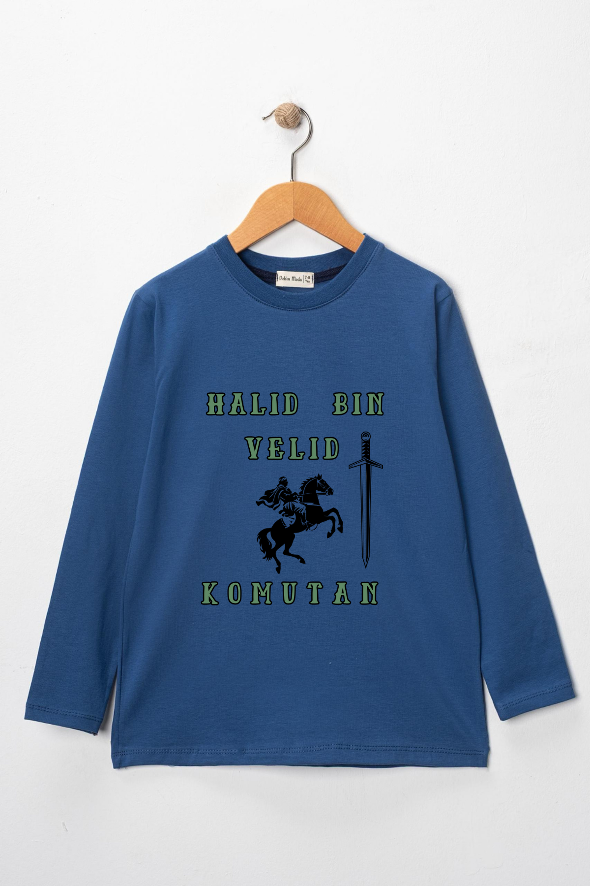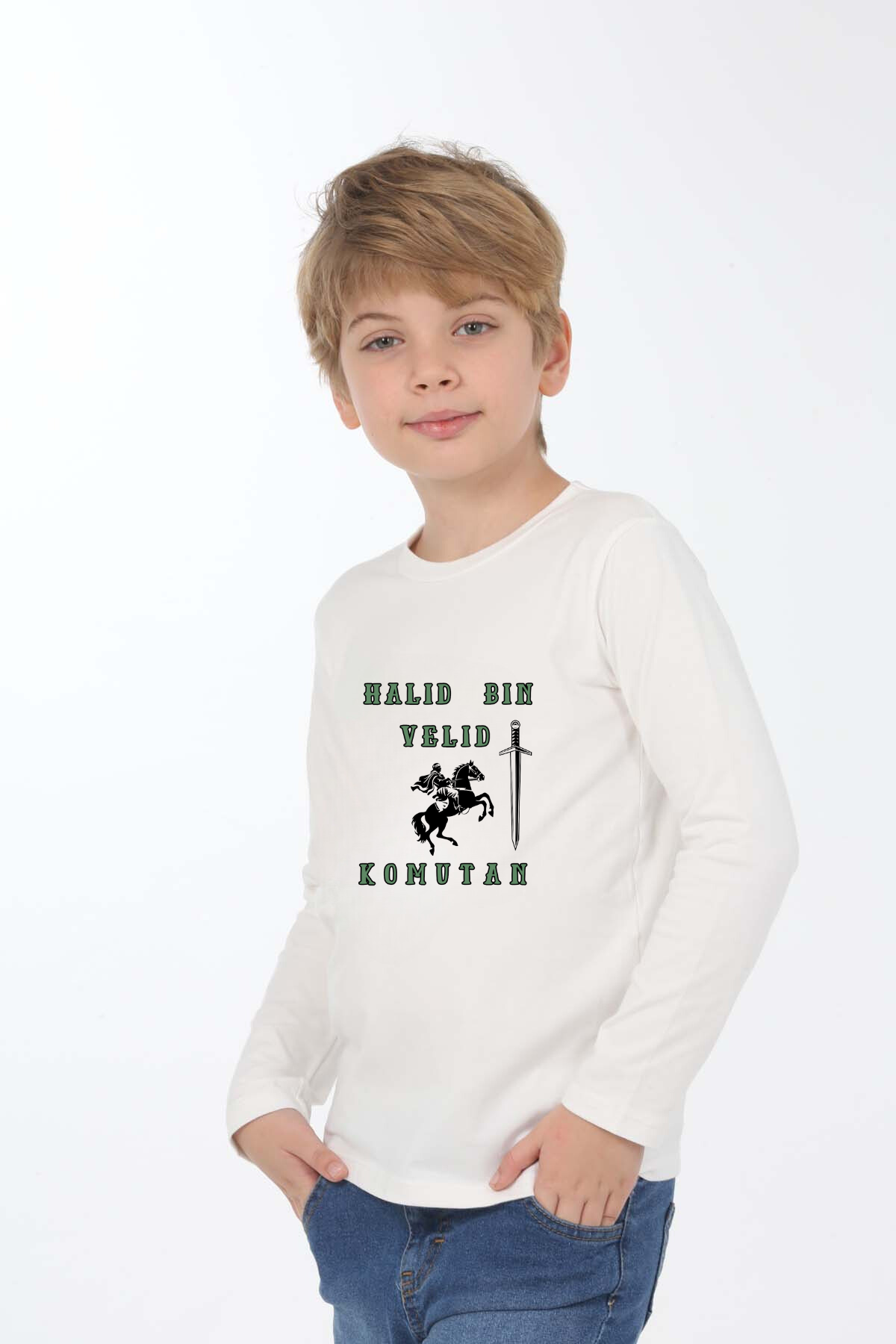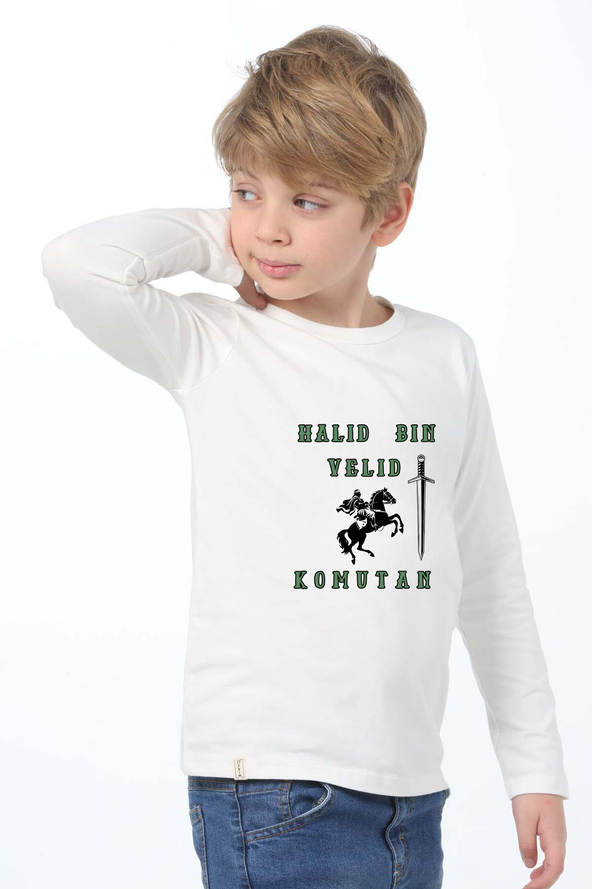 Erkek Çocuk uzun kollu tişört, pamuklu, bisiklet yaka, baskılı t-shirt. İslami tema ''Hz.Halid Bin Velid'' baskılı özel tasarım üründür. Çocuk fıtratına uygun, çocukların sevebileceği görseller kullanılarak tasarlanmıştır. Bu tişört tüm etkinliklerde çocuğuza çok güzel eşlik edecektir. Erkek çocuklarının ilgisini çeken, şık ve rahat bir ürünümüzdür. Regular (rahat/bol) kalıptır. Beden ölçülerine dikkat ederek yaşına uygun seçim yapabilirsiniz. %95 Pamuk %5 Elastan. Çok Yumuşak, esnek ve kaliteli bir üründür. Uygun sıcaklıkta yıkama yapılması halinde kumaşta çekme yaşanmayacaktır. Kumaşlarımız Oeko-Tex sertifikasına sahiptir. Ekoteks Belgesi, kumaşın zararsız olduğunu ve herhangi zararlı bir kimyasal madde içermediğini beyan etmektedir. #Özel Ürün 30 Derecede makinede yıkanabilir • Beyazlatıcı kullanımı önerilmez • Kurutucu kullanımı önerilmez • Tersten ve düşük ısı ile ütü önerilir