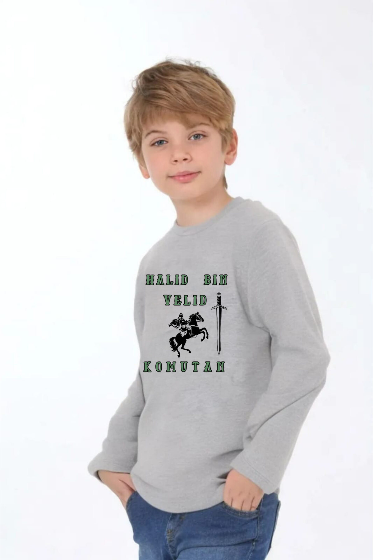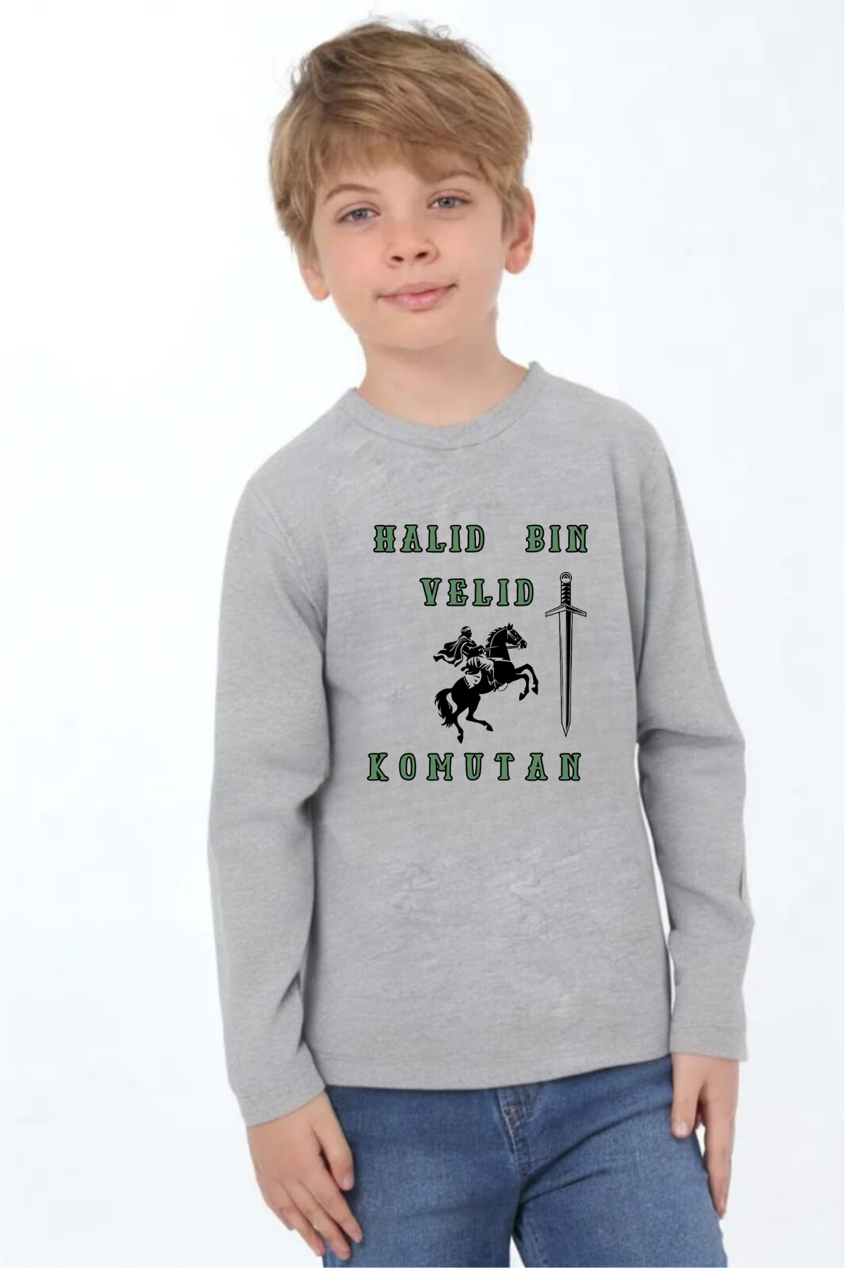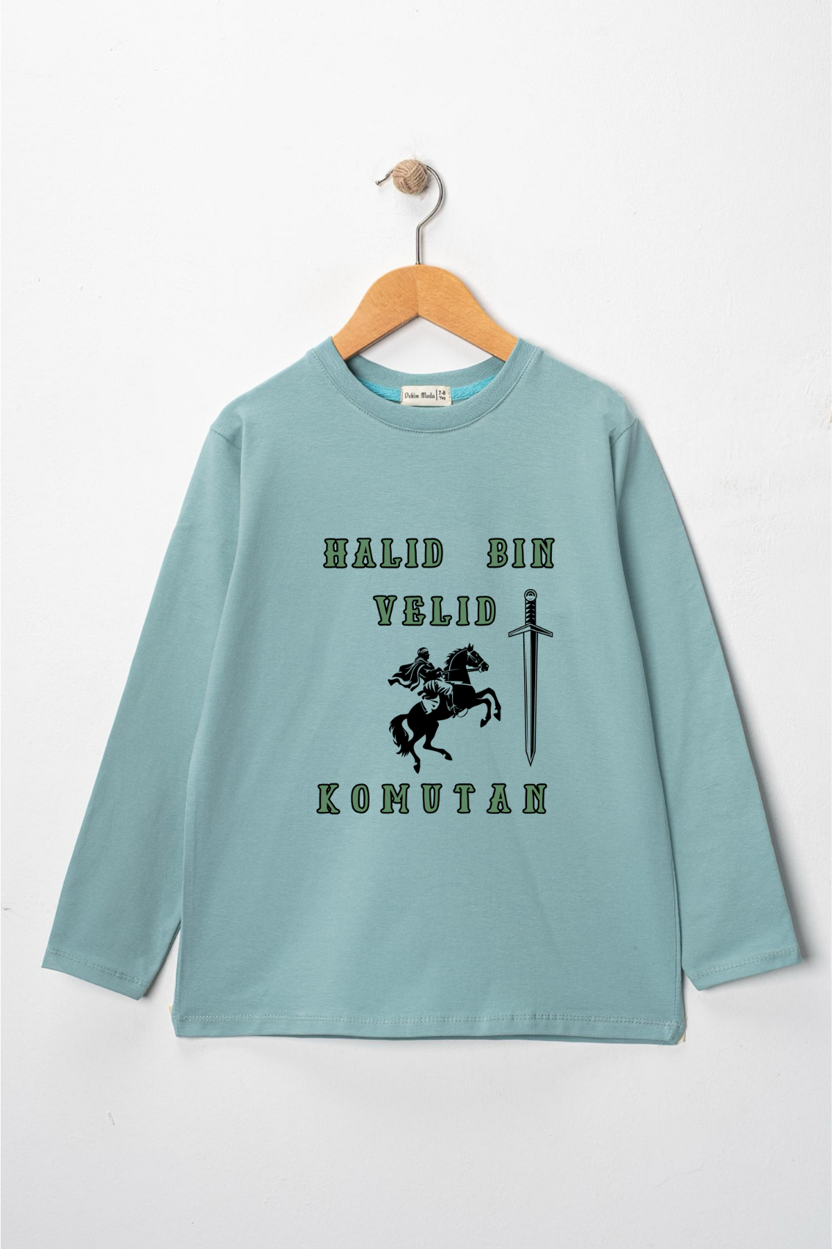 Erkek Çocuk uzun kollu tişört, pamuklu, bisiklet yaka, baskılı t-shirt. İslami tema ''Hz.Halid Bin Velid'' baskılı özel tasarım üründür. Çocuk fıtratına uygun, çocukların sevebileceği görseller kullanılarak tasarlanmıştır. Bu tişört tüm etkinliklerde çocuğuza çok güzel eşlik edecektir. Erkek çocuklarının ilgisini çeken, şık ve rahat bir ürünümüzdür. Regular (rahat/bol) kalıptır. Beden ölçülerine dikkat ederek yaşına uygun seçim yapabilirsiniz. %95 Pamuk %5 Elastan. Çok Yumuşak, esnek ve kaliteli bir üründür. Uygun sıcaklıkta yıkama yapılması halinde kumaşta çekme yaşanmayacaktır. Kumaşlarımız Oeko-Tex sertifikasına sahiptir. Ekoteks Belgesi, kumaşın zararsız olduğunu ve herhangi zararlı bir kimyasal madde içermediğini beyan etmektedir. #Özel Ürün 30 Derecede makinede yıkanabilir • Beyazlatıcı kullanımı önerilmez • Kurutucu kullanımı önerilmez • Tersten ve düşük ısı ile ütü önerilir