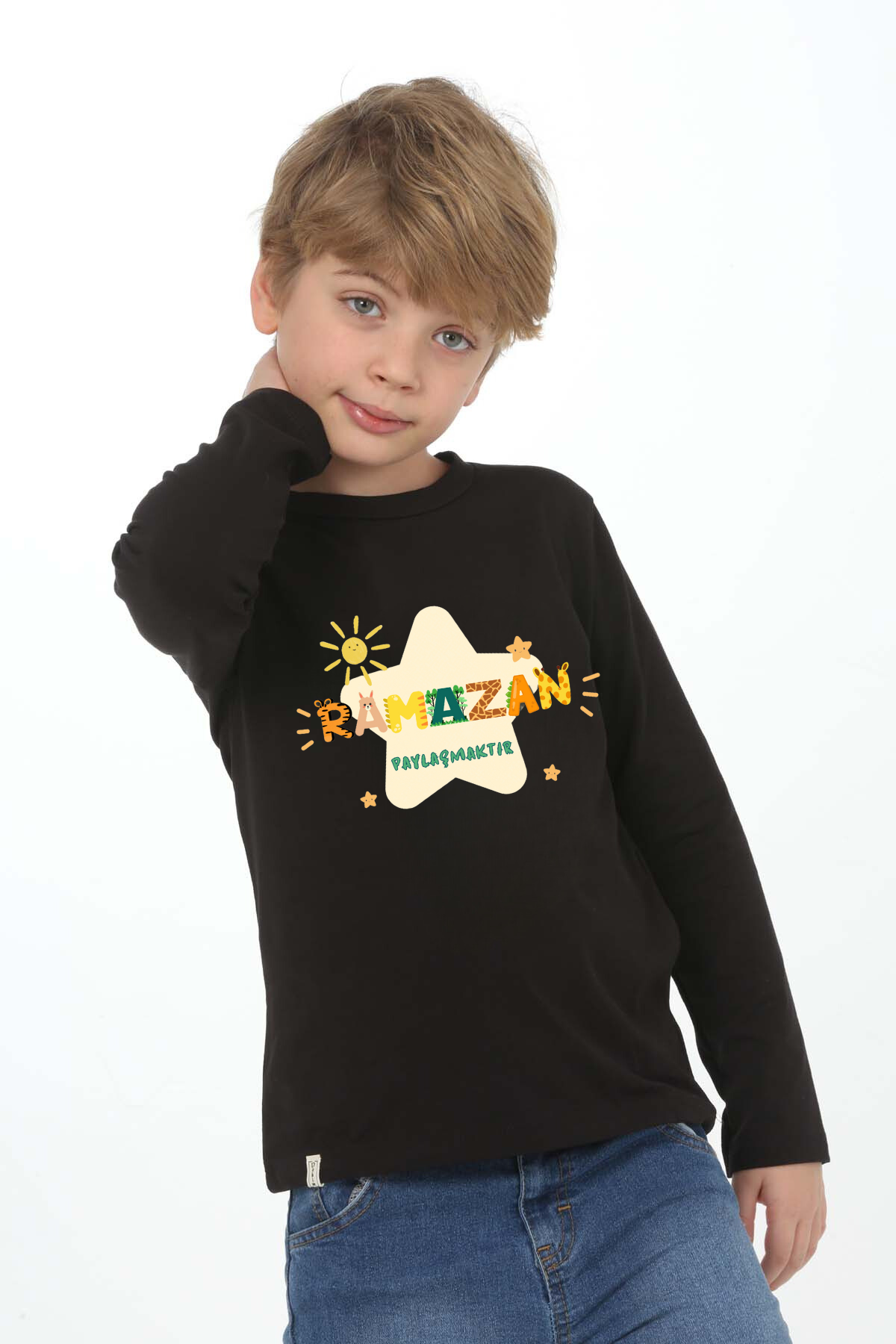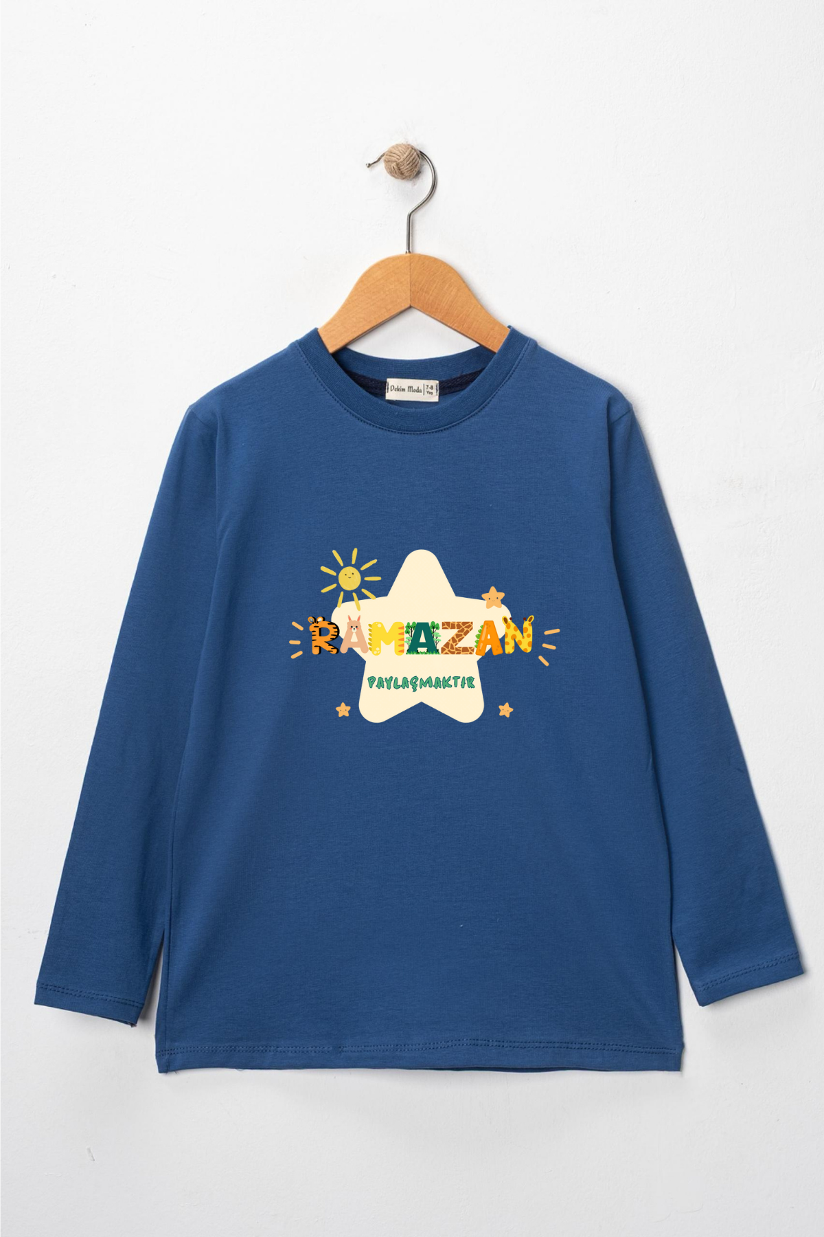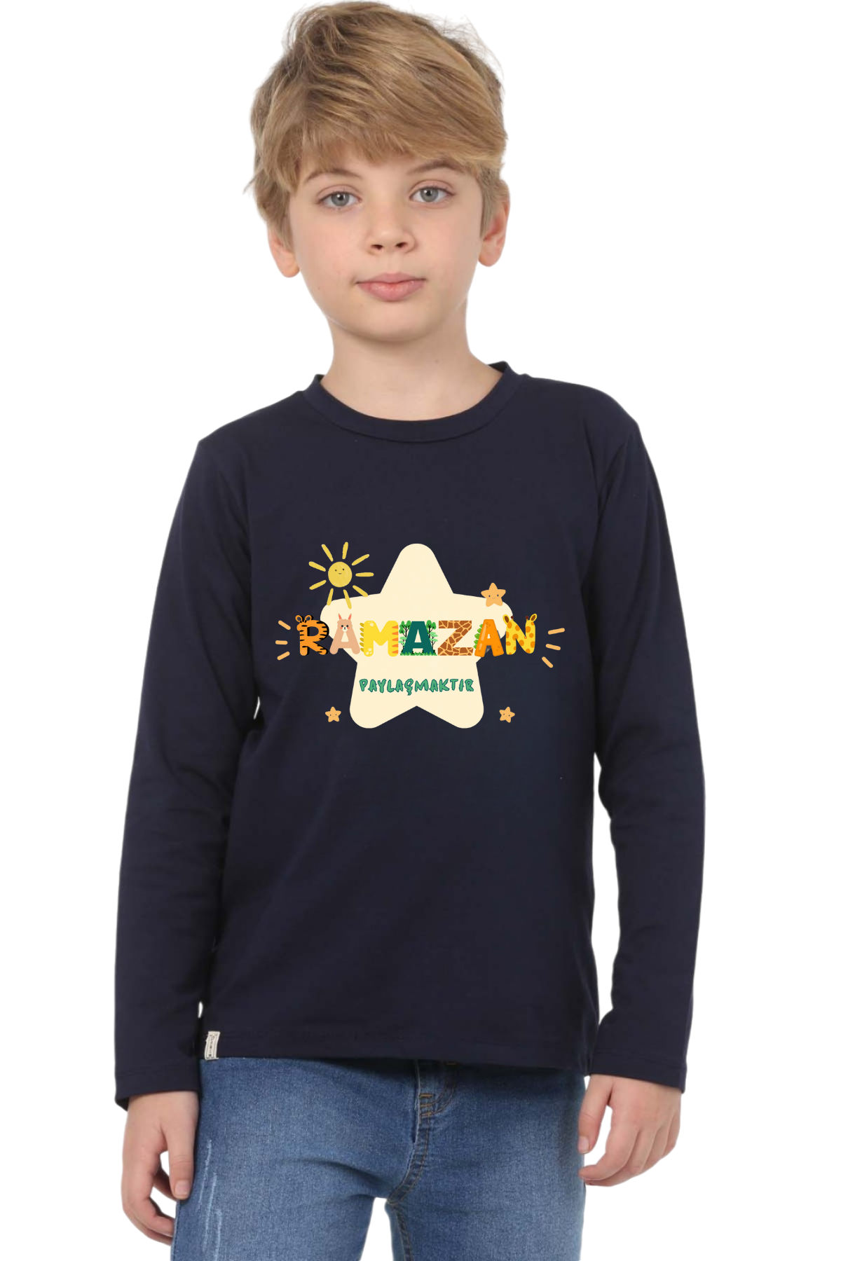 Erkek Çocuk Uzun kollu tişört, pamuklu, bisiklet yaka, baskılı t-shirt. İslami tema "Ramazan Paylaşmaktır" baskılı özel tasarım üründür. Çocuk fıtratına uygun, çocukların sevebileceği görseller kullanılarak tasarlanmıştır. Bu tişört tüm etkinliklerde çocuğuza çok güzel eşlik edecektir. Erkek çocuklarının ilgisini çeken, şık ve rahat bir ürünümüzdür. Regular (rahat/bol) kalıptır. Beden ölçülerine dikkat ederek yaşına uygun seçim yapabilirsiniz. %95 Pamuk %5 Elastan. Çok Yumuşak, esnek ve kaliteli bir üründür. Uygun sıcaklıkta yıkama yapılması halinde kumaşta çekme yaşanmayacaktır. Kumaşlarımız Oeko-Tex sertifikasına sahiptir. Ekoteks Belgesi, kumaşın zararsız olduğunu ve herhangi zararlı bir kimyasal madde içermediğini beyan etmektedir. #Özel Ürün 30 Derecede makinede yıkanabilir • Beyazlatıcı kullanımı önerilmez • Kurutucu kullanımı önerilmez • Tersten ve düşük ısı ile ütü önerilir