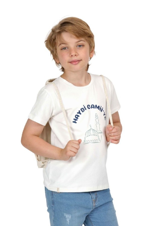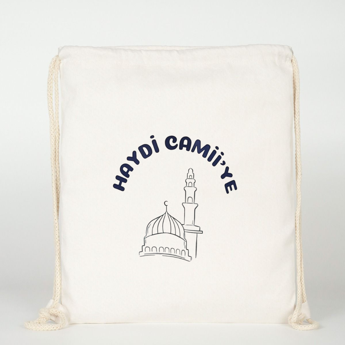 "Haydi Cami'ye" Baskılı Ham Bez Sırt Çantası %100 Pamuk