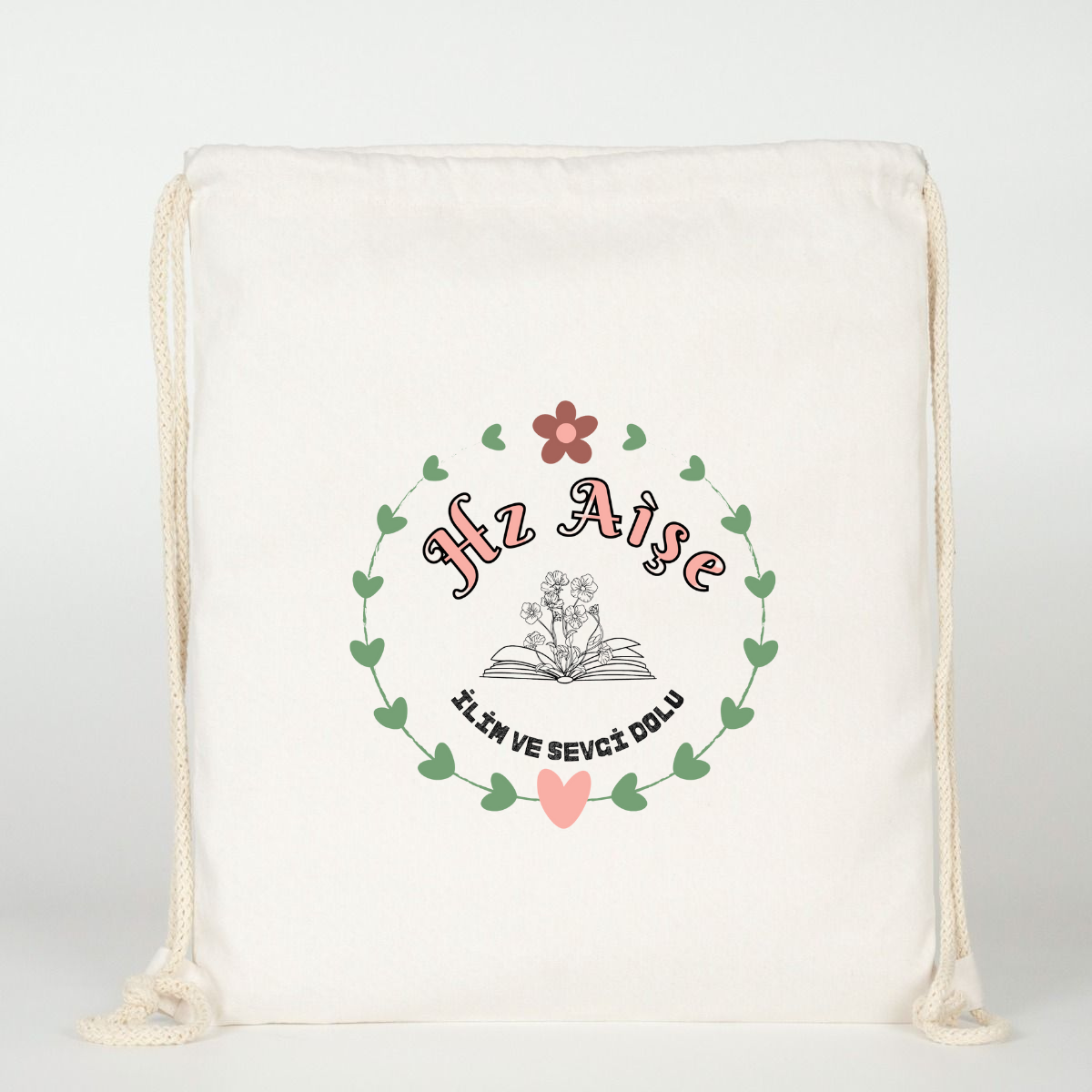 "Hz Aişe" Baskılı Ham Bez Sırt Çantası %100 Pamuk
