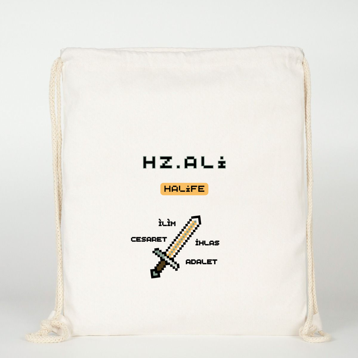 "Hz Ali" Baskılı Ham Bez Sırt Çantası %100 Pamuk Krem