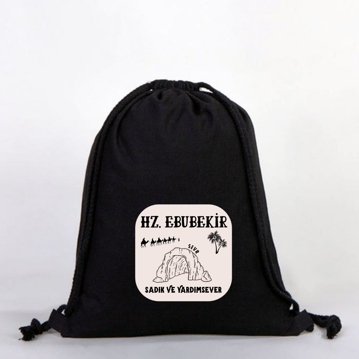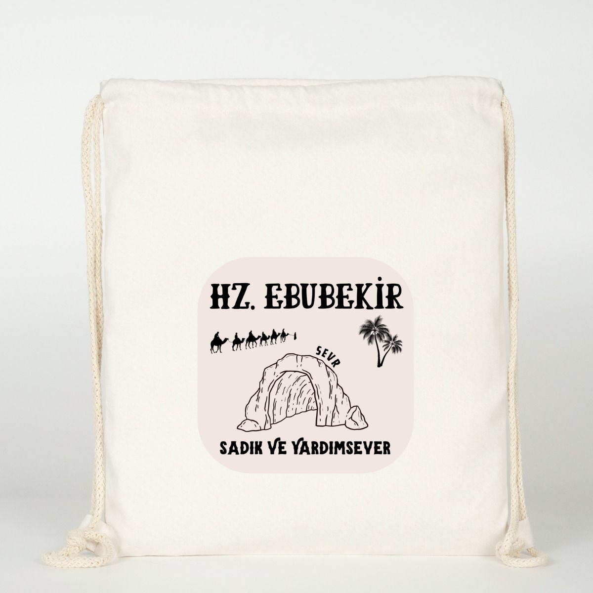 "Hz Ebubekir" Baskılı Ham Bez Sırt Çantası %100 Pamuk