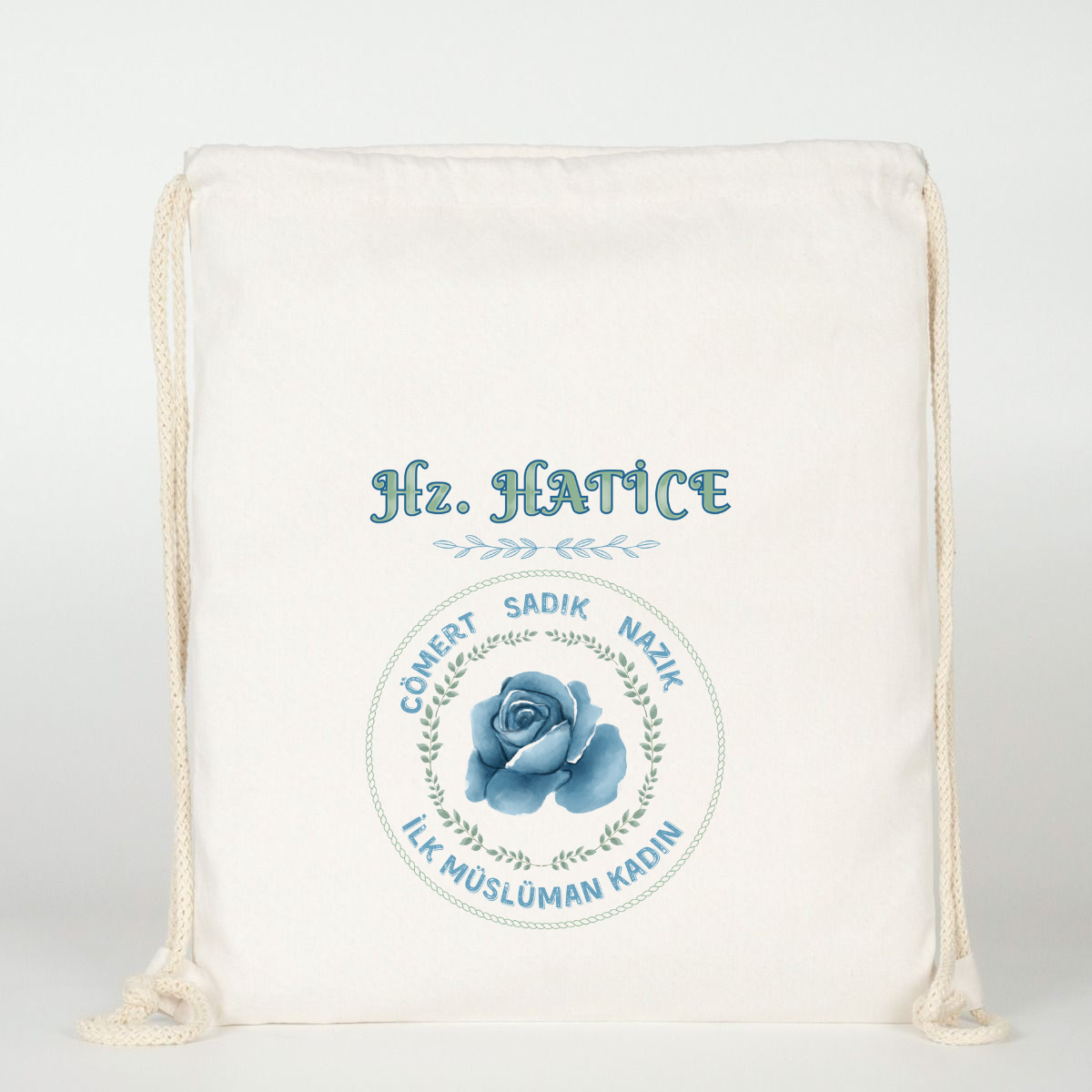 35×40 aralıklarla, %100 pamuklu kumaş Ham Bez (İnce bir kumaş) "Hz Hatice" özel tasarım baskılı. Hafif Günlük kullanım için ideal Spor, Piknik, Okul, Kulüp, Yedek kıyafet vb kullanım alanları için idealdir.