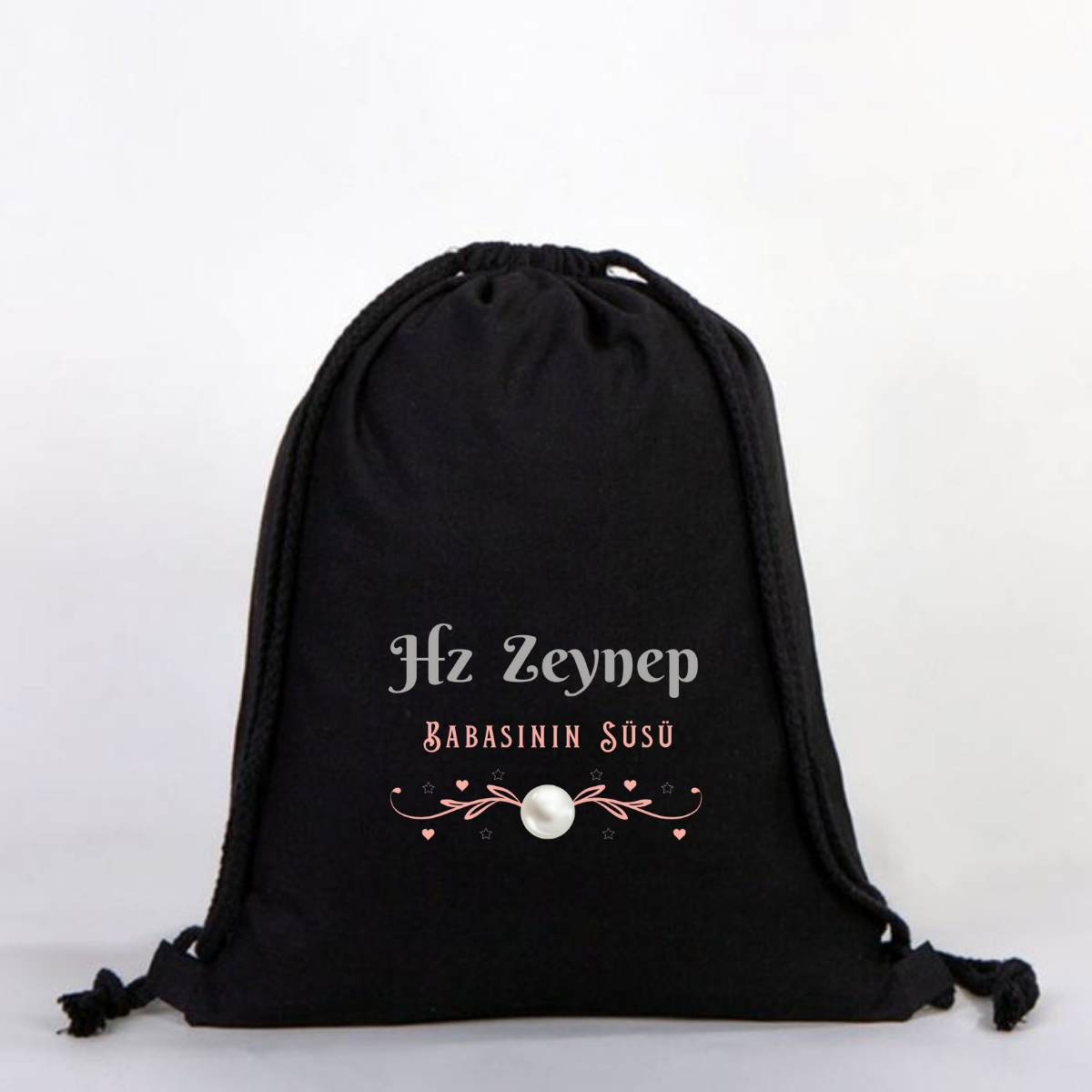 "Hz Zeynep" Baskılı Ham Bez Sırt Çantası %100 Pamuk