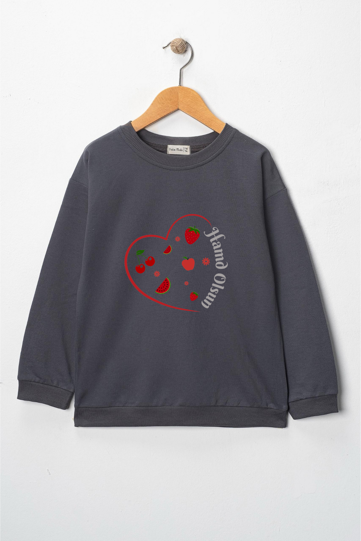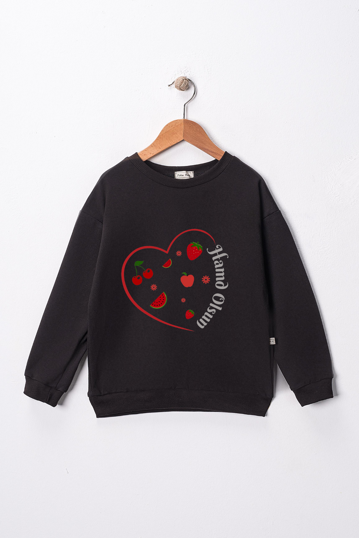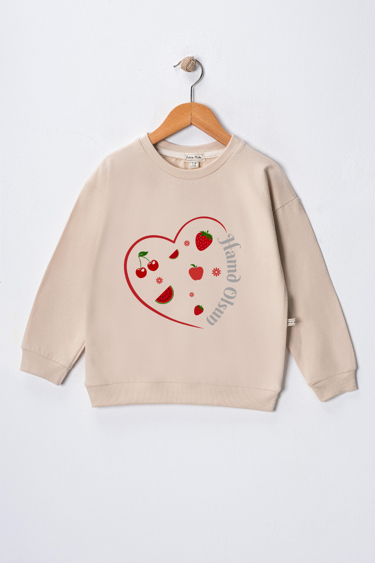 Kız Çocuk Uzun kollu, pamuklu, bisiklet yaka, baskılı sweat.