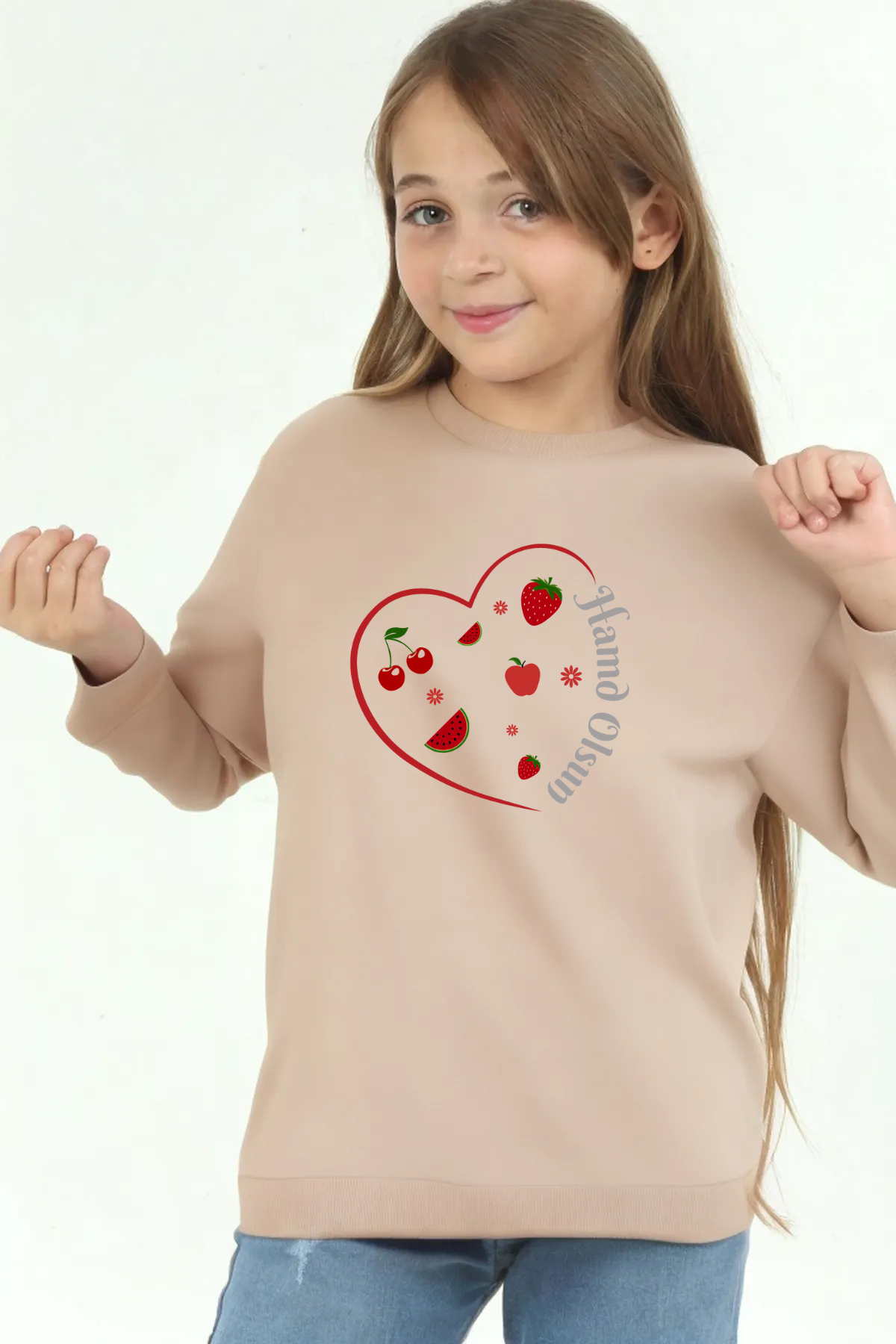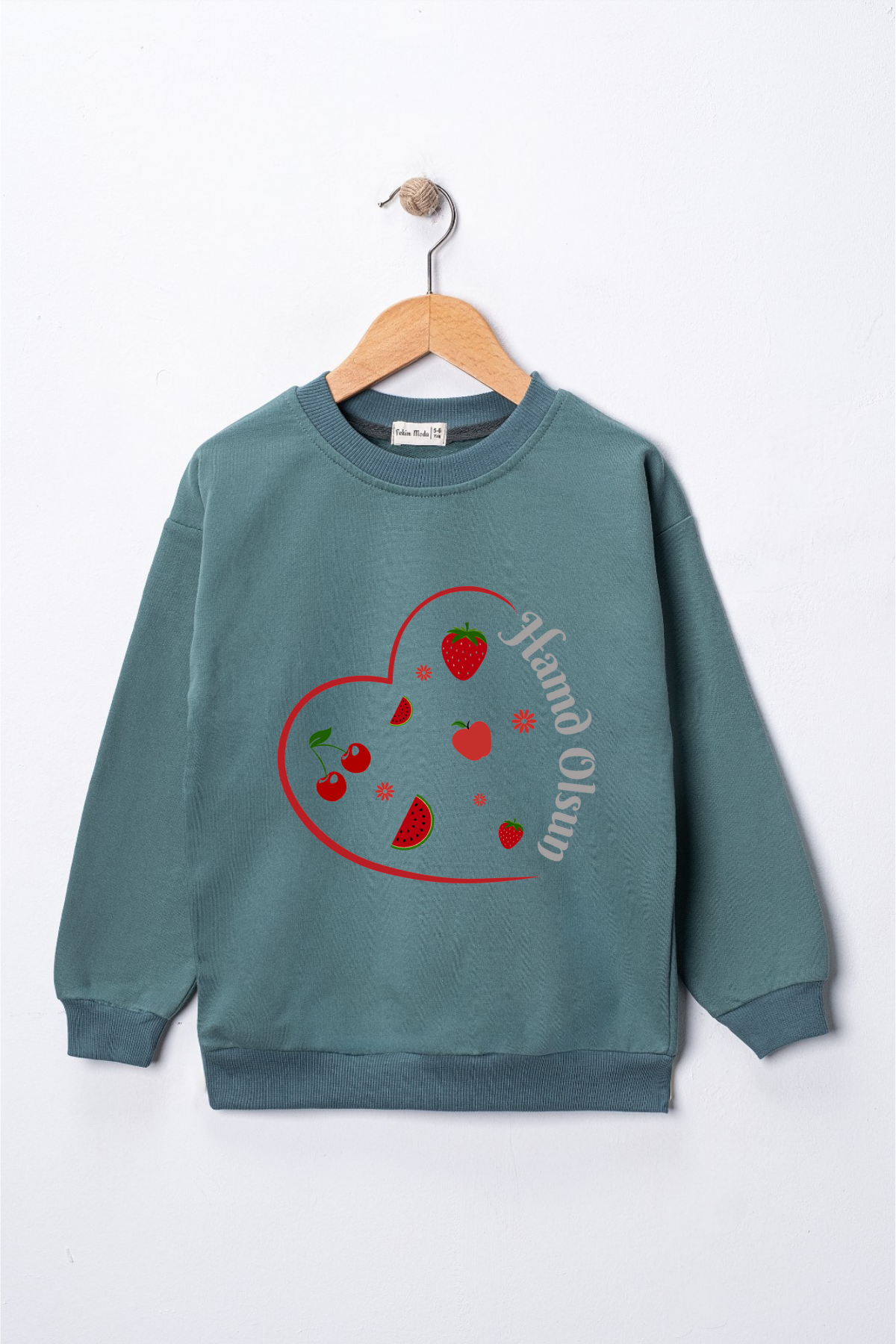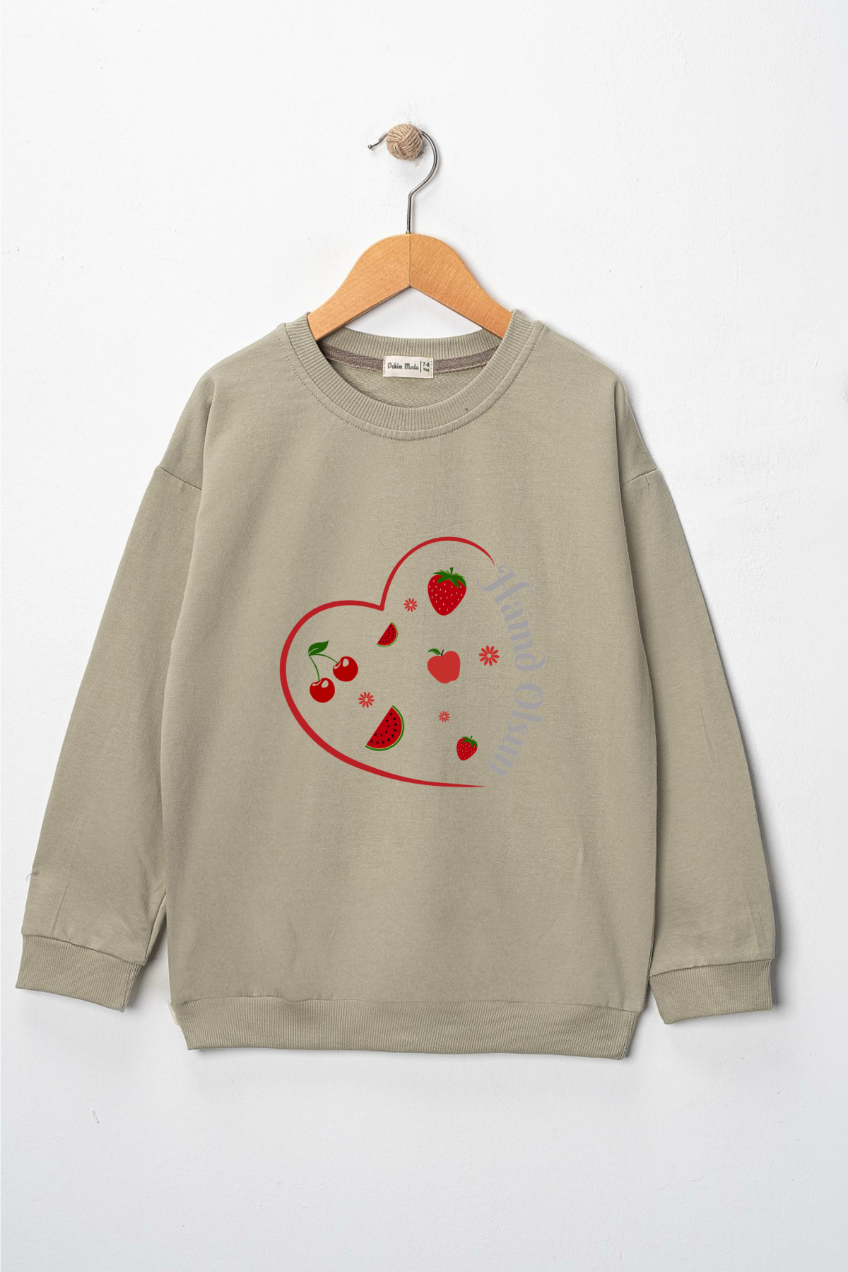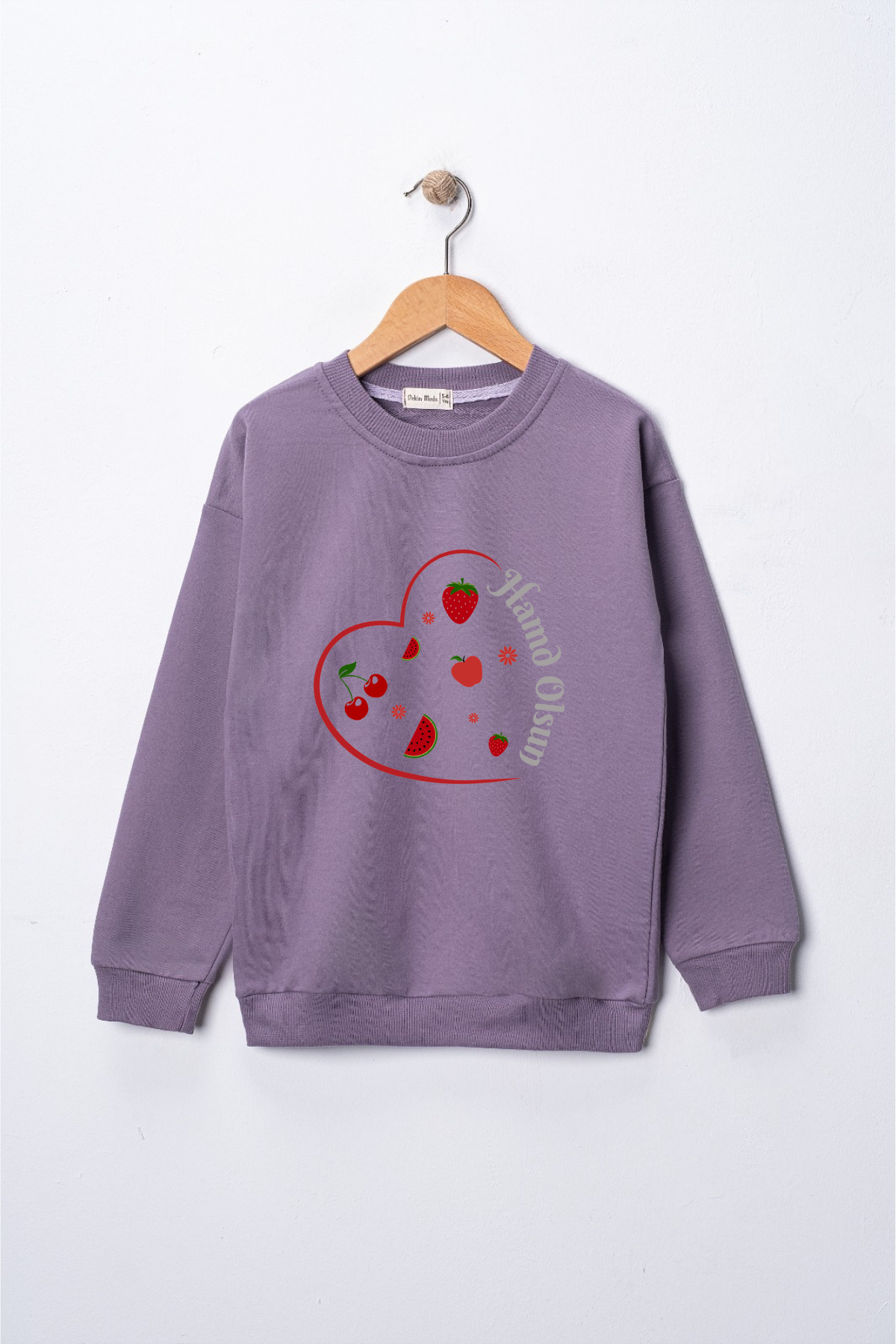 Kız Çocuk Uzun kollu, pamuklu, bisiklet yaka, baskılı sweat.