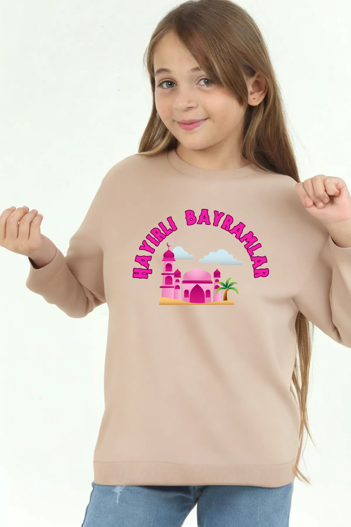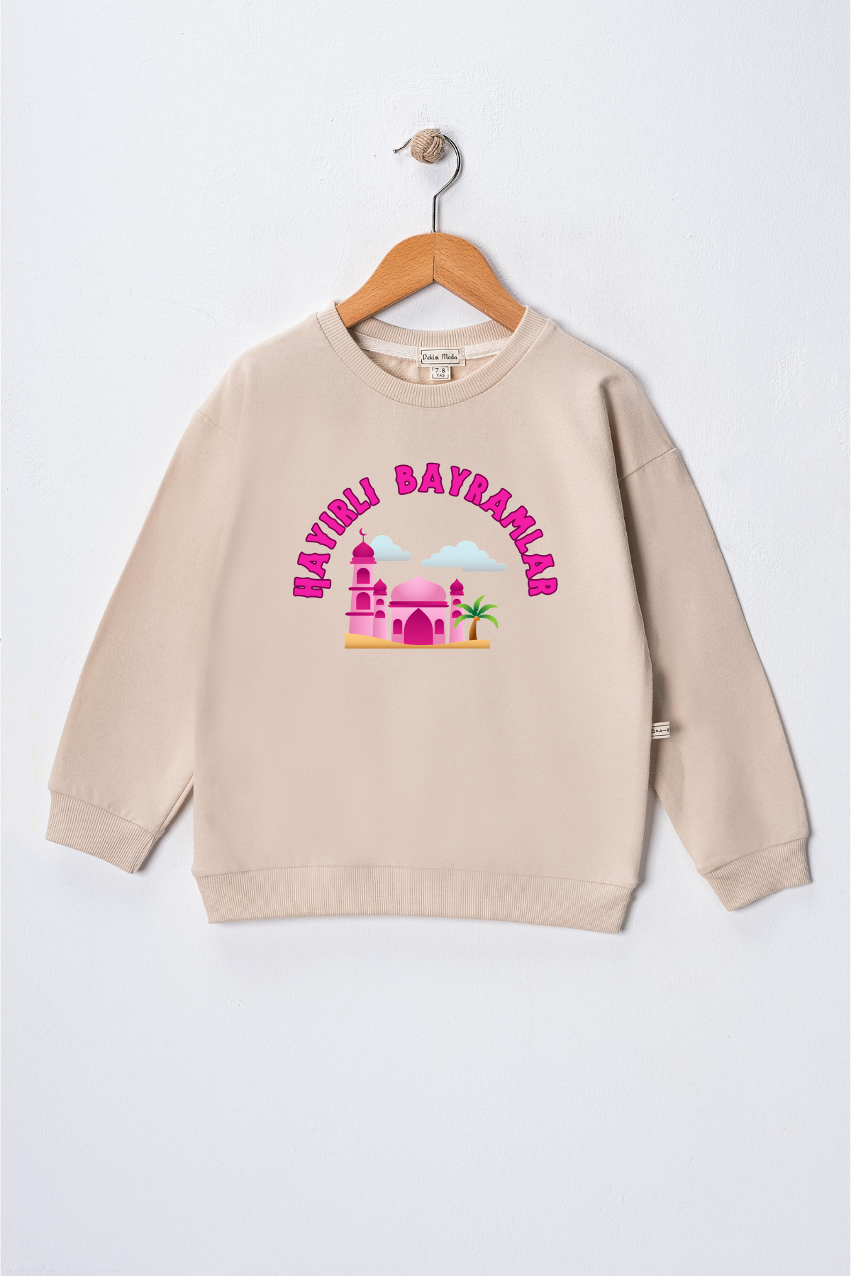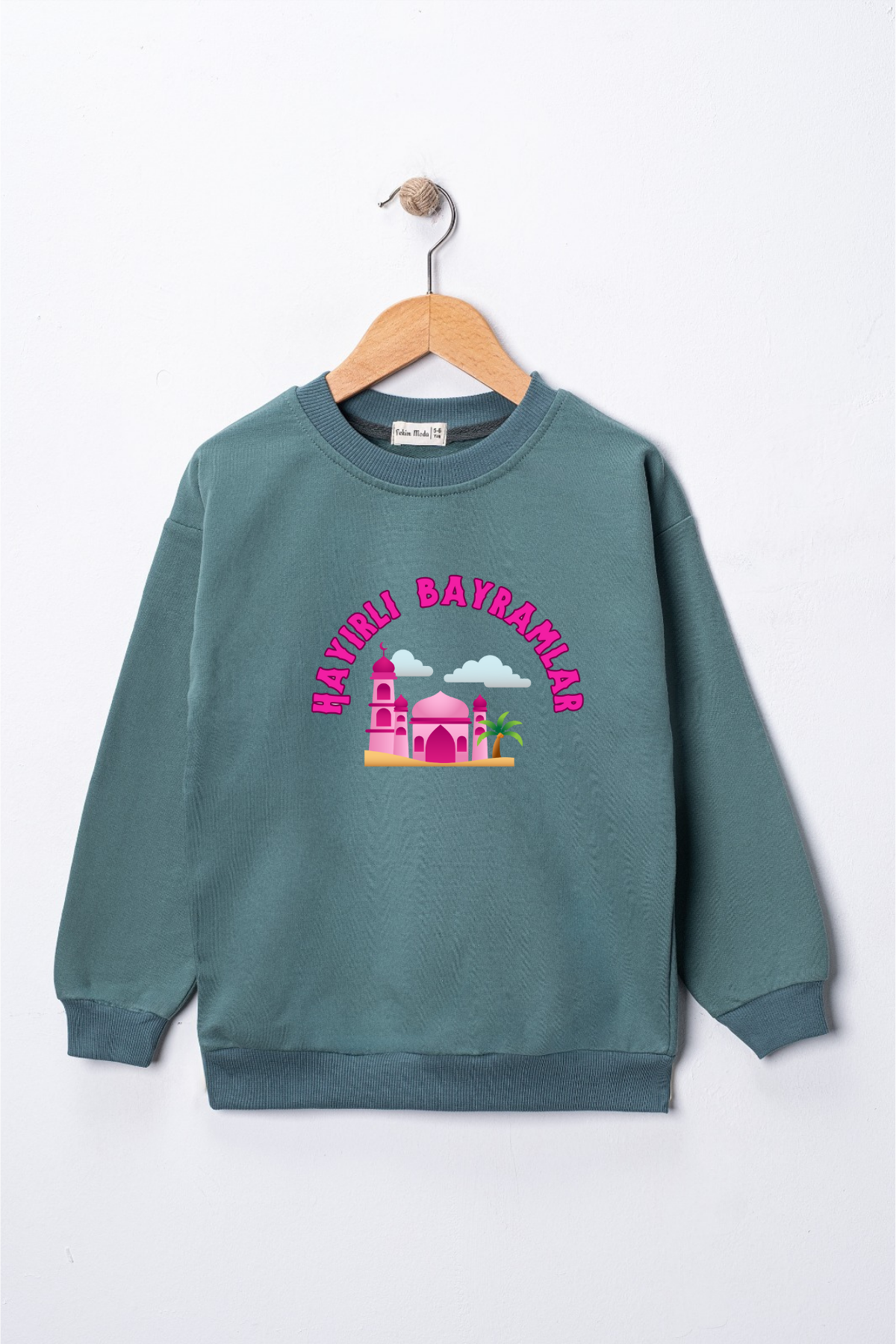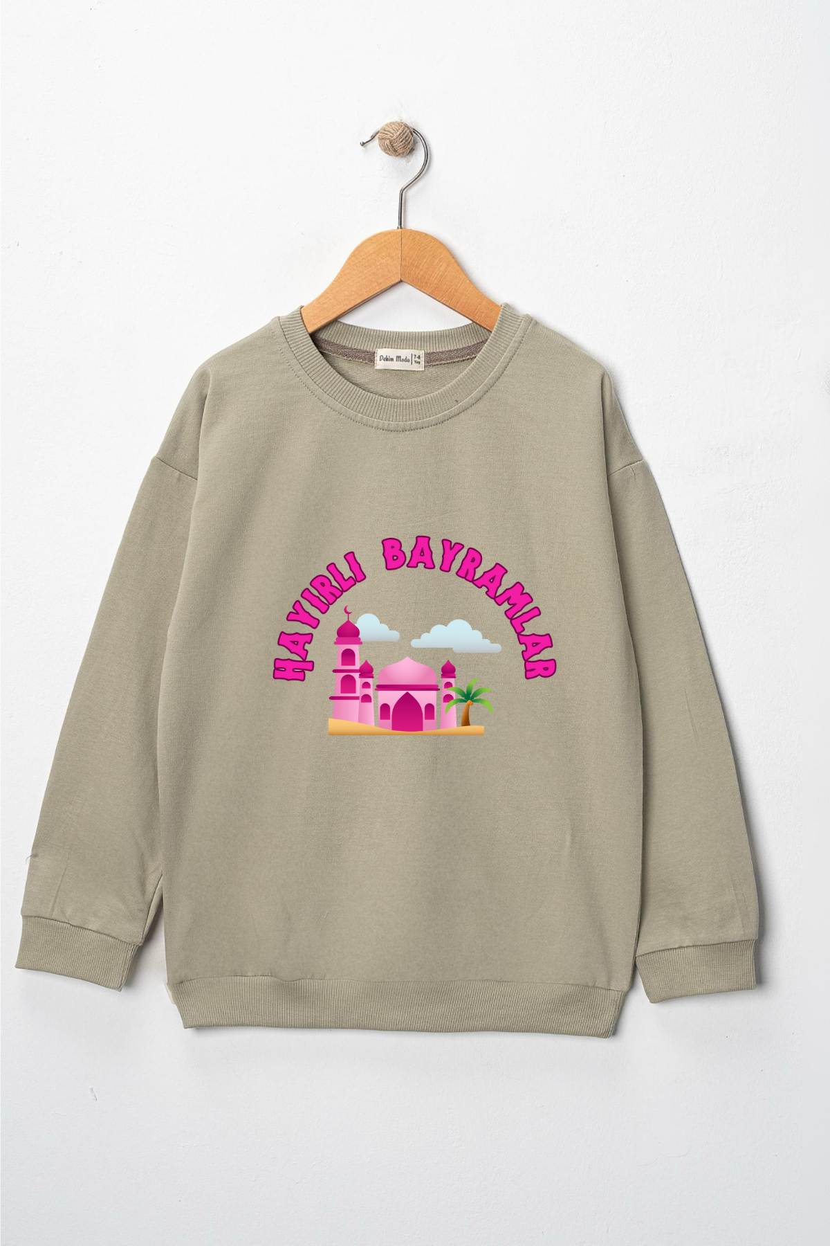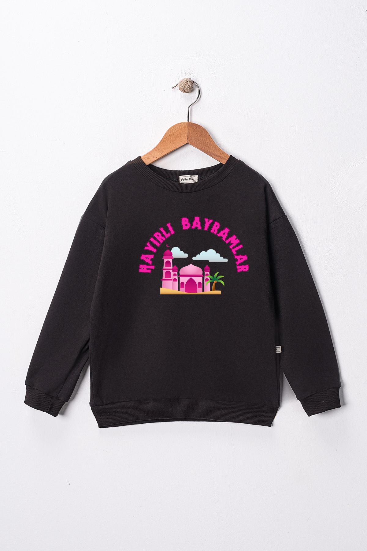 Kız Çocuk Uzun kollu, pamuklu, bisiklet yaka, baskılı sweat.