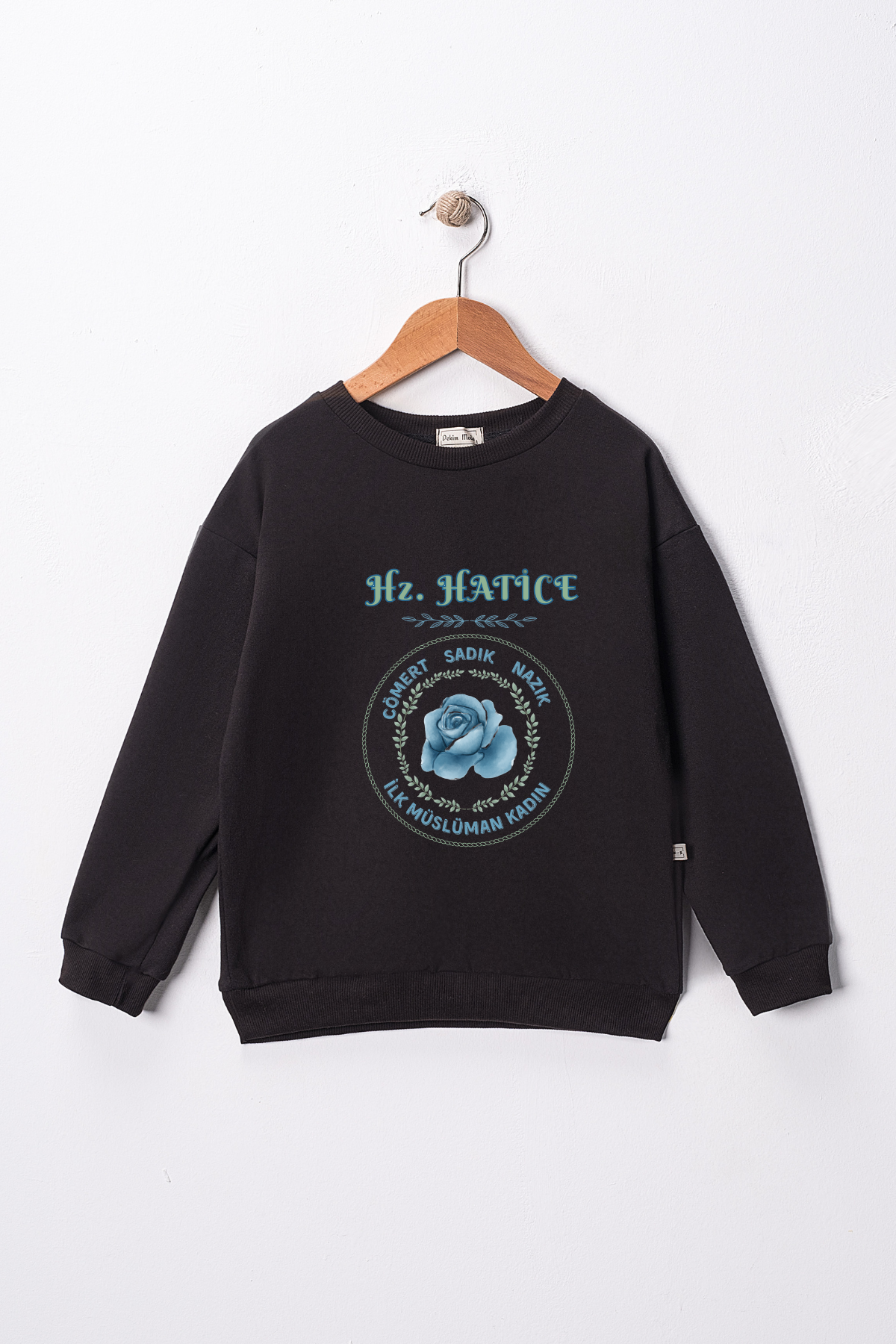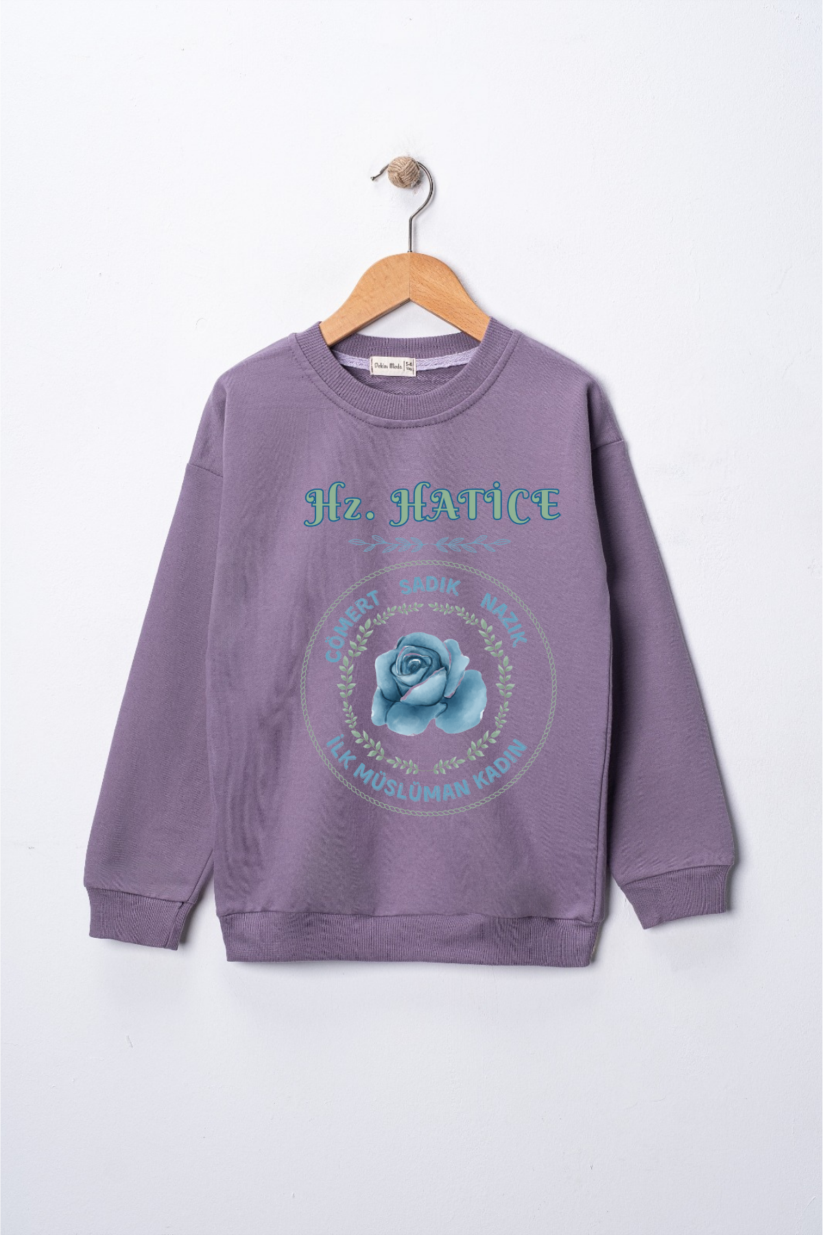 Kız Çocuk Uzun kollu, pamuklu, bisiklet yaka, baskılı sweat.