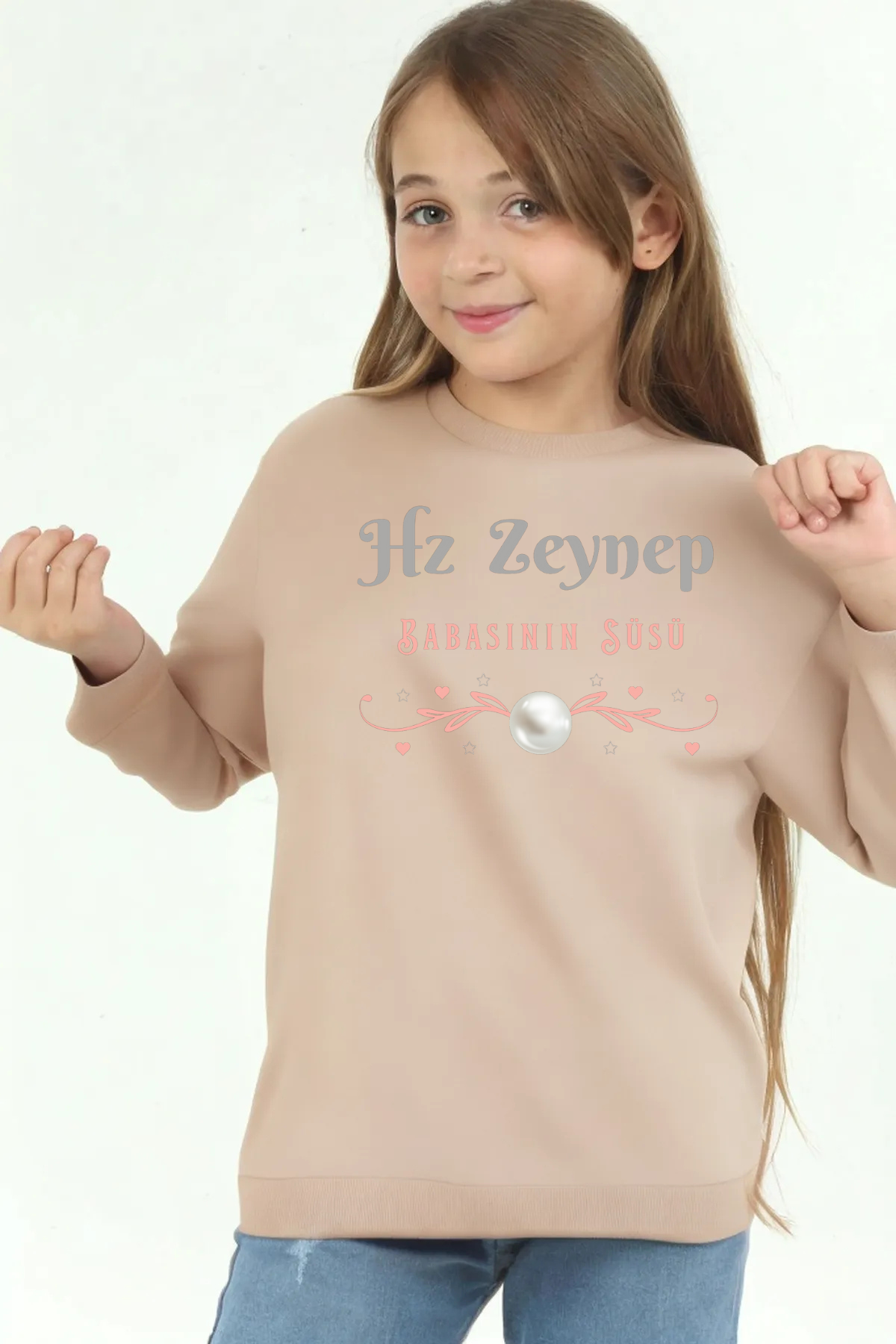 Kız Çocuk Uzun kollu, pamuklu, bisiklet yaka, baskılı sweat.