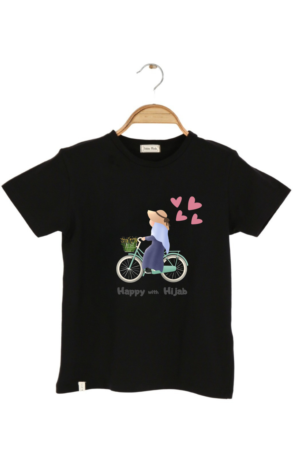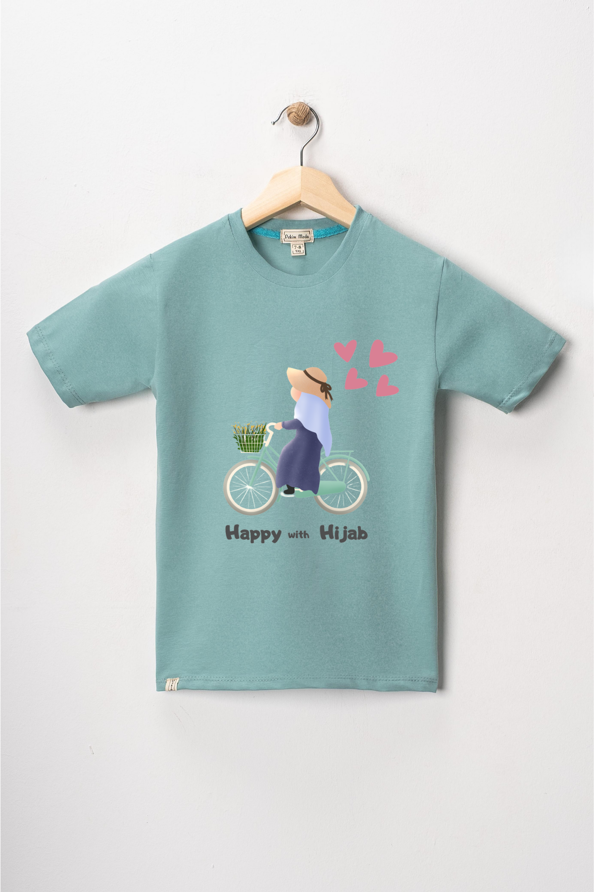 İslami tema ''Happy with Hijab= Başörtümle Mutluyum)'' baskılı özel tasarım üründür.