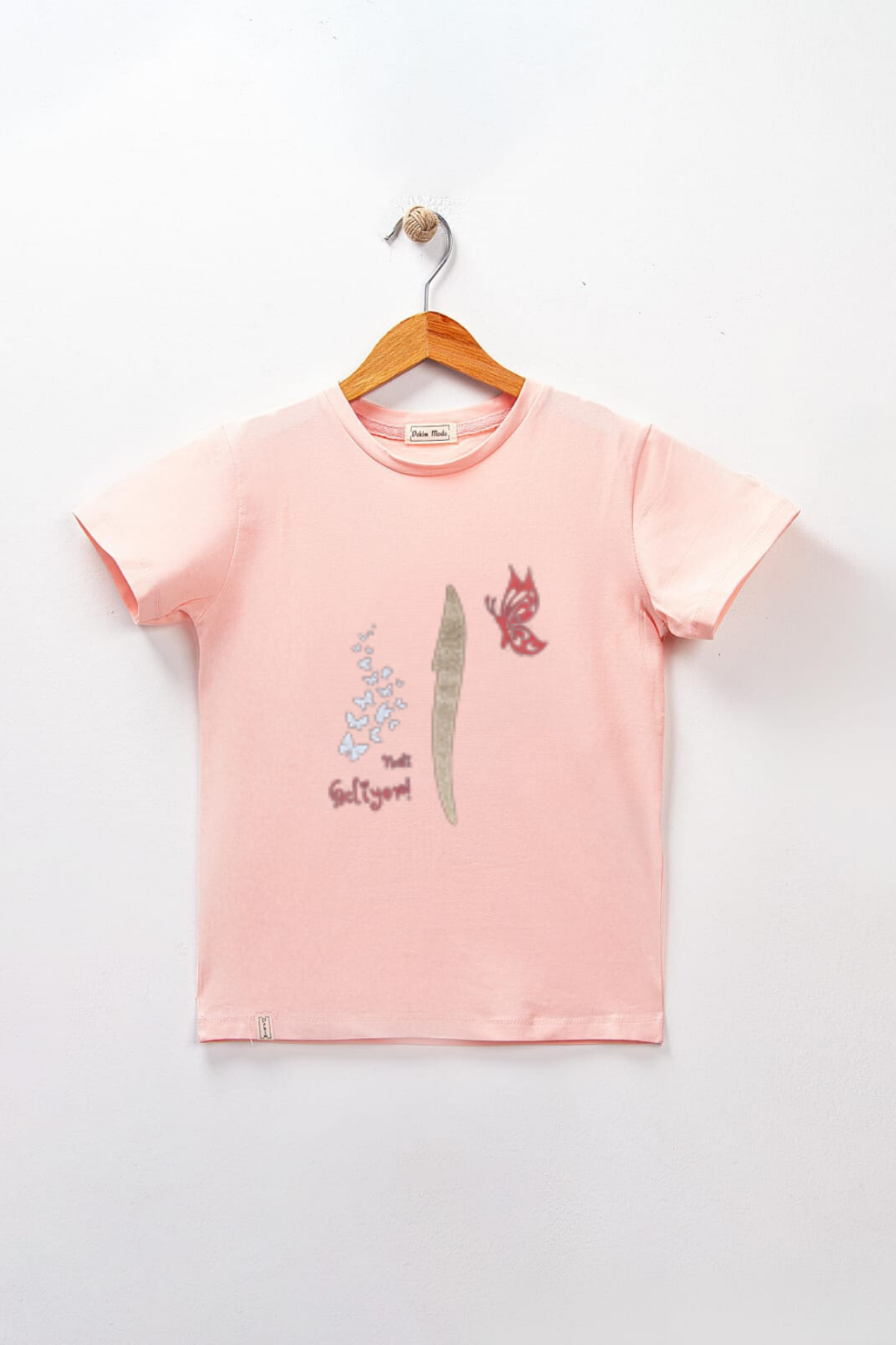 Kız Çocuk Kısa kollu, pamuklu, bisiklet yaka, baskılı t-shirt.