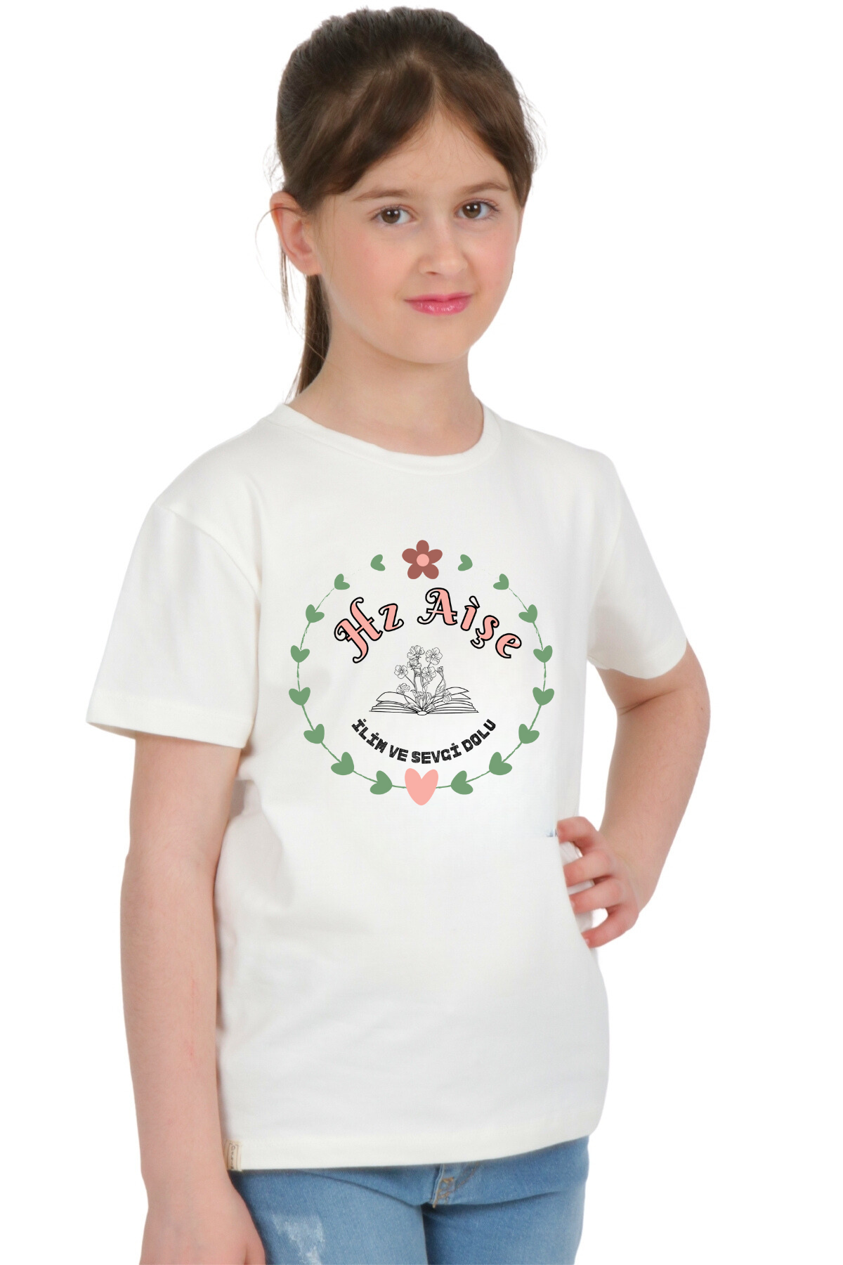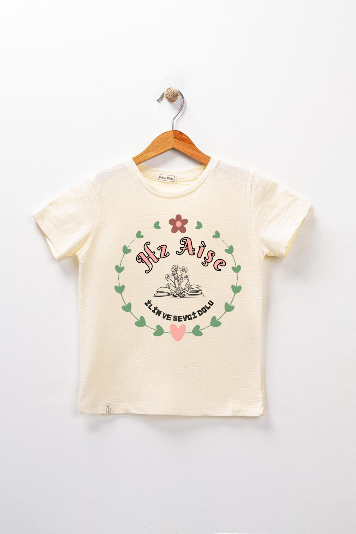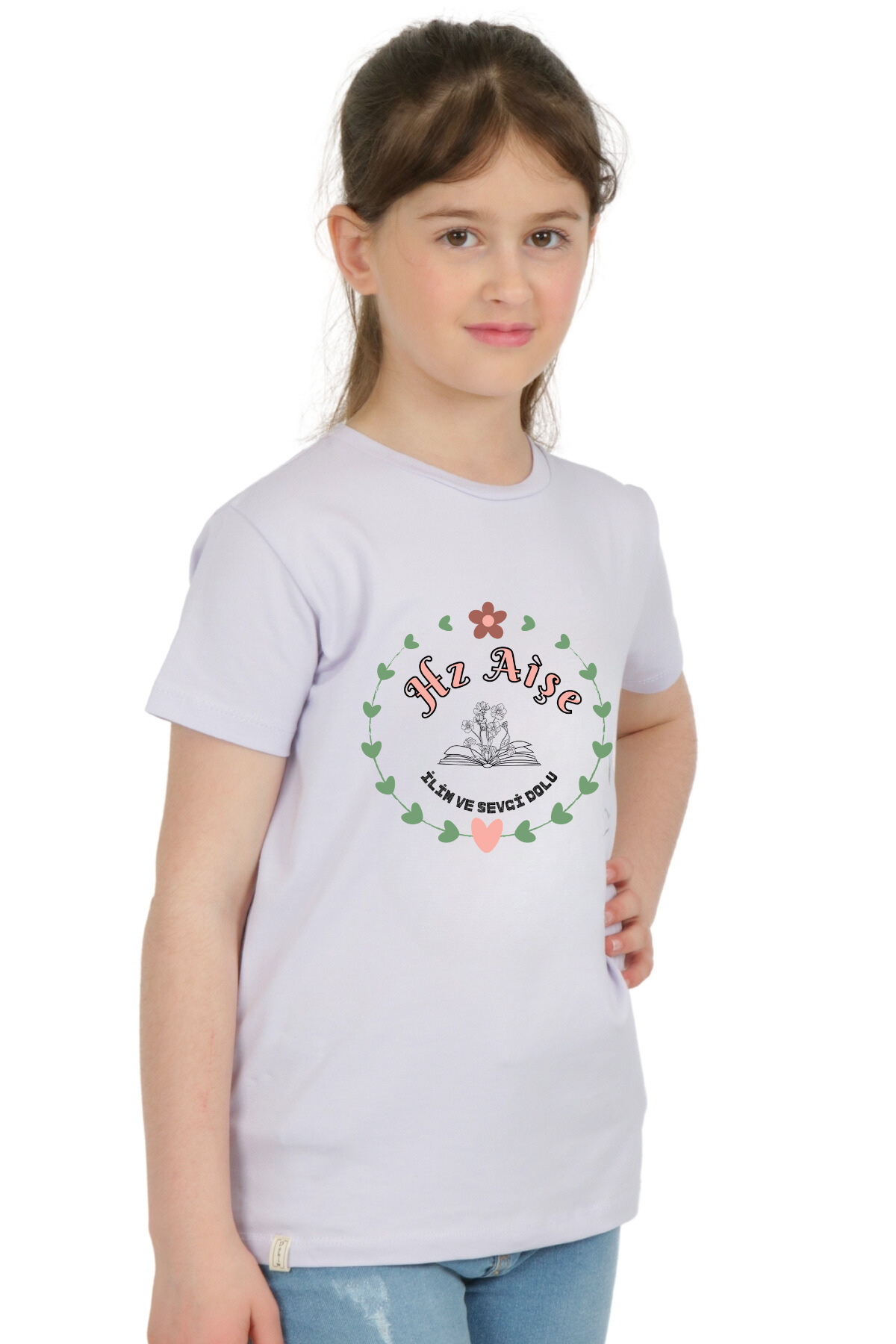 Kız Çocuk kısa kollu, pamuklu, bisiklet yaka, baskılı t-shirt.