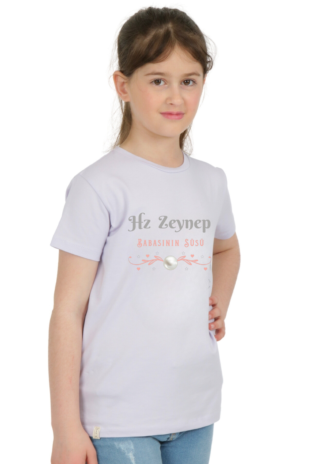 Kız Çocuk kısa kollu, pamuklu, bisiklet yaka, baskılı t-shirt.