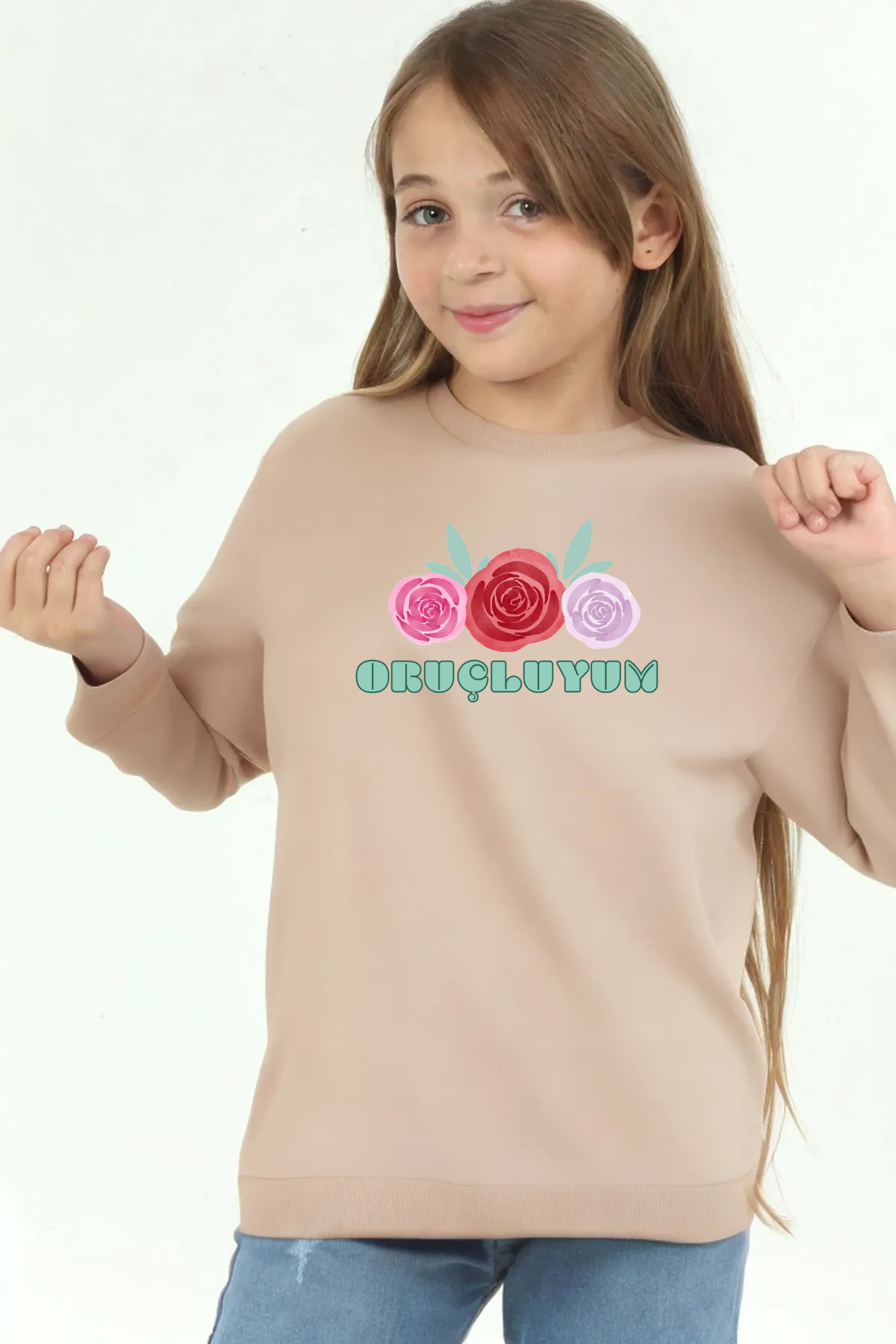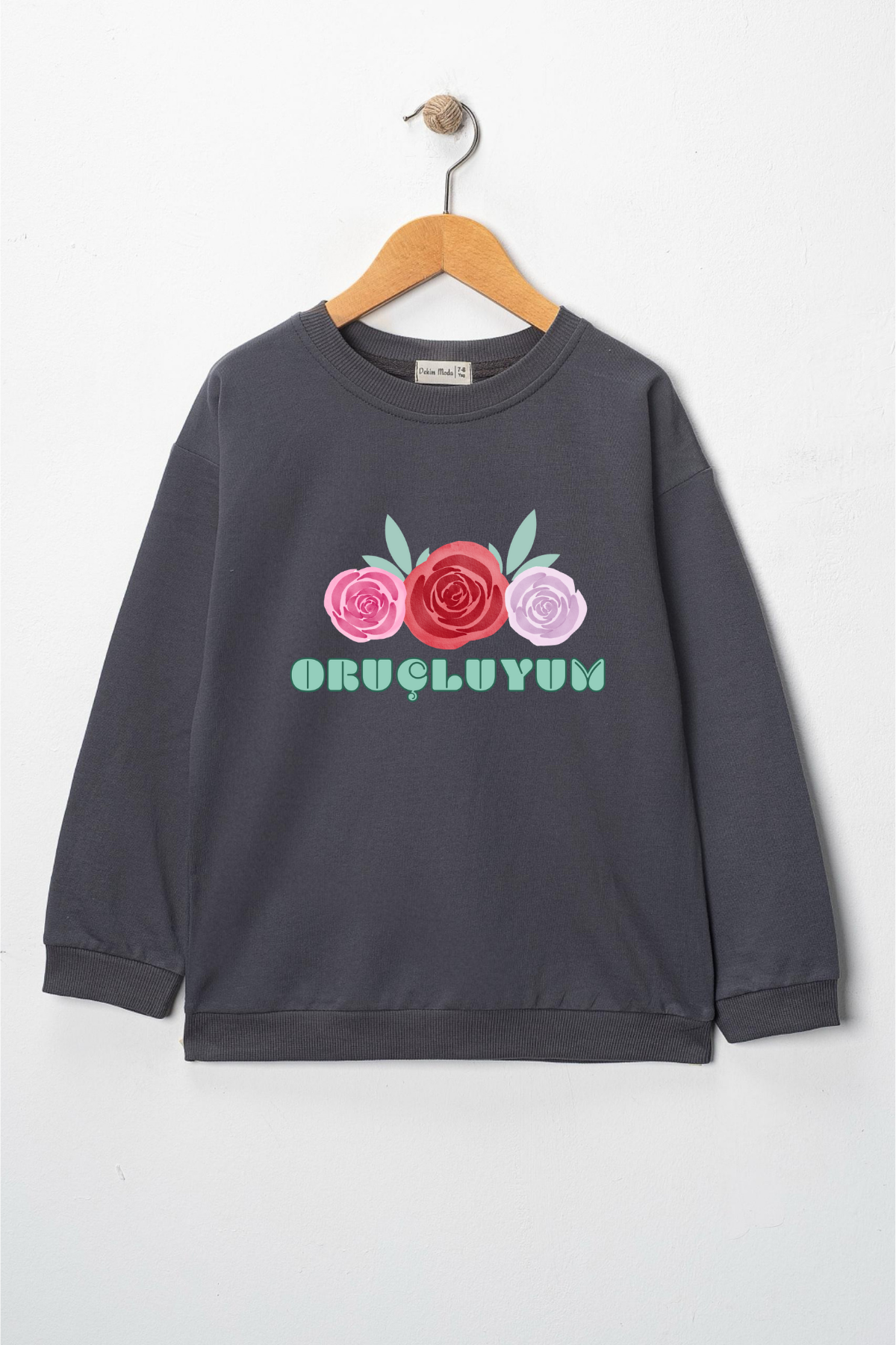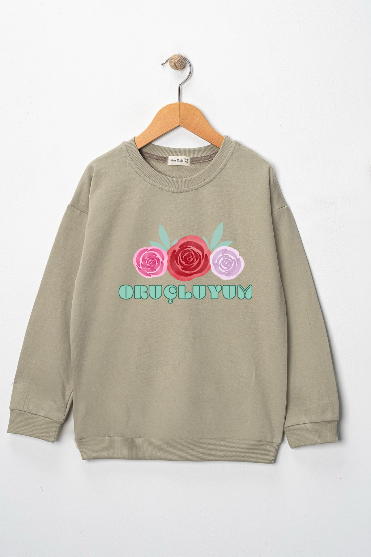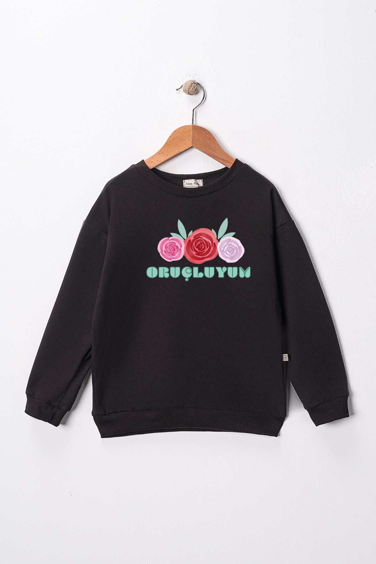 Kız Çocuk Uzun kollu, pamuklu, bisiklet yaka, baskılı sweat.
