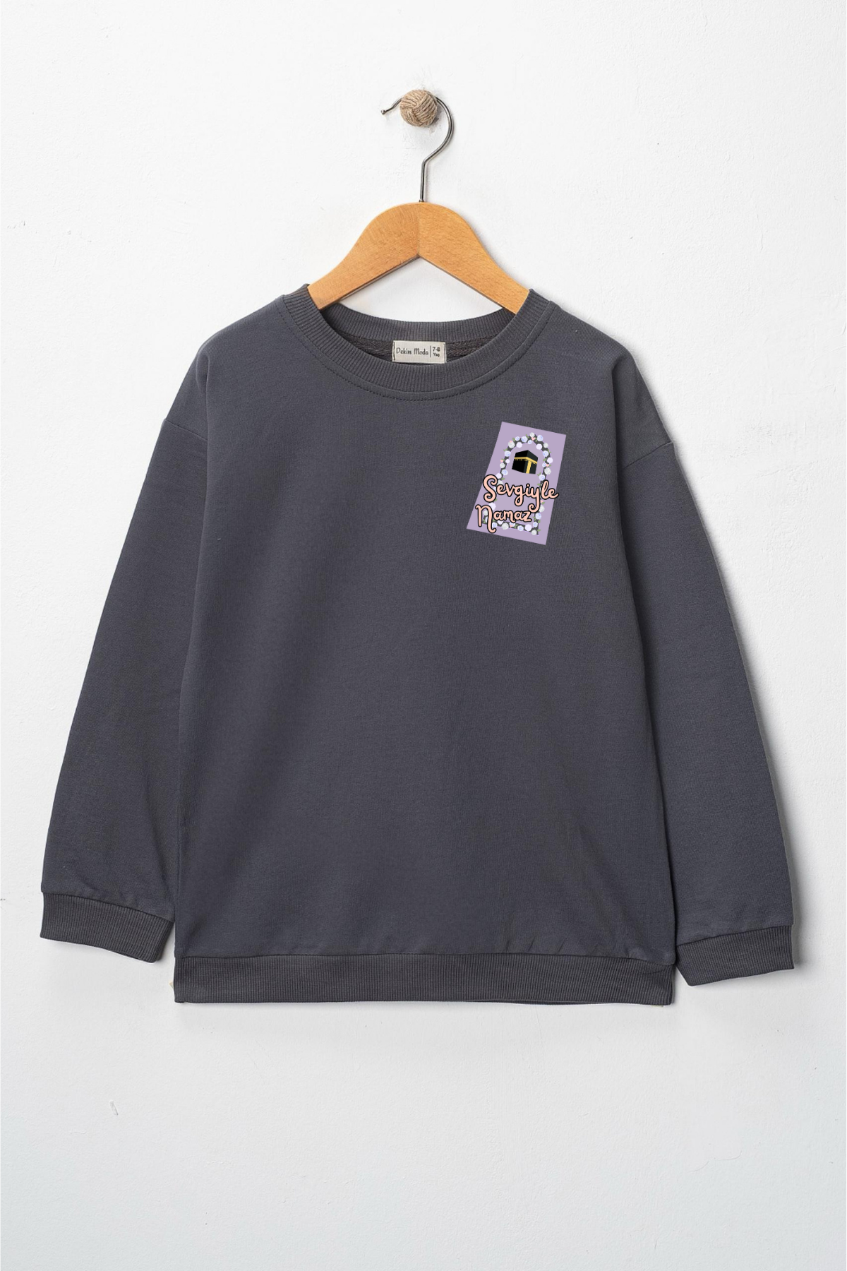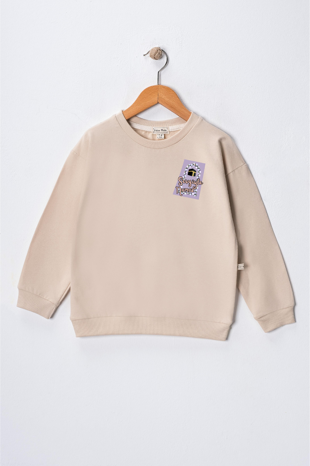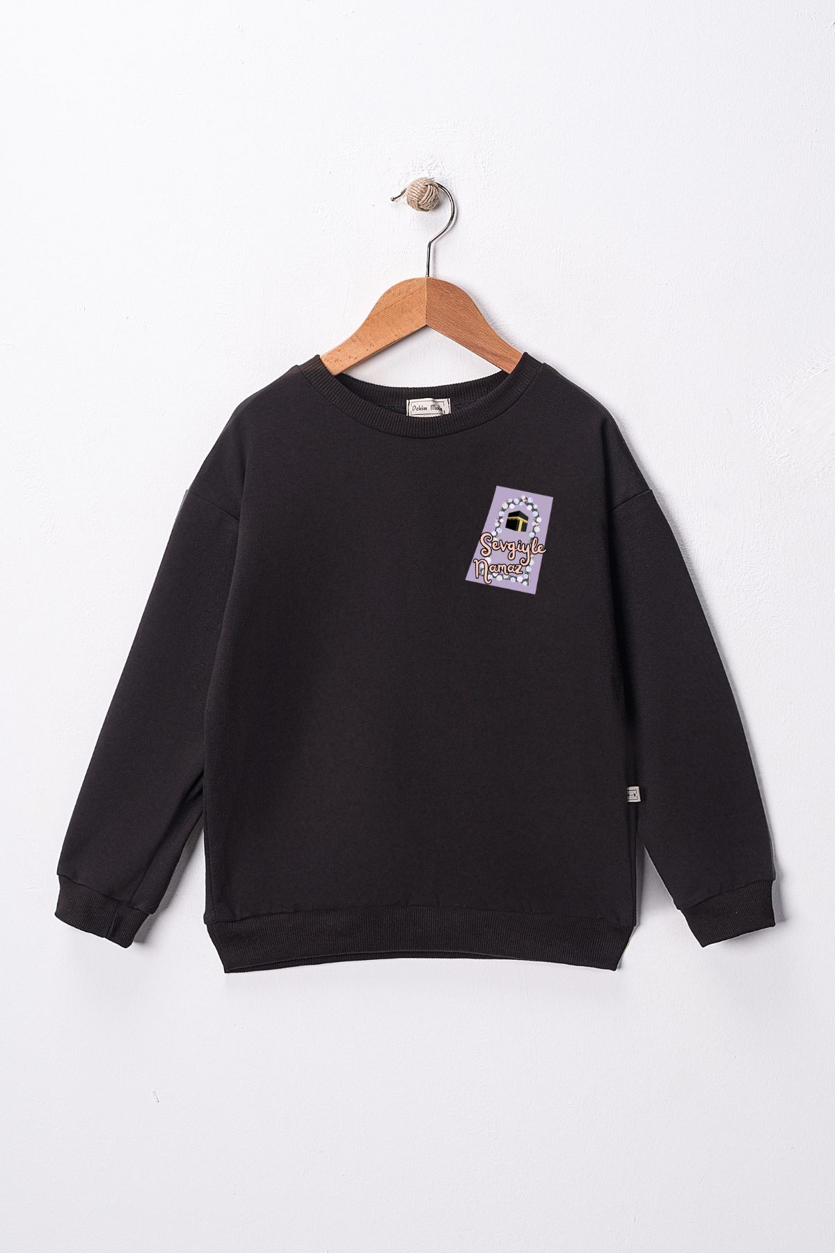 Kız Çocuk Uzun kollu, pamuklu, bisiklet yaka, baskılı sweat.