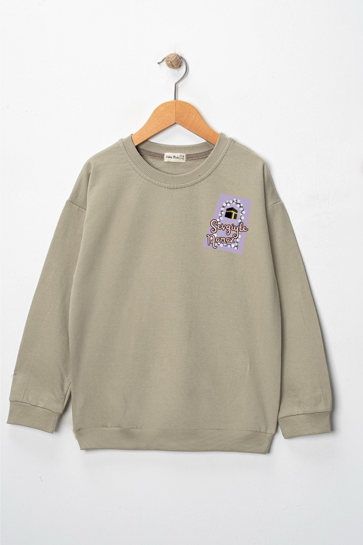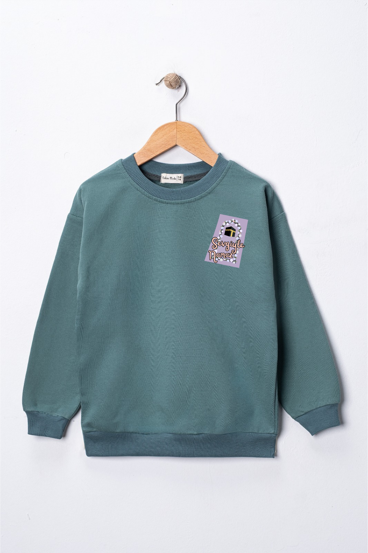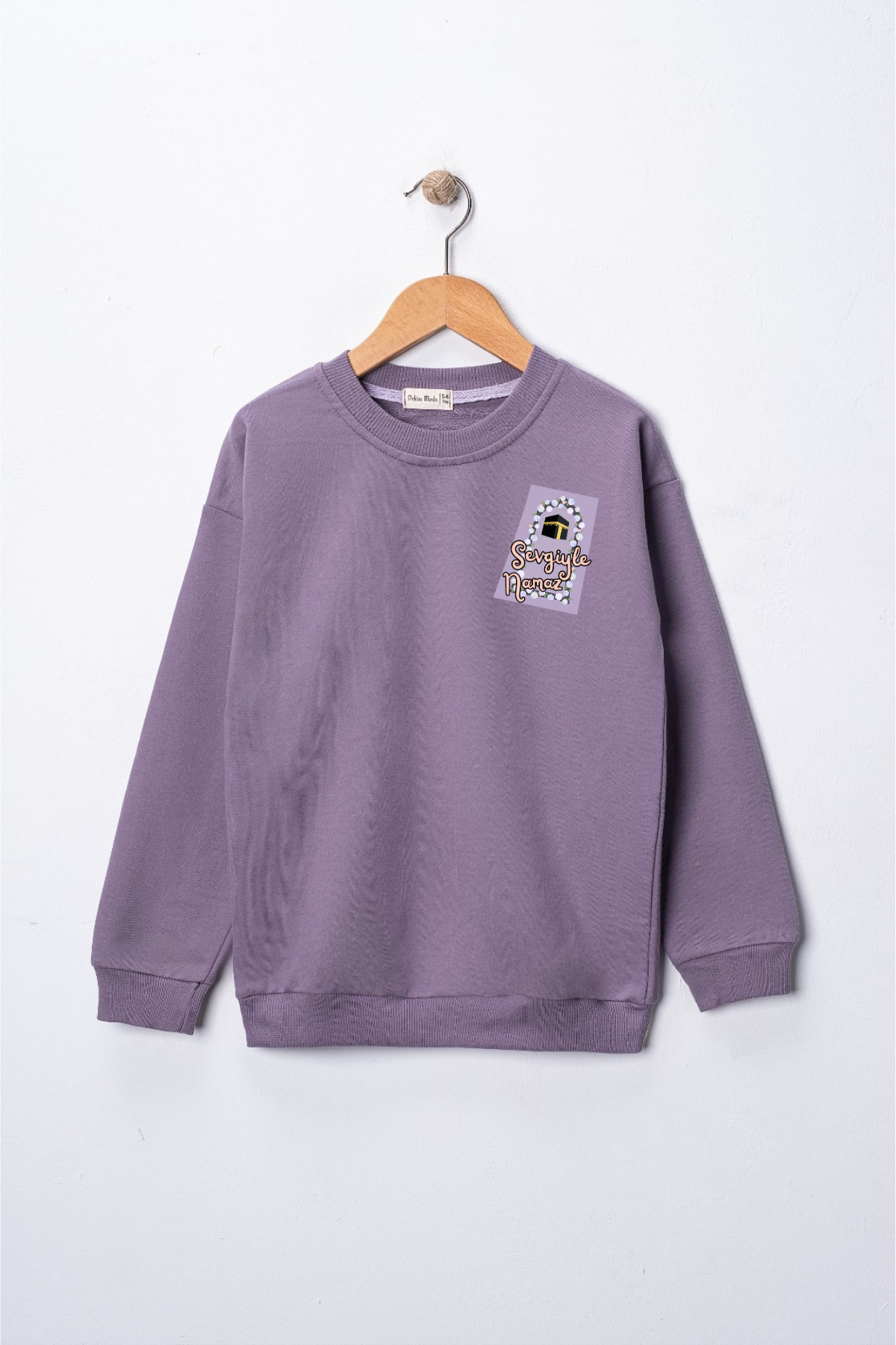 Kız Çocuk Uzun kollu, pamuklu, bisiklet yaka, baskılı sweat.