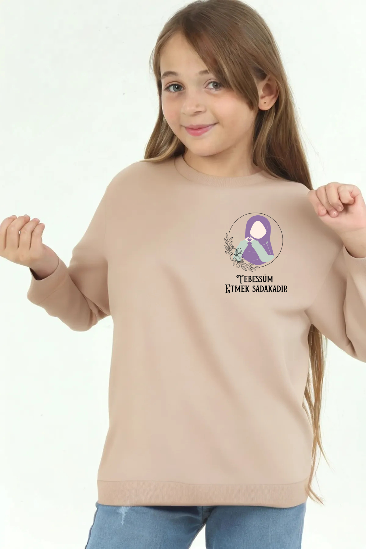 Kız Çocuk Uzun kollu, pamuklu, bisiklet yaka, baskılı sweat.