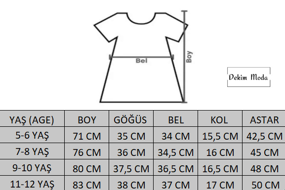 boy 83 CM, göğüs 38 CM, kol 17 CM,