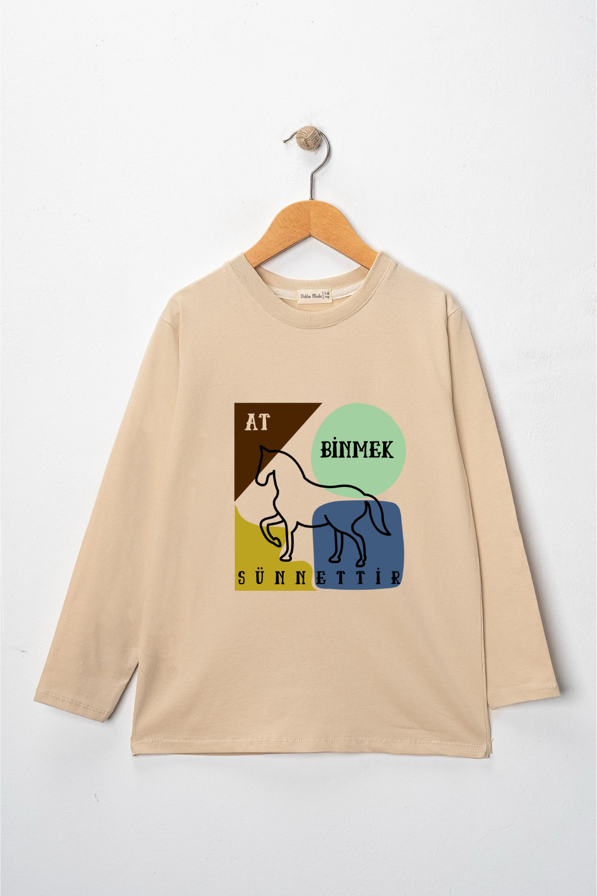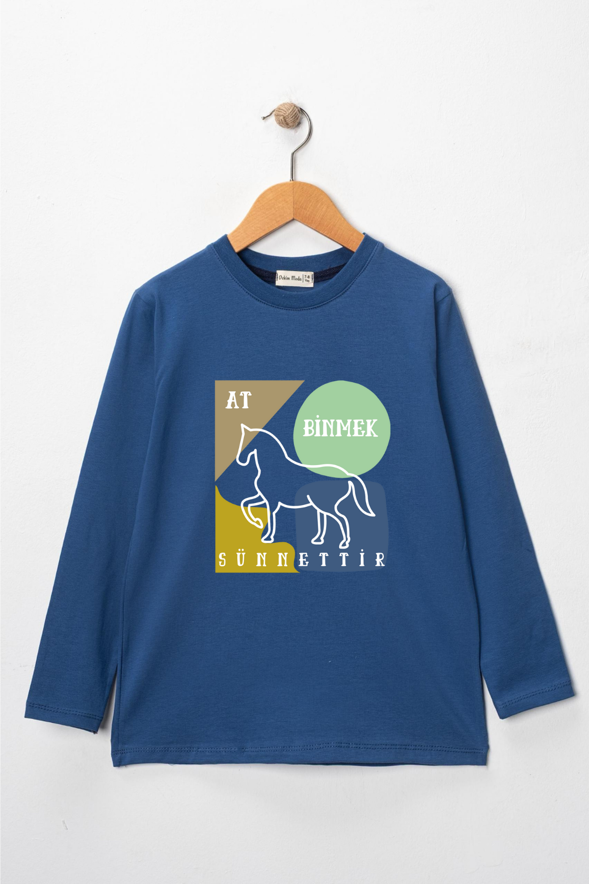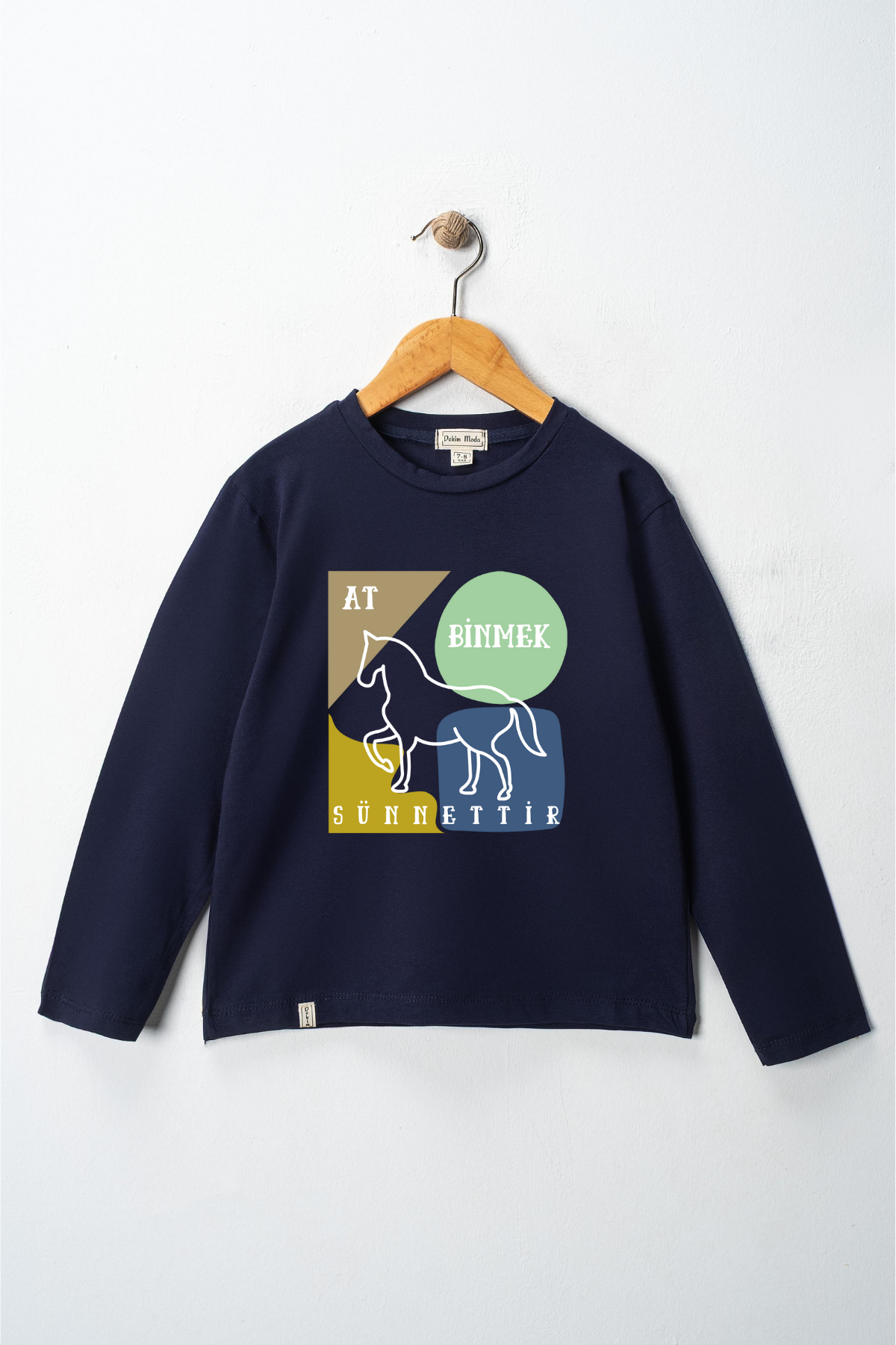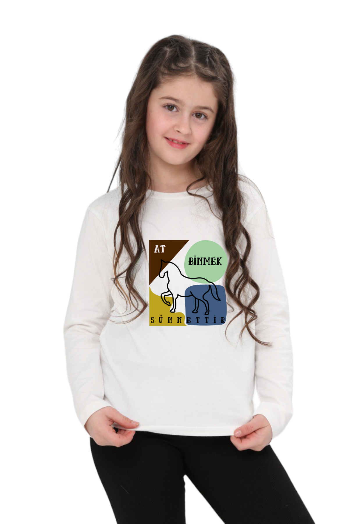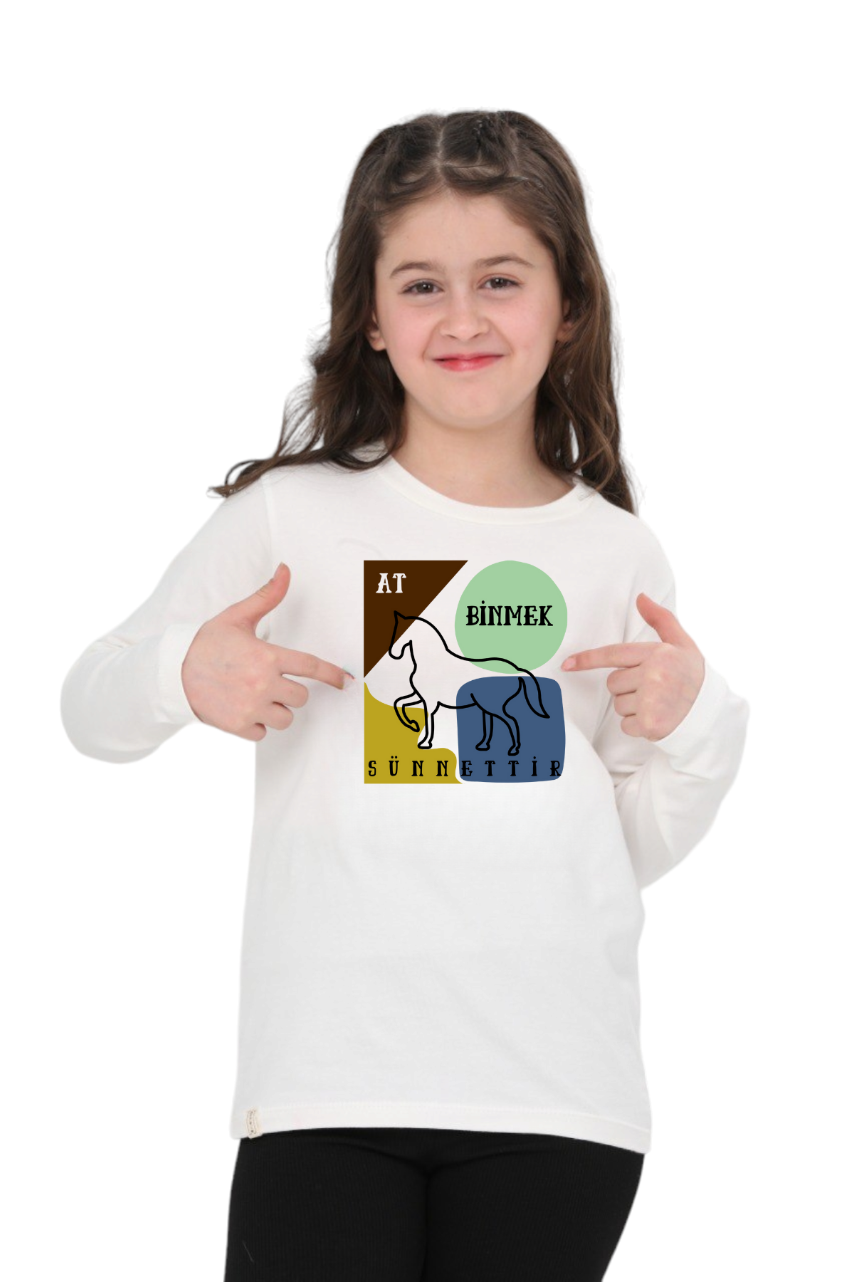 Kız Çocuk Uzun kollu, pamuklu, bisiklet yaka, baskılı t-shirt. İslami tema "At Binmek Sünnettir" baskılı özel tasarım üründür. Çocuk fıtratına uygun, çocukların sevebileceği görseller kullanılarak tasarlanmıştır. Değerli Ebeveyn, Birlikte yeni bir nesil için çabalayarak başarabiliriz, herkes bir ucundan tutarak kendi çocuklarını hayırlı evlat yetiştirme gayretinde olursa neslimiz için üzerimize düşeni yapmış olacağız. Bu tişört tüm etkinliklerde çocuğuza çok güzel eşlik edecektir. Regular (rahat/bol) kalıptır. Beden ölçülerine dikkat ederek yaşına uygun seçim yapabilirsiniz. Mankenin ölçüleri boy 137cm 29kg yaş 9 , Mankenin giydiği beden: 9-10 yaş %95 Pamuk %5 Elastan. Çok Yumuşak, esnek ve kaliteli bir üründür. Ekoteks Belgesi, kumaşın zararsız olduğunu ve herhangi zararlı bir kimyasal madde içermediğini beyan etmektedir. #Özel Ürün 30 Derecede makinede yıkanabilir • Beyazlatıcı kullanımı önerilmez • Kurutucu kullanımı önerilmez • Tersten ve düşük ısı ile ütü önerilir
