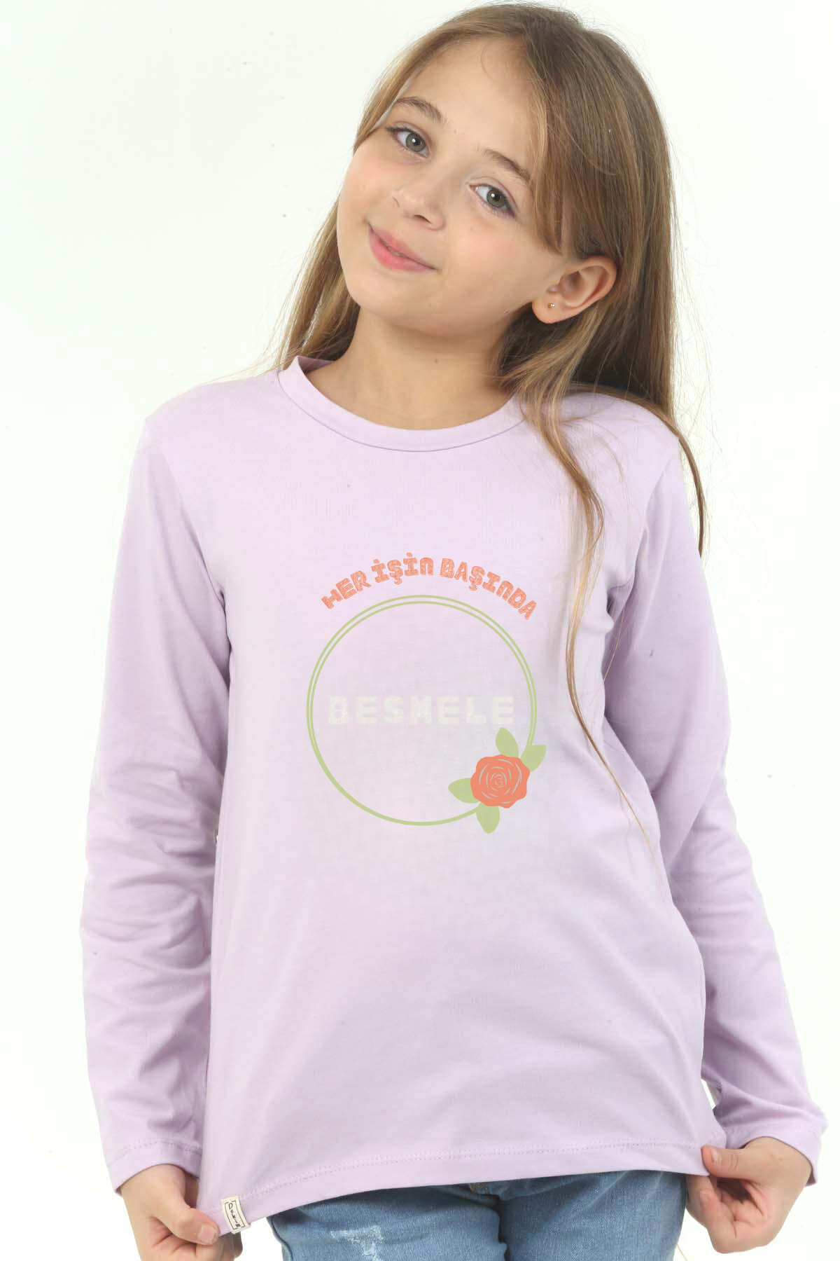 Kız Çocuk Uzun kollu, pamuklu, bisiklet yaka, baskılı t-shirt.