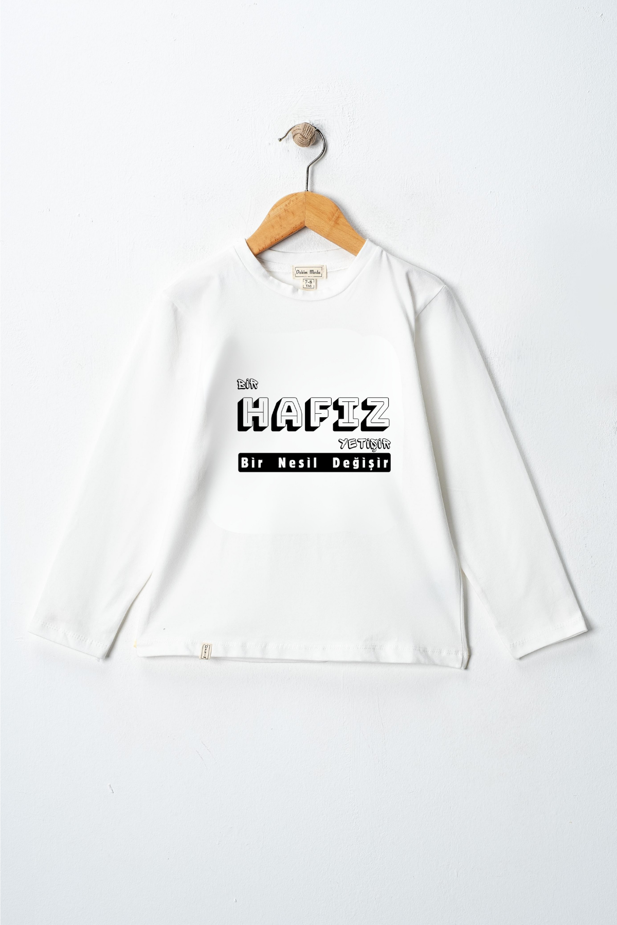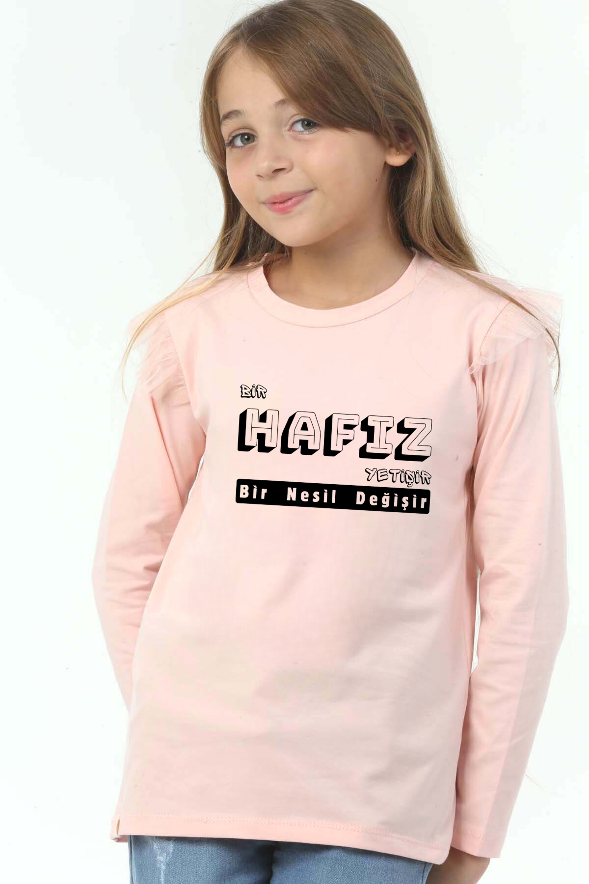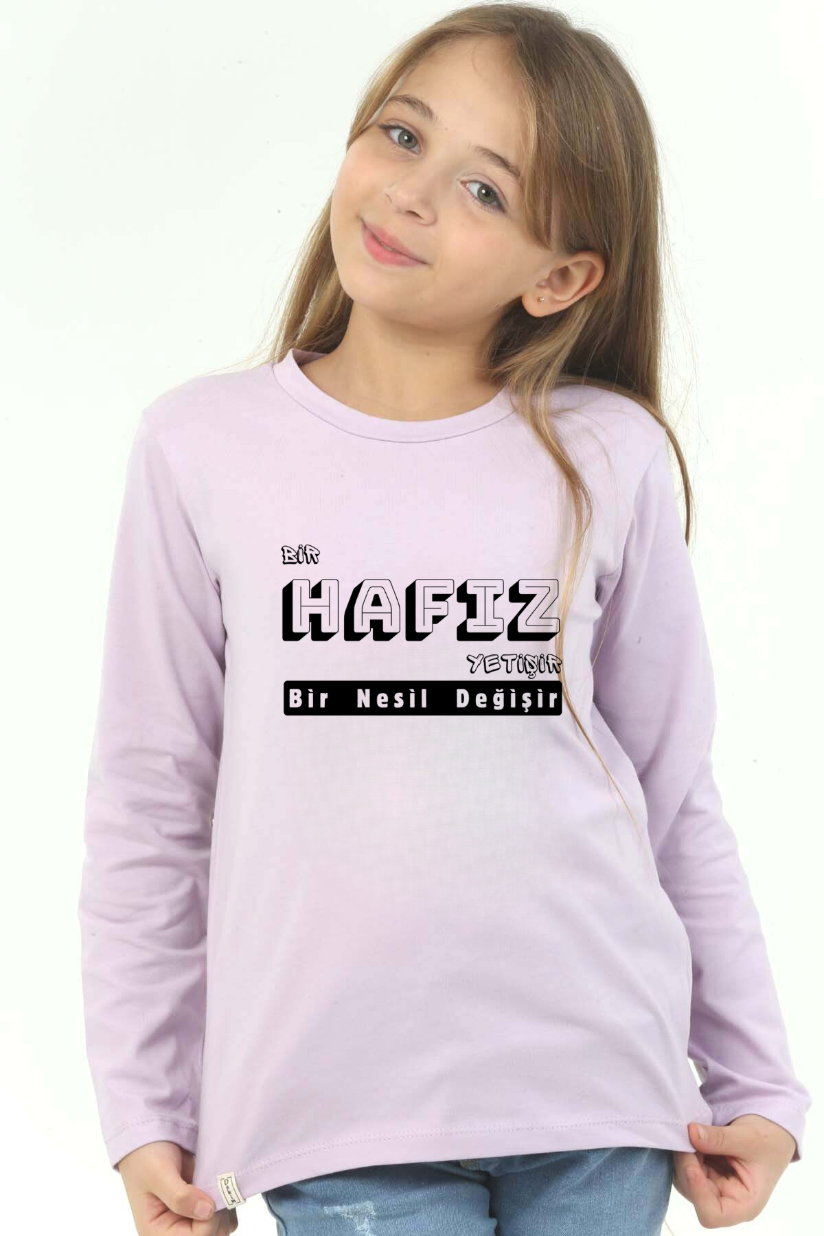 Kız Çocuk Uzun kollu, pamuklu, bisiklet yaka, baskılı t-shirt. İslami tema "Bir Hafız Yetişir, Bir Nesil Yetişir" baskılı özel tasarım üründür. Çocuk fıtratına uygun, çocukların sevebileceği görseller kullanılarak tasarlanmıştır. Değerli Ebeveyn, Birlikte yeni bir nesil için çabalayarak başarabiliriz, herkes bir ucundan tutarak kendi çocuklarını hayırlı evlat yetiştirme gayretinde olursa neslimiz için üzerimize düşeni yapmış olacağız. Bu tişört tüm etkinliklerde çocuğuza çok güzel eşlik edecektir. Regular (rahat/bol) kalıptır. Beden ölçülerine dikkat ederek yaşına uygun seçim yapabilirsiniz. Mankenin ölçüleri boy 137cm 29kg yaş 9 , Mankenin giydiği beden: 9-10 yaş %95 Pamuk %5 Elastan. Çok Yumuşak, esnek ve kaliteli bir üründür. Ekoteks Belgesi, kumaşın zararsız olduğunu ve herhangi zararlı bir kimyasal madde içermediğini beyan etmektedir. #Özel Ürün 30 Derecede makinede yıkanabilir • Beyazlatıcı kullanımı önerilmez • Kurutucu kullanımı önerilmez • Tersten ve düşük ısı ile ütü önerilir