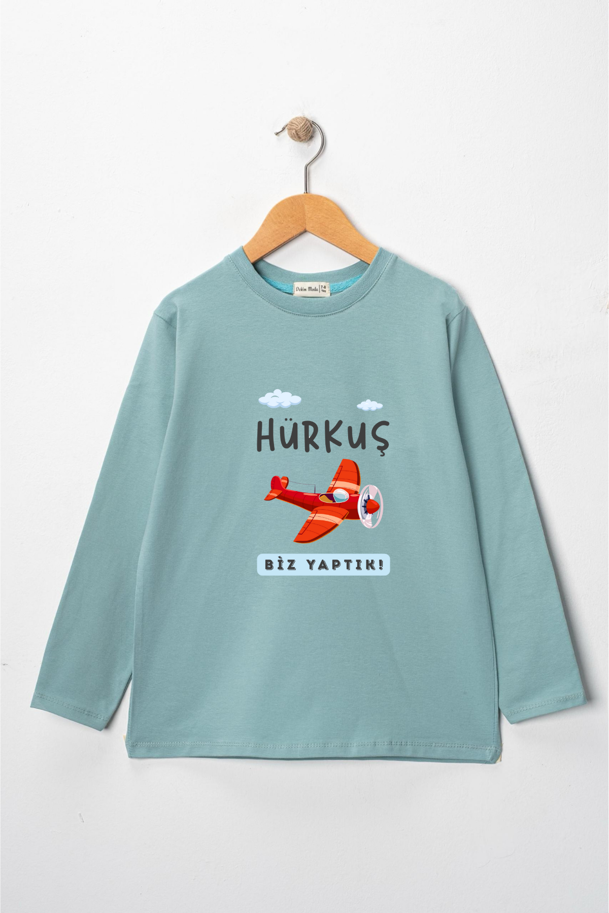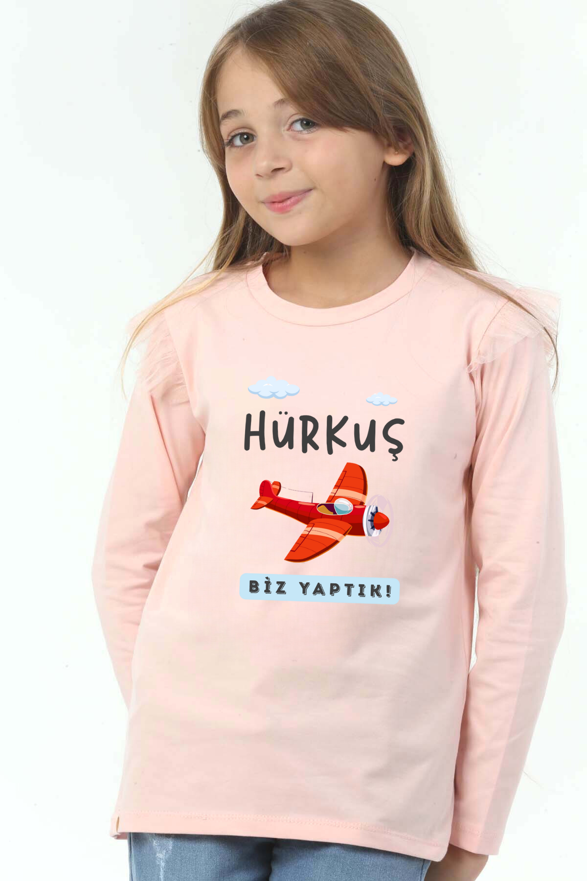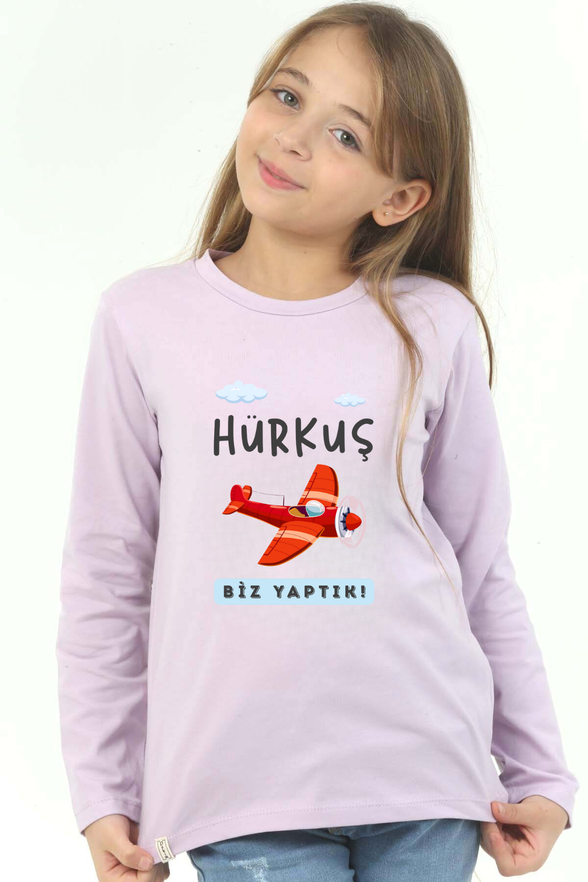 Kız Çocuk Uzun kollu, pamuklu, bisiklet yaka, baskılı t-shirt. İslami tema "Hürkuş Biz Yaptık" baskılı özel tasarım üründür. Çocuk fıtratına uygun, çocukların sevebileceği görseller kullanılarak tasarlanmıştır. Değerli Ebeveyn, Birlikte yeni bir nesil için çabalayarak başarabiliriz, herkes bir ucundan tutarak kendi çocuklarını hayırlı evlat yetiştirme gayretinde olursa neslimiz için üzerimize düşeni yapmış olacağız. Bu tişört tüm etkinliklerde çocuğuza çok güzel eşlik edecektir. Regular (rahat/bol) kalıptır. Beden ölçülerine dikkat ederek yaşına uygun seçim yapabilirsiniz. Mankenin ölçüleri boy 137cm 29kg yaş 9 , Mankenin giydiği beden: 9-10 yaş %95 Pamuk %5 Elastan. Çok Yumuşak, esnek ve kaliteli bir üründür. Ekoteks Belgesi, kumaşın zararsız olduğunu ve herhangi zararlı bir kimyasal madde içermediğini beyan etmektedir. #Özel Ürün 30 Derecede makinede yıkanabilir • Beyazlatıcı kullanımı önerilmez • Kurutucu kullanımı önerilmez • Tersten ve düşük ısı ile ütü önerilir