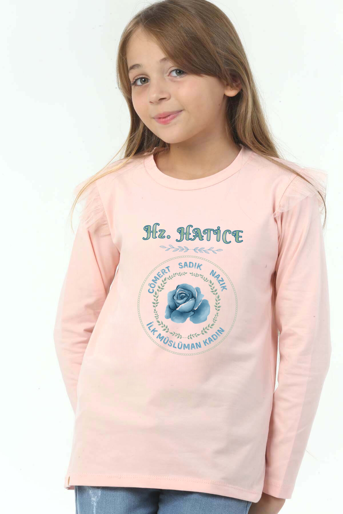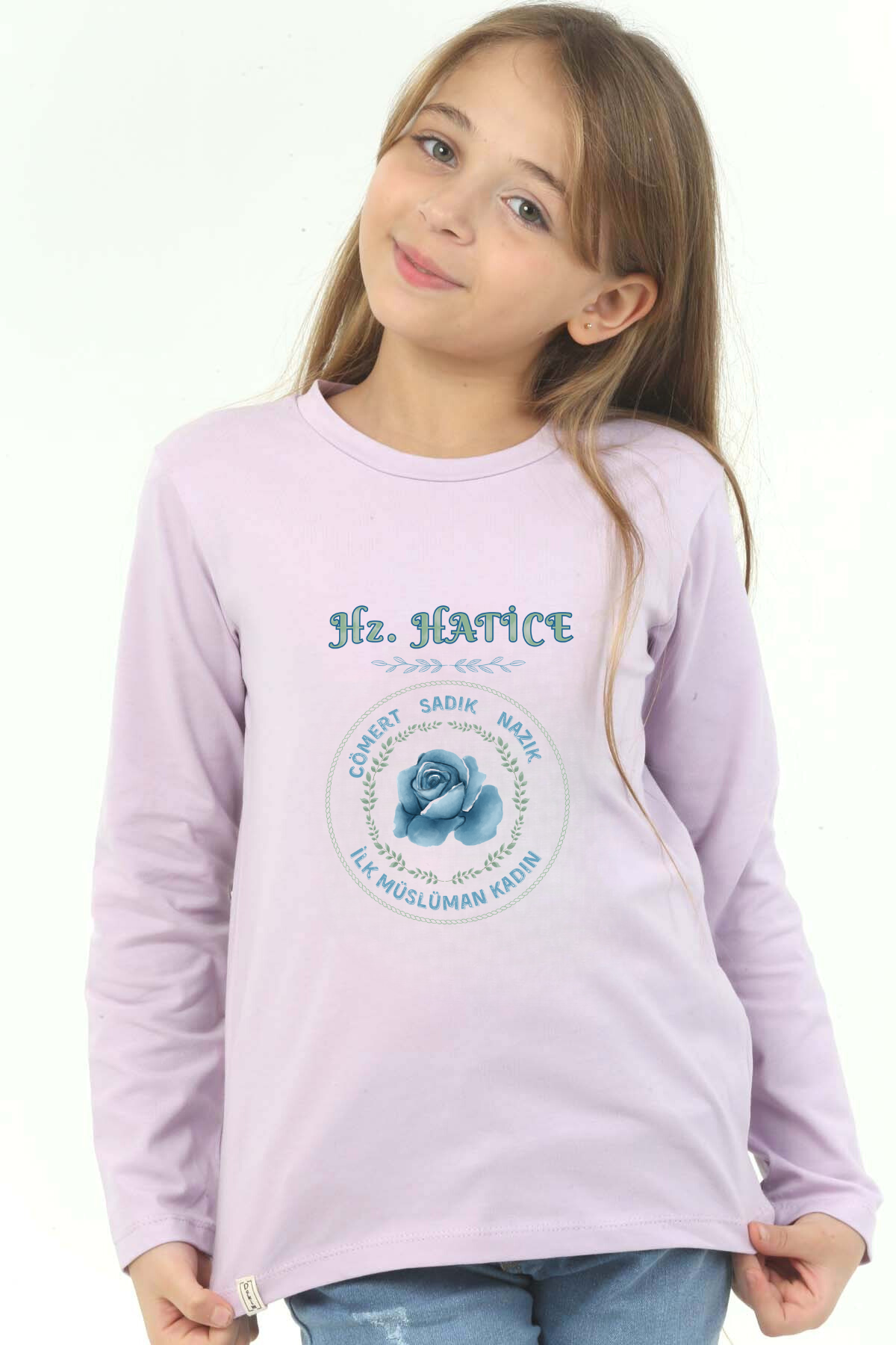 Kız Çocuk Uzun kollu, pamuklu, bisiklet yaka, baskılı t-shirt. İslami tema "Hz Hatice" baskılı özel tasarım üründür. Çocuk fıtratına uygun, çocukların sevebileceği görseller kullanılarak tasarlanmıştır. Değerli Ebeveyn, Birlikte yeni bir nesil için çabalayarak başarabiliriz, herkes bir ucundan tutarak kendi çocuklarını hayırlı evlat yetiştirme gayretinde olursa neslimiz için üzerimize düşeni yapmış olacağız. Bu tişört tüm etkinliklerde çocuğuza çok güzel eşlik edecektir. Regular (rahat/bol) kalıptır. Beden ölçülerine dikkat ederek yaşına uygun seçim yapabilirsiniz. Mankenin ölçüleri boy 137cm 29kg yaş 9 , Mankenin giydiği beden: 9-10 yaş %95 Pamuk %5 Elastan. Çok Yumuşak, esnek ve kaliteli bir üründür. Ekoteks Belgesi, kumaşın zararsız olduğunu ve herhangi zararlı bir kimyasal madde içermediğini beyan etmektedir. #Özel Ürün 30 Derecede makinede yıkanabilir • Beyazlatıcı kullanımı önerilmez • Kurutucu kullanımı önerilmez • Tersten ve düşük ısı ile ütü önerilir