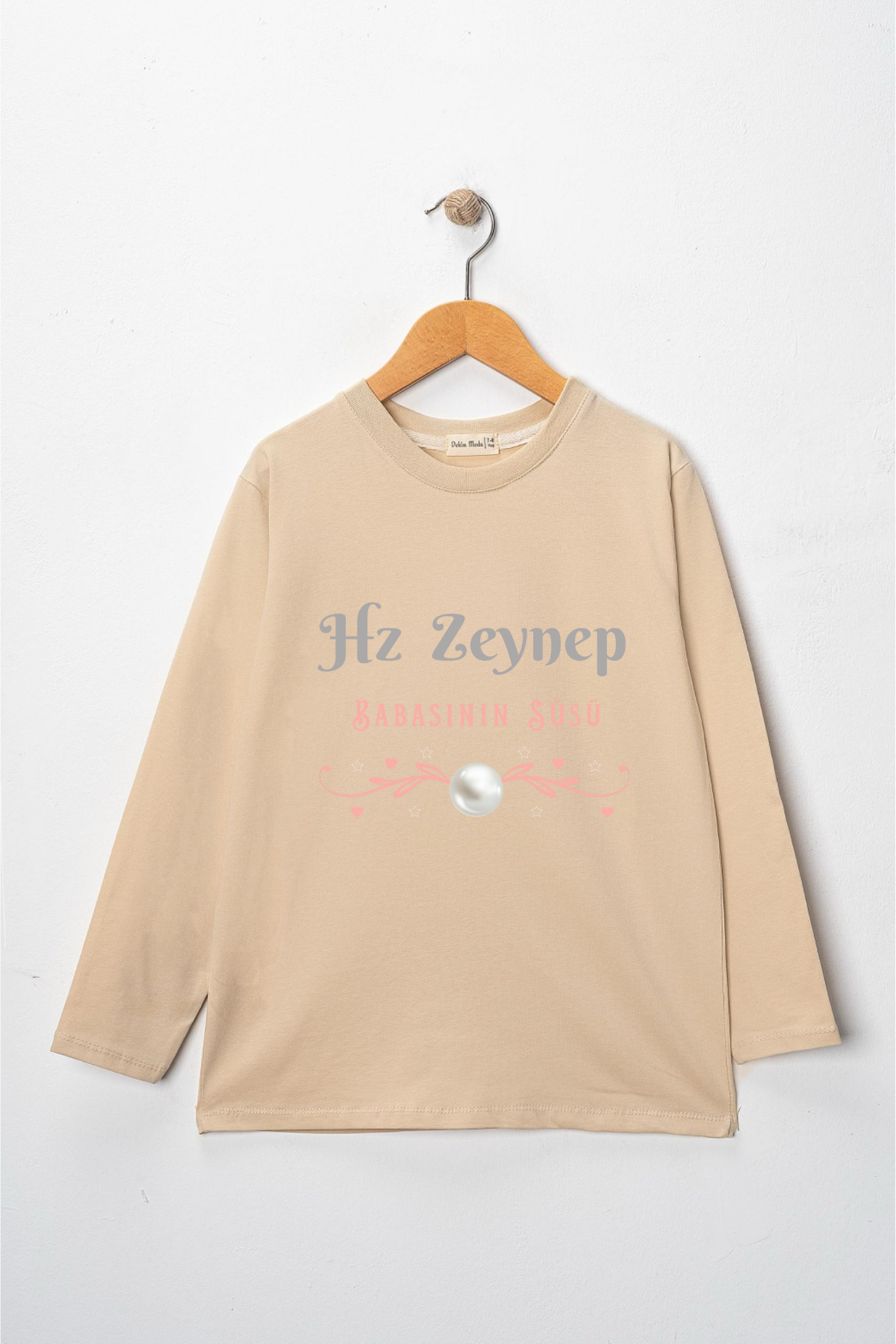 Kız Çocuk Uzun kollu, pamuklu, bisiklet yaka, baskılı t-shirt. İslami tema "Hz Zeynep" baskılı özel tasarım üründür. Çocuk fıtratına uygun, çocukların sevebileceği görseller kullanılarak tasarlanmıştır.Değerli Ebeveyn, Birlikte yeni bir nesil için çabalayarak başarabiliriz, herkes bir ucundan tutarak kendi çocuklarını hayırlı evlat yetiştirme gayretinde olursa neslimiz için üzerimize düşeni yapmış olacağız. Bu tişört tüm etkinliklerde çocuğuza çok güzel eşlik edecektir. Kız çocuklarının gümüş parlayan dokulu yazısıyla ilgisini çeken, şık ve rahat bir ürünümüzdür. Regular (rahat/bol) kalıptır. Beden ölçülerine dikkat ederek yaşına uygun seçim yapabilirsiniz. Mankenin ölçüleri boy 137cm 29kg yaş 9 , Mankenin giydiği beden: 9-10 yaş %95 Pamuk %5 Elastan. Çok Yumuşak, esnek ve kaliteli bir üründür. Ekoteks Belgesi, kumaşın zararsız olduğunu ve herhangi zararlı bir kimyasal madde içermediğini beyan etmektedir. #Özel Ürün 30 Derecede makinede yıkanabilir • Beyazlatıcı kullanımı önerilmez • Kurutucu kullanımı önerilmez • Tersten ve düşük ısı ile ütü önerilir