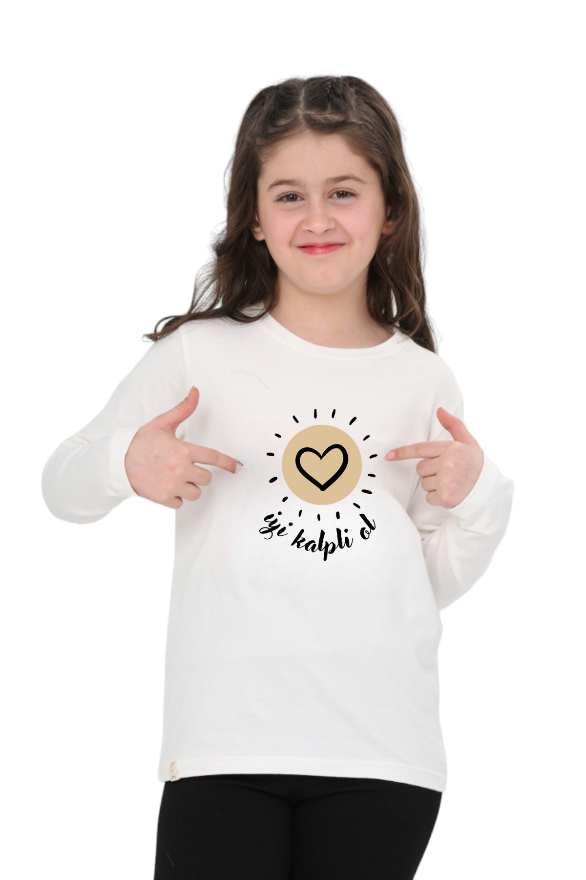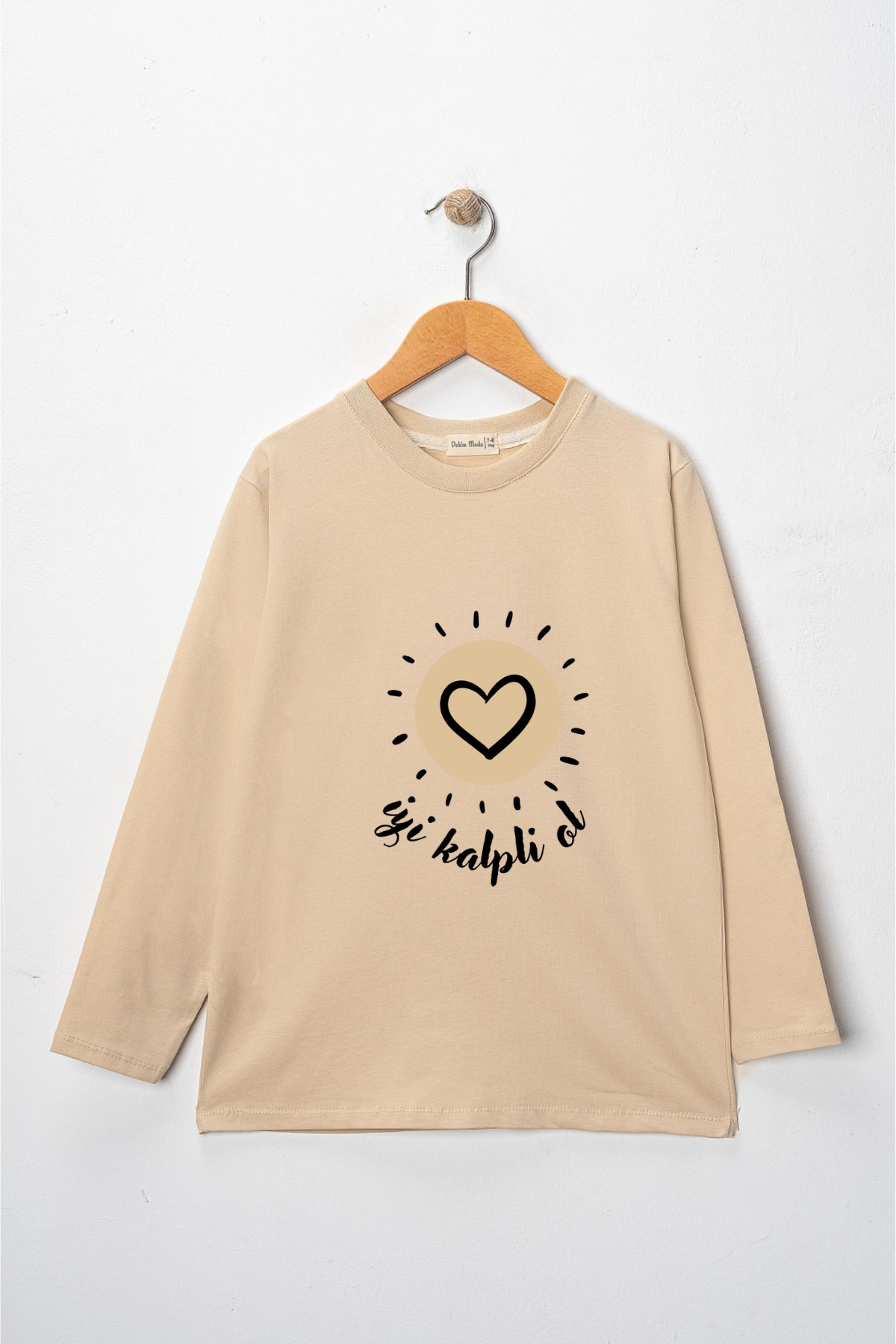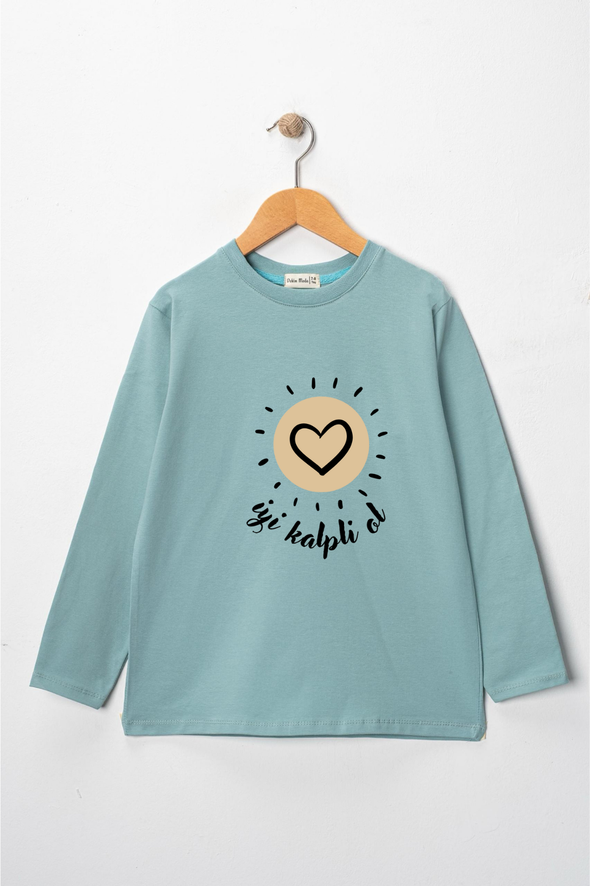 Uzun kollu, pamuklu, bisiklet yaka,''İyi Kalpli Ol'' baskılı özel tasarım üründür. Çocuk fıtratına uygun, çocukların sevebileceği görseller kullanılarak tasarlanmıştır.