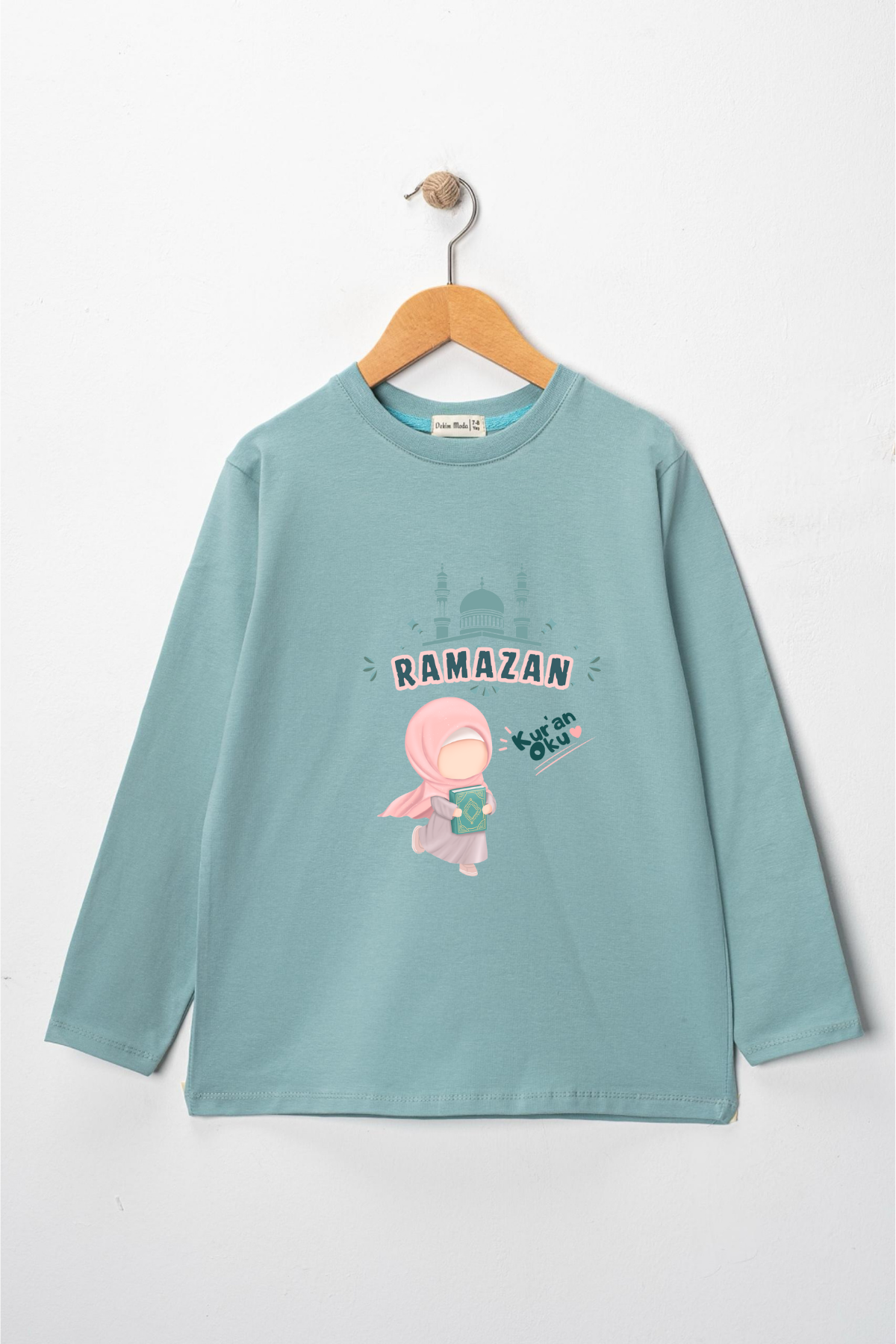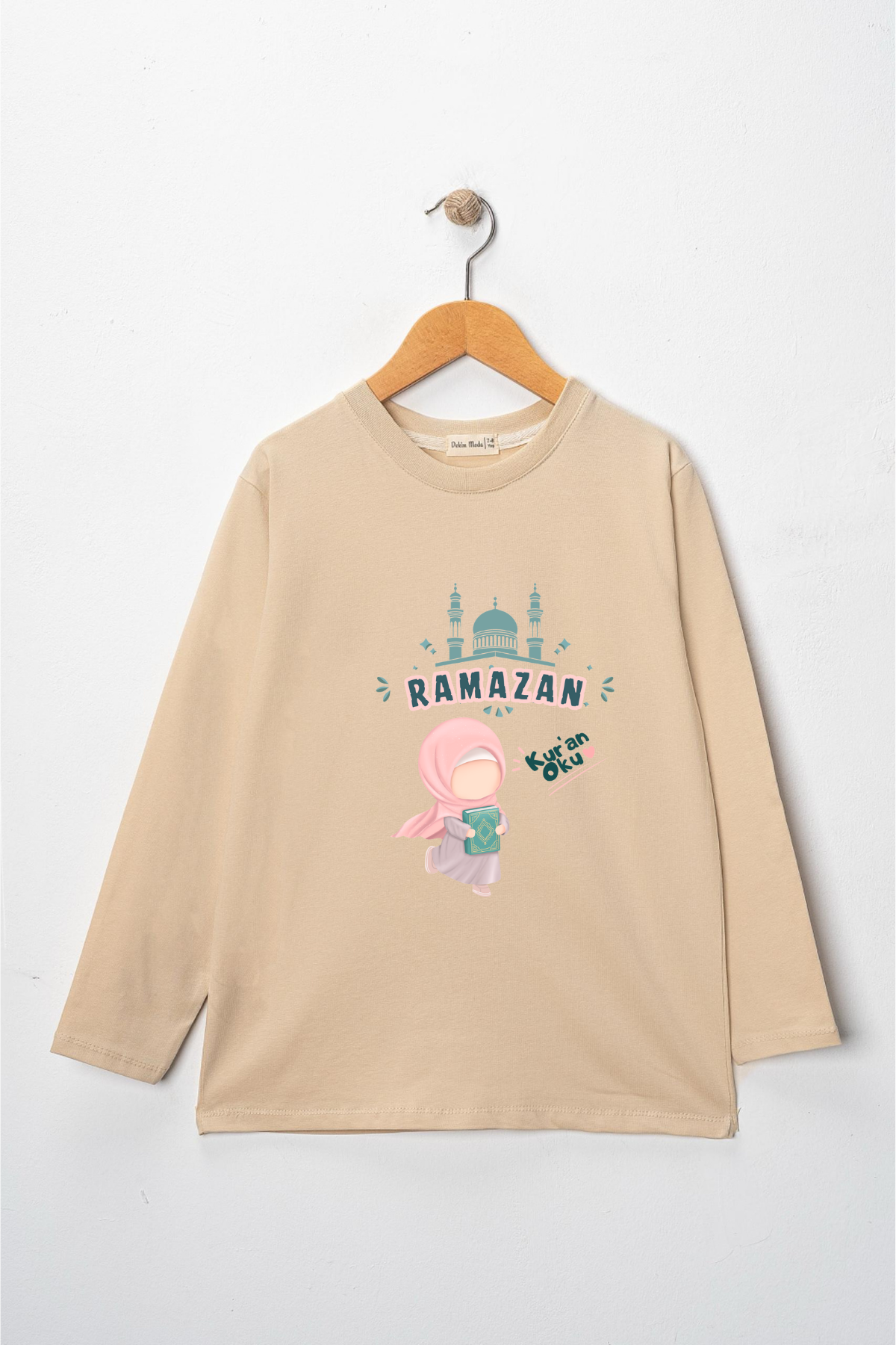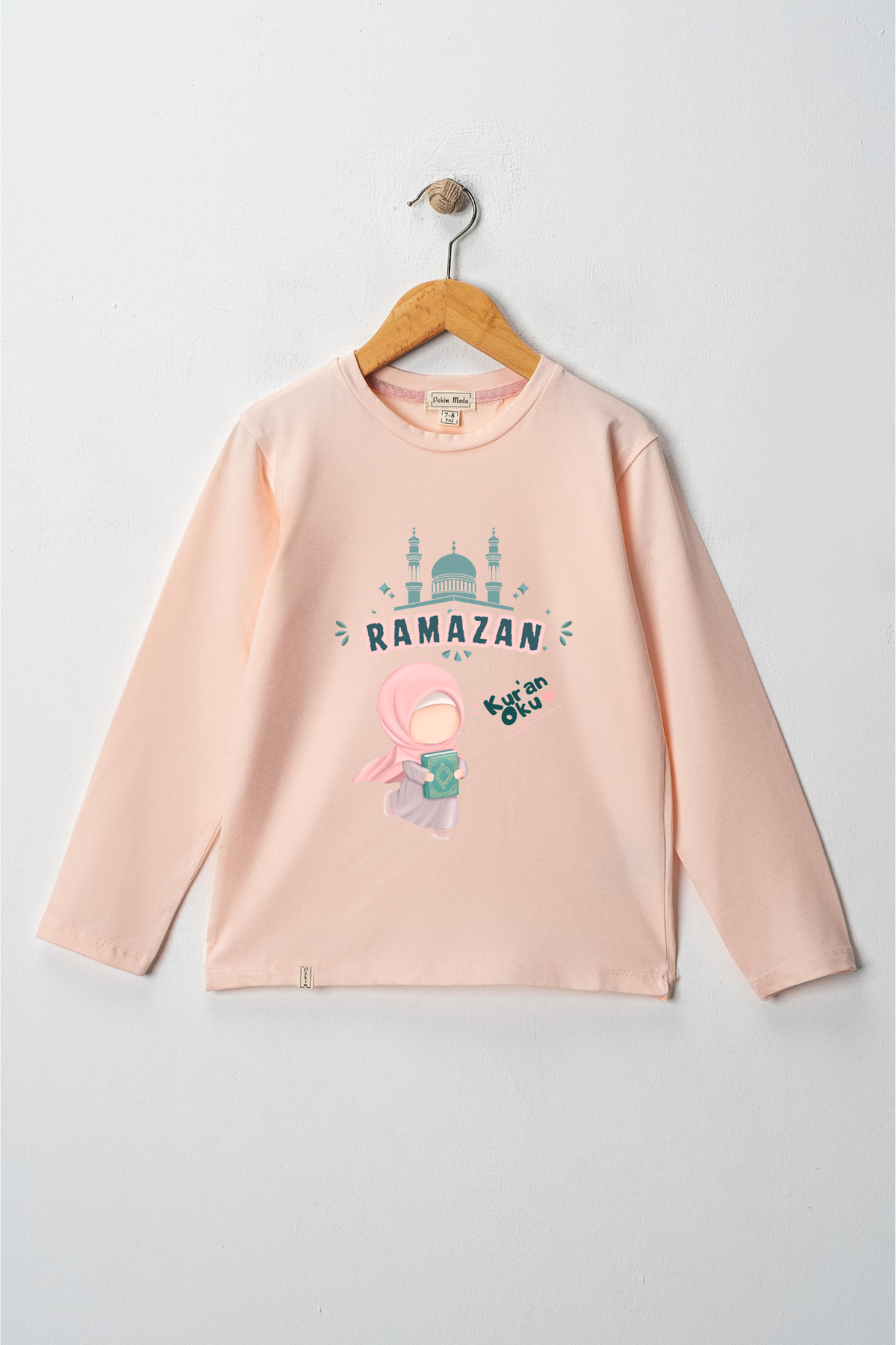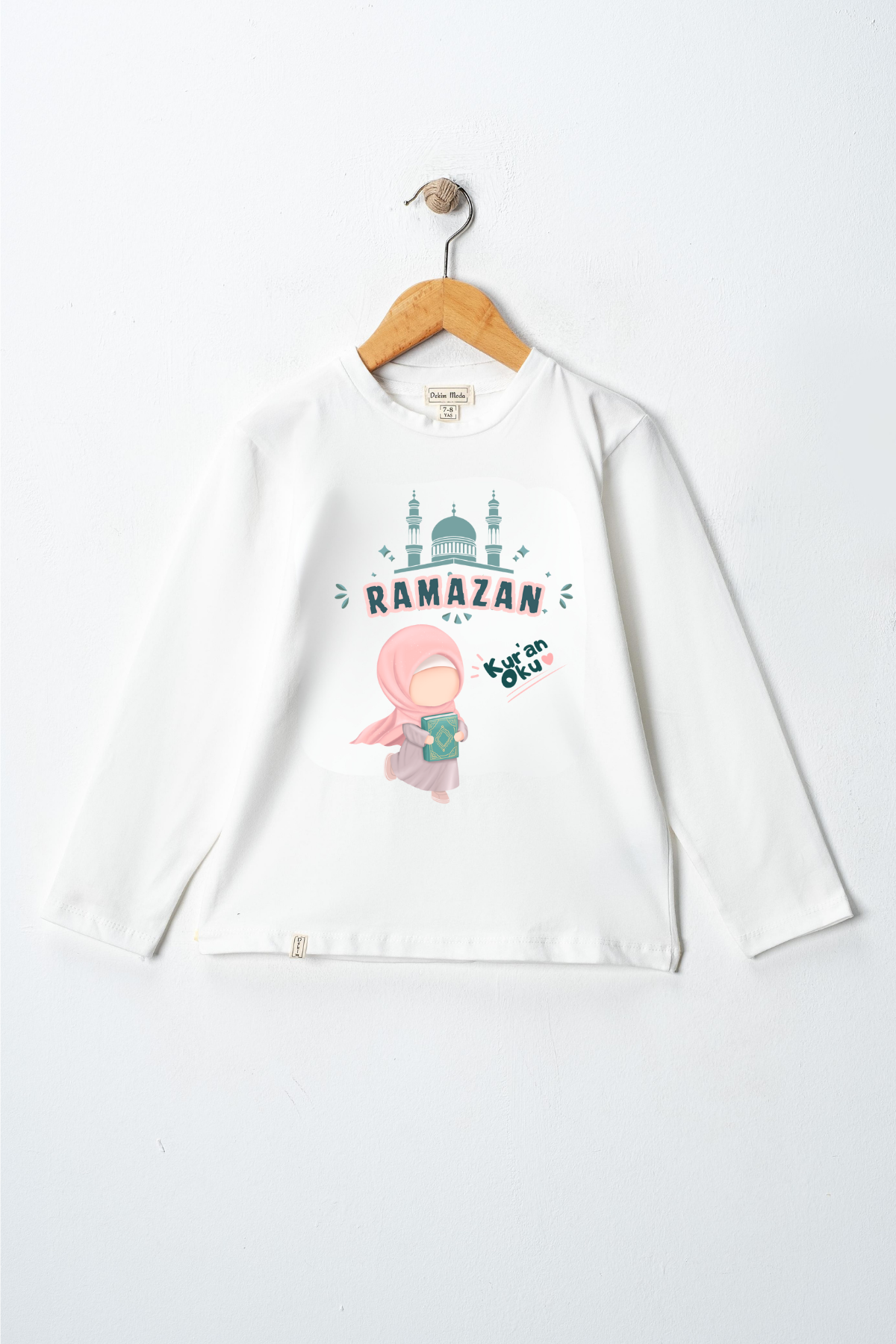 Kız Çocuk Uzun kollu, pamuklu, bisiklet yaka, baskılı t-shirt. İslami tema "Ramazan" baskılı özel tasarım üründür. Çocuk fıtratına uygun, çocukların sevebileceği görseller kullanılarak tasarlanmıştır. Değerli Ebeveyn, Birlikte yeni bir nesil için çabalayarak başarabiliriz, herkes bir ucundan tutarak kendi çocuklarını hayırlı evlat yetiştirme gayretinde olursa neslimiz için üzerimize düşeni yapmış olacağız. Bu tişört tüm etkinliklerde çocuğuza çok güzel eşlik edecektir. Regular (rahat/bol) kalıptır. Beden ölçülerine dikkat ederek yaşına uygun seçim yapabilirsiniz. Mankenin ölçüleri boy 137cm 29kg yaş 9 , Mankenin giydiği beden: 9-10 yaş %95 Pamuk %5 Elastan. Çok Yumuşak, esnek ve kaliteli bir üründür. Ekoteks Belgesi, kumaşın zararsız olduğunu ve herhangi zararlı bir kimyasal madde içermediğini beyan etmektedir. #Özel Ürün 30 Derecede makinede yıkanabilir • Beyazlatıcı kullanımı önerilmez • Kurutucu kullanımı önerilmez • Tersten ve düşük ısı ile ütü önerilir