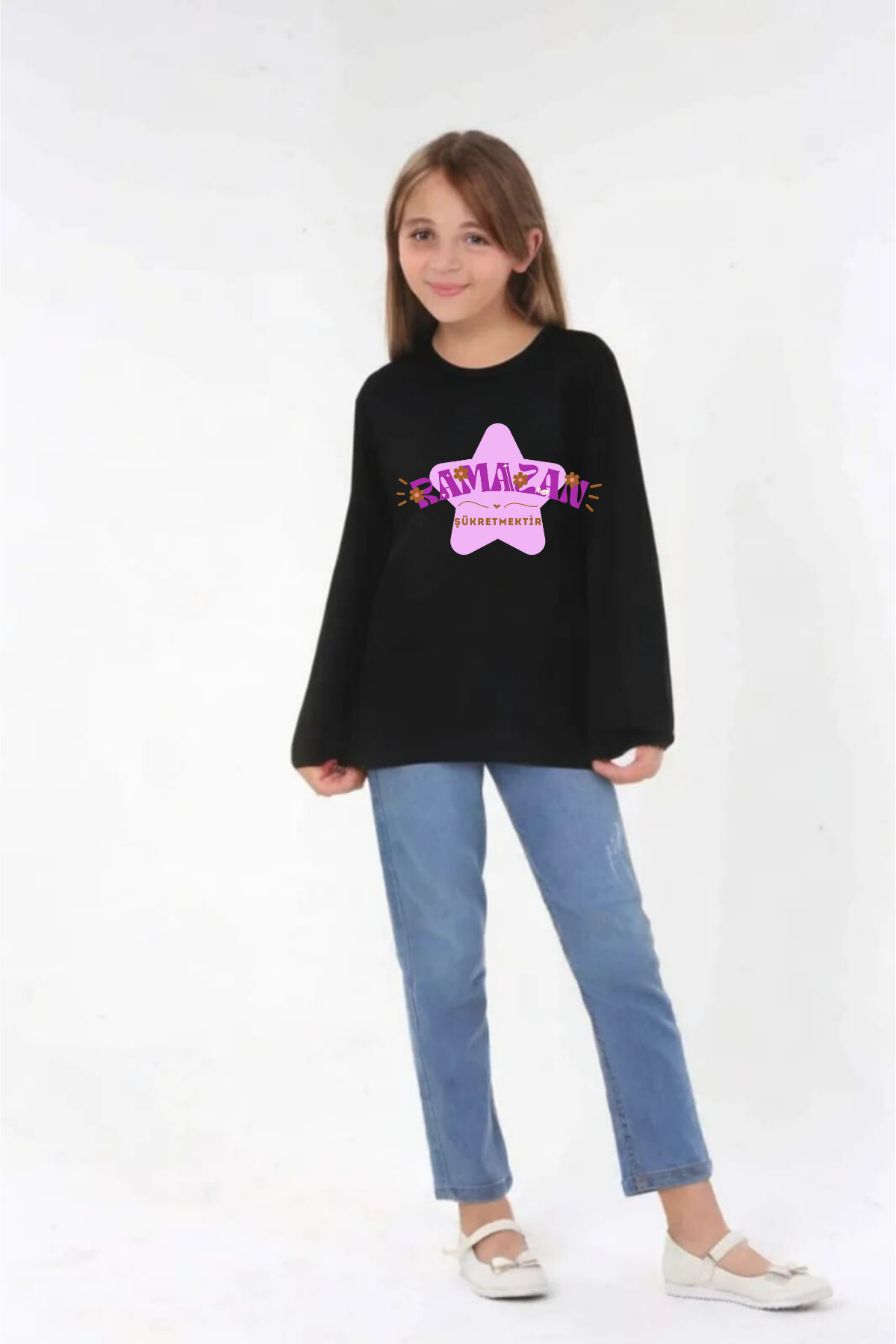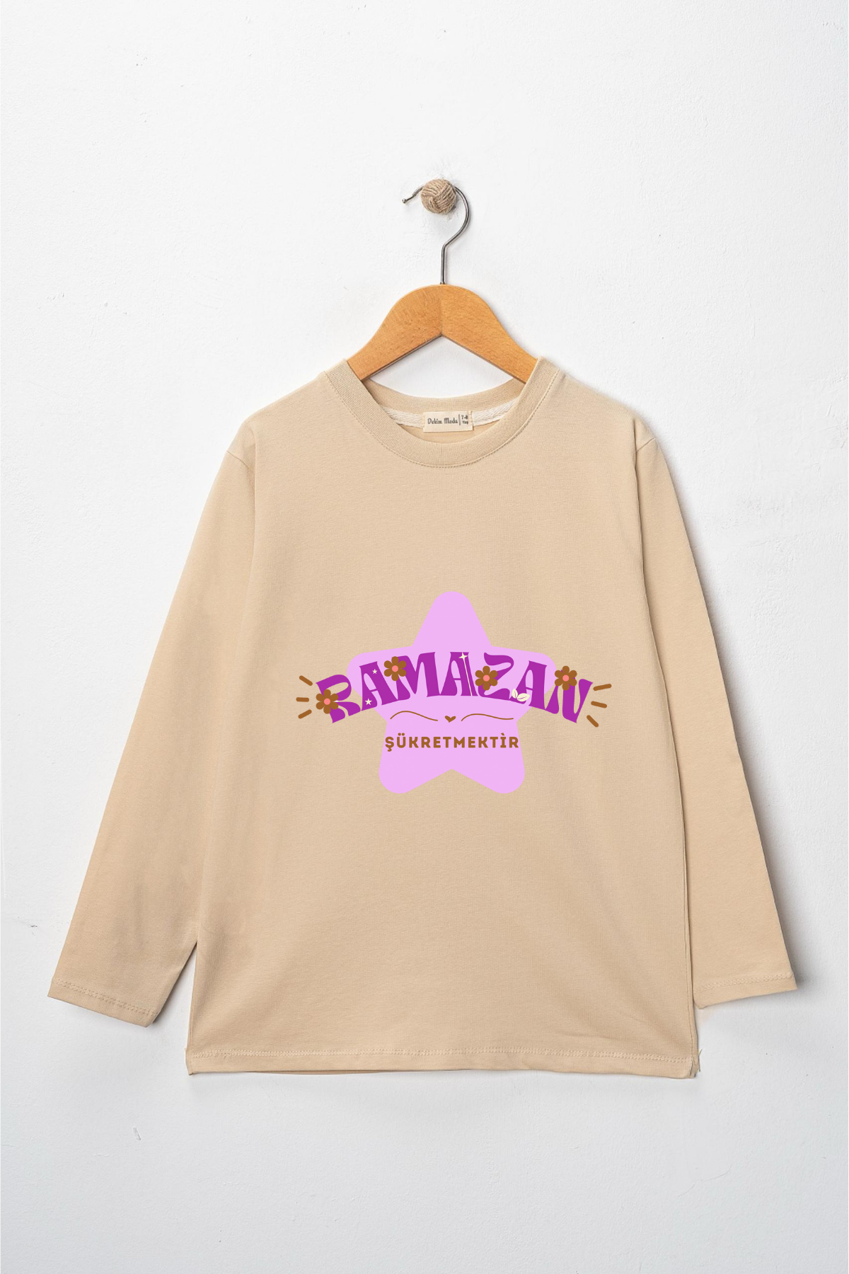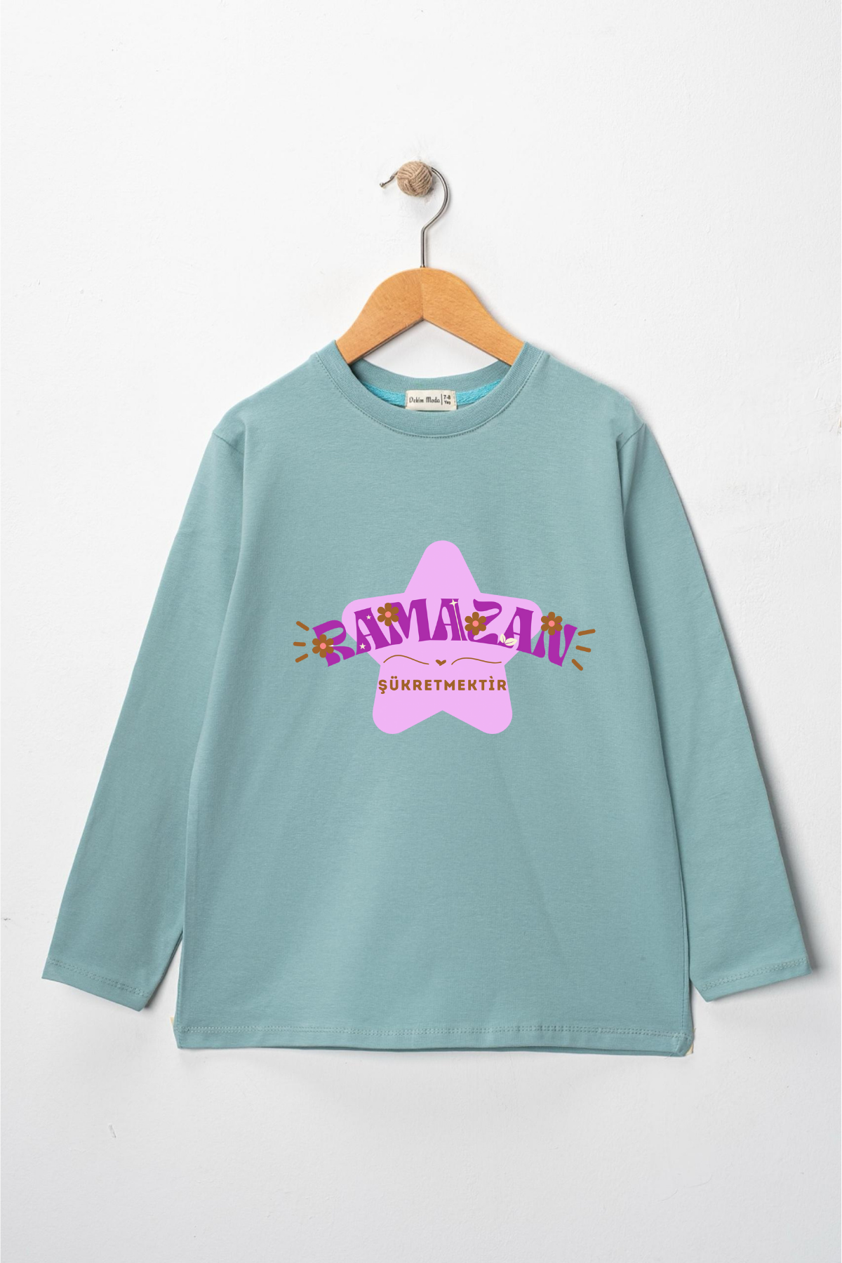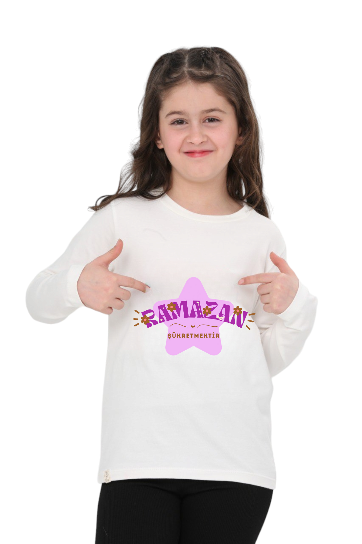 Kız Çocuk Uzun kollu, pamuklu, bisiklet yaka, baskılı t-shirt. İslami tema "Ramazan Şükretmektir" baskılı özel tasarım üründür. Çocuk fıtratına uygun, çocukların sevebileceği görseller kullanılarak tasarlanmıştır. Değerli Ebeveyn, Birlikte yeni bir nesil için çabalayarak başarabiliriz, herkes bir ucundan tutarak kendi çocuklarını hayırlı evlat yetiştirme gayretinde olursa neslimiz için üzerimize düşeni yapmış olacağız. Bu tişört tüm etkinliklerde çocuğuza çok güzel eşlik edecektir. Regular (rahat/bol) kalıptır. Beden ölçülerine dikkat ederek yaşına uygun seçim yapabilirsiniz. Mankenin ölçüleri boy 137cm 29kg yaş 9 , Mankenin giydiği beden: 9-10 yaş %95 Pamuk %5 Elastan. Çok Yumuşak, esnek ve kaliteli bir üründür. Ekoteks Belgesi, kumaşın zararsız olduğunu ve herhangi zararlı bir kimyasal madde içermediğini beyan etmektedir. #Özel Ürün 30 Derecede makinede yıkanabilir • Beyazlatıcı kullanımı önerilmez • Kurutucu kullanımı önerilmez • Tersten ve düşük ısı ile ütü önerilir