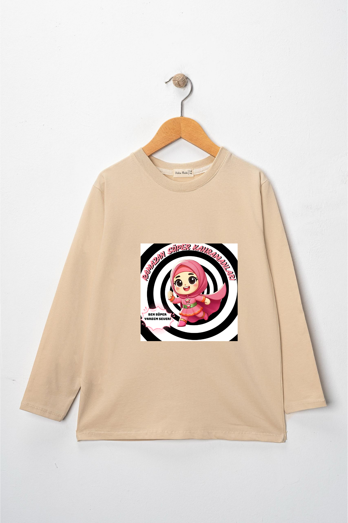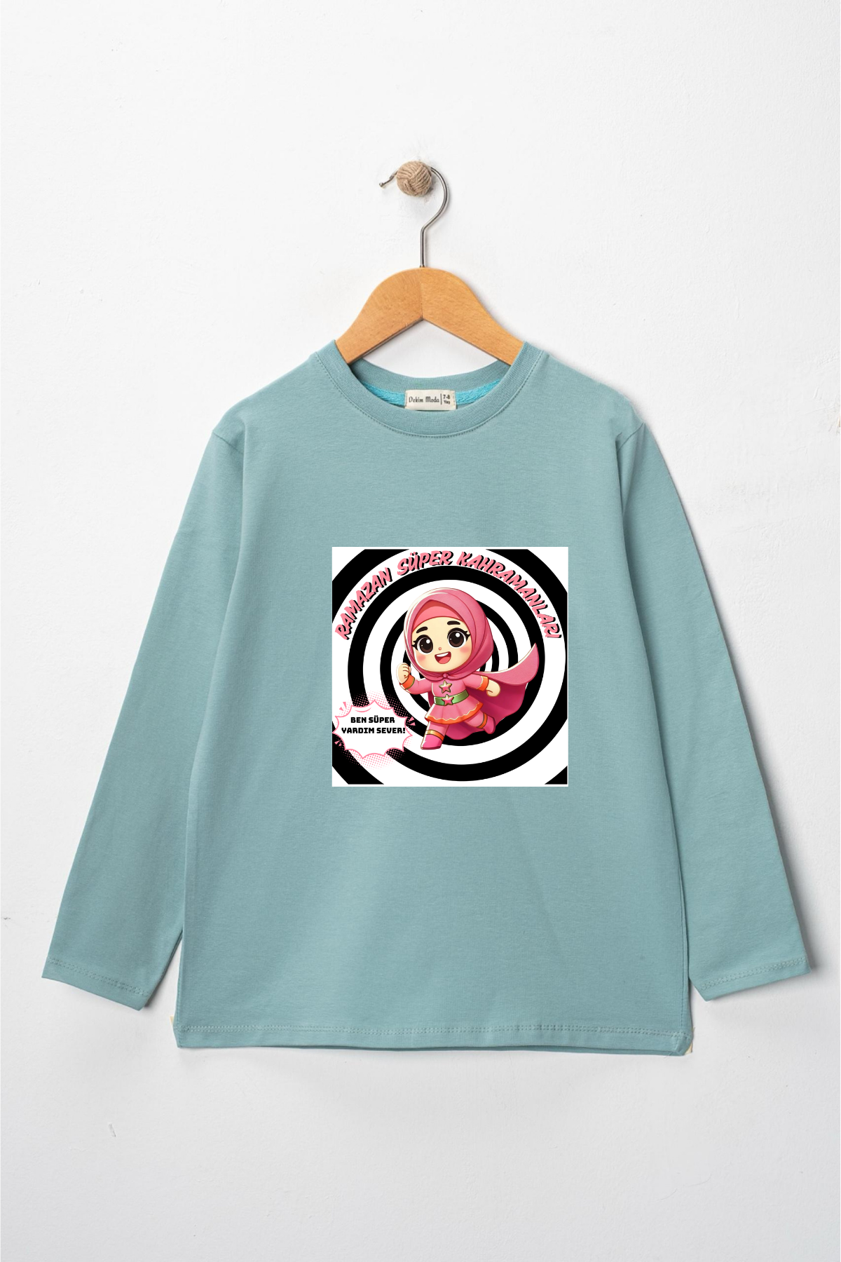 Kız Çocuk Uzun kollu, pamuklu, bisiklet yaka, baskılı t-shirt. İslami tema "Ramazan Süper Kahramanları"   baskılı özel tasarım üründür. Çocuk fıtratına uygun, çocukların sevebileceği görseller kullanılarak tasarlanmıştır. Değerli Ebeveyn, Birlikte yeni bir nesil için çabalayarak başarabiliriz, herkes bir ucundan tutarak kendi çocuklarını hayırlı evlat yetiştirme gayretinde olursa neslimiz için üzerimize düşeni yapmış olacağız.  Bu tişört tüm etkinliklerde çocuğuza çok güzel eşlik edecektir. Regular (rahat/bol)  kalıptır. Beden ölçülerine dikkat ederek yaşına uygun seçim yapabilirsiniz.  Mankenin ölçüleri boy 137cm  29kg  yaş 9 , Mankenin giydiği beden: 9-10 yaş %95 Pamuk %5 Elastan. Çok Yumuşak, esnek ve kaliteli bir üründür. Ekoteks Belgesi, kumaşın zararsız olduğunu ve herhangi zararlı bir kimyasal madde içermediğini beyan etmektedir. #Özel Ürün 30 Derecede makinede yıkanabilir • Beyazlatıcı kullanımı önerilmez • Kurutucu kullanımı önerilmez • Tersten ve düşük ısı ile ütü önerilir