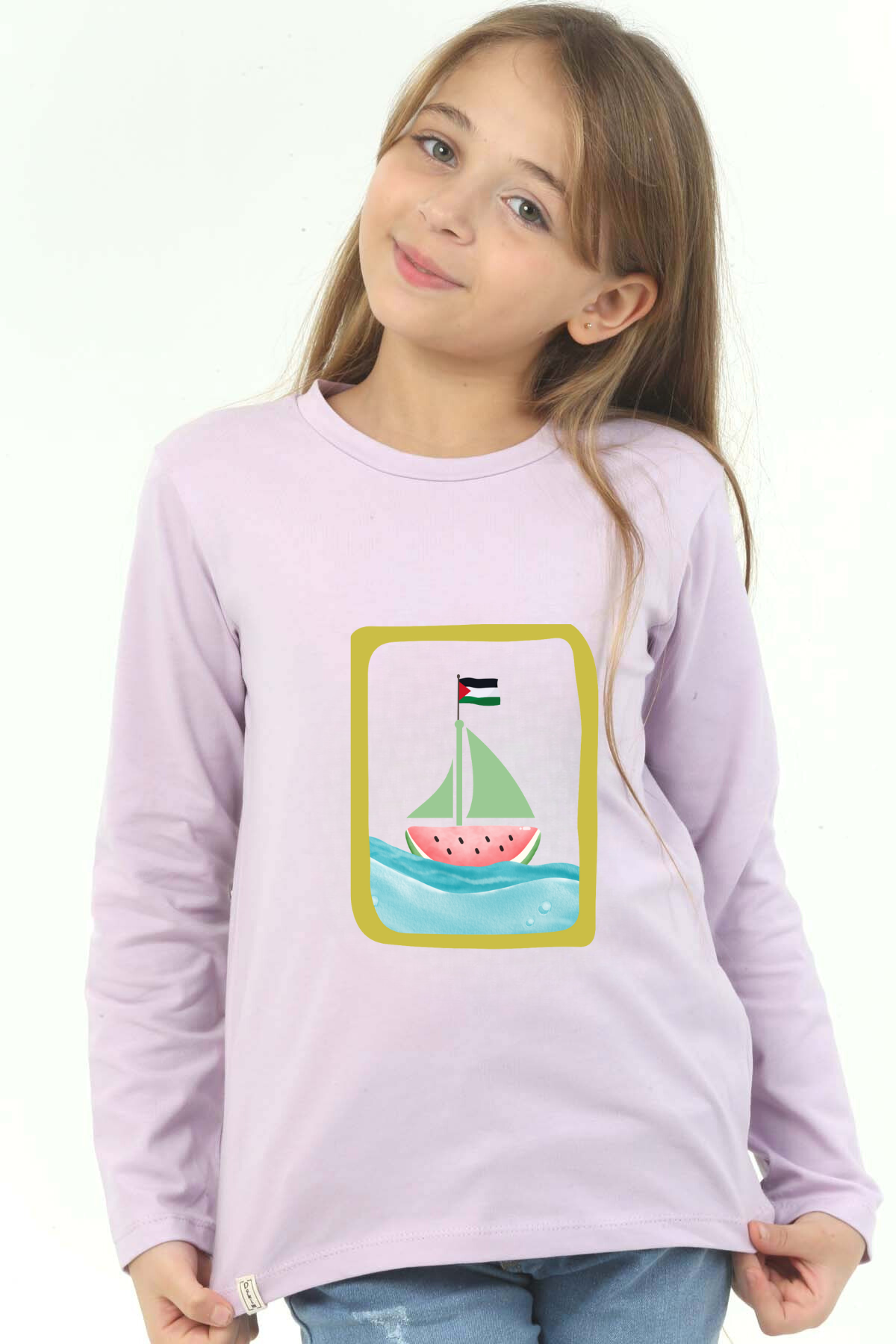 Kız Çocuk Uzun kollu, pamuklu, bisiklet yaka, baskılı t-shirt. İslami tema "Filistin, Gazze Gemi" baskılı özel tasarım üründür. Çocuk fıtratına uygun, çocukların sevebileceği görseller kullanılarak tasarlanmıştır. Değerli Ebeveyn, Birlikte yeni bir nesil için çabalayarak başarabiliriz, herkes bir ucundan tutarak kendi çocuklarını hayırlı evlat yetiştirme gayretinde olursa neslimiz için üzerimize düşeni yapmış olacağız. Bu tişört tüm etkinliklerde çocuğuza çok güzel eşlik edecektir. Regular (rahat/bol) kalıptır. Beden ölçülerine dikkat ederek yaşına uygun seçim yapabilirsiniz. Mankenin ölçüleri boy 137cm 29kg yaş 9 , Mankenin giydiği beden: 9-10 yaş %95 Pamuk %5 Elastan. Çok Yumuşak, esnek ve kaliteli bir üründür. Ekoteks Belgesi, kumaşın zararsız olduğunu ve herhangi zararlı bir kimyasal madde içermediğini beyan etmektedir. #Özel Ürün 30 Derecede makinede yıkanabilir • Beyazlatıcı kullanımı önerilmez • Kurutucu kullanımı önerilmez • Tersten ve düşük ısı ile ütü önerilir