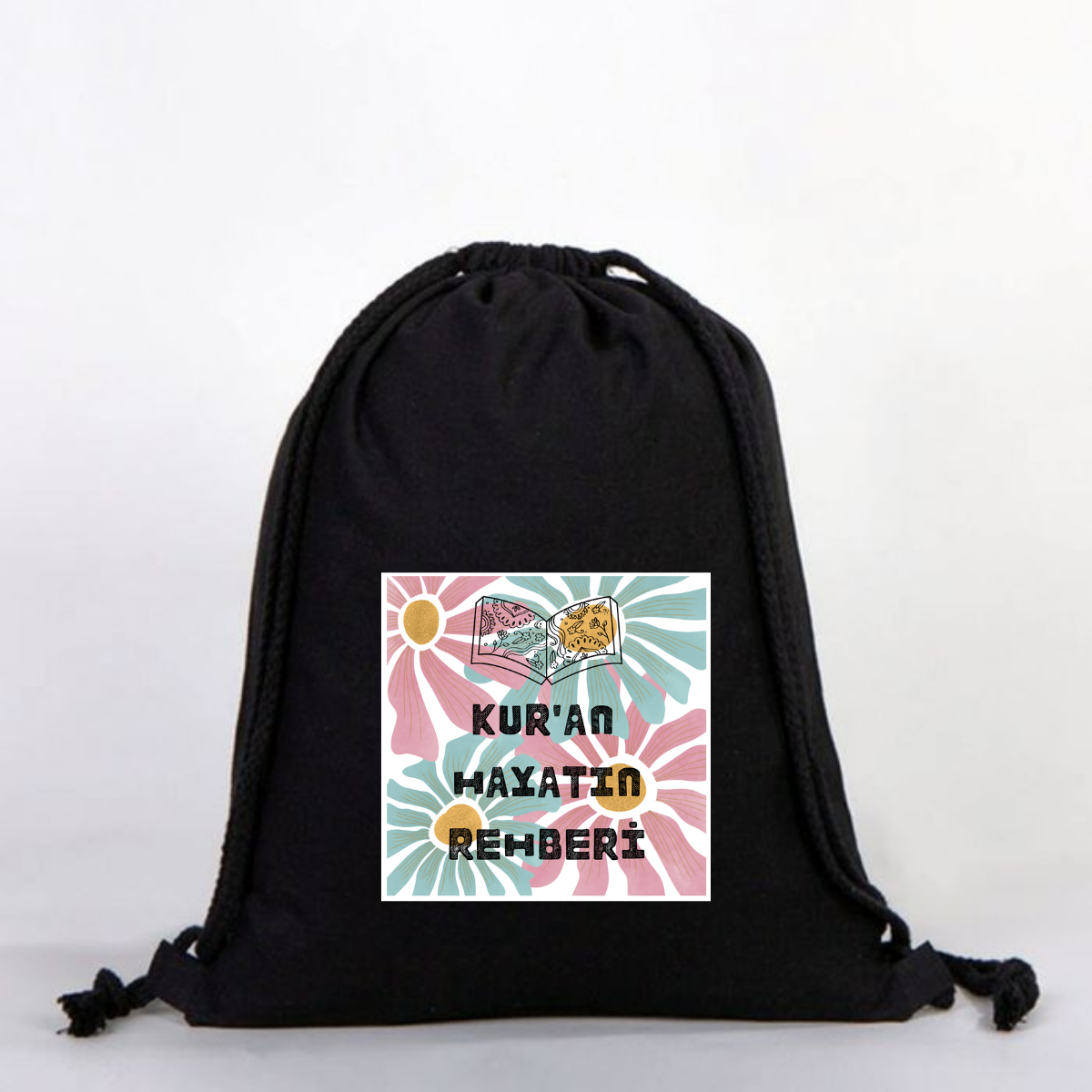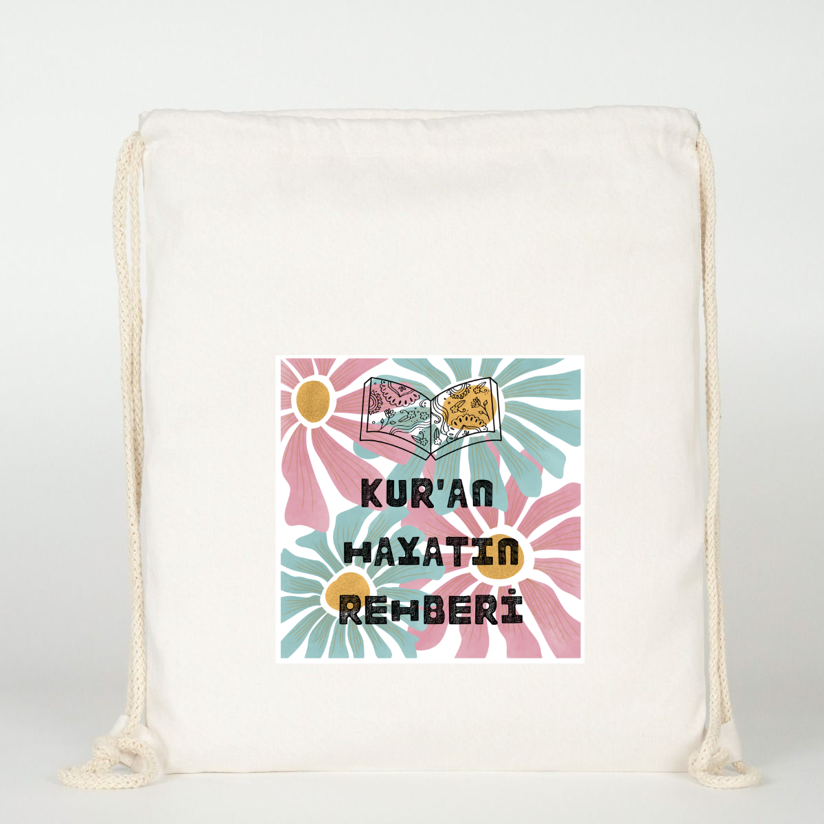 "Kuran Hayatın Rehberi" Baskılı Ham Bez Sırt Çantası %100 Pamuk Krem