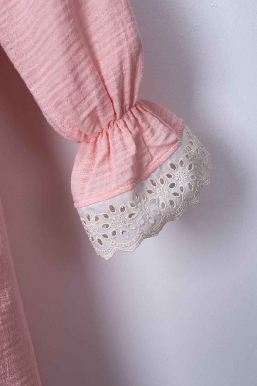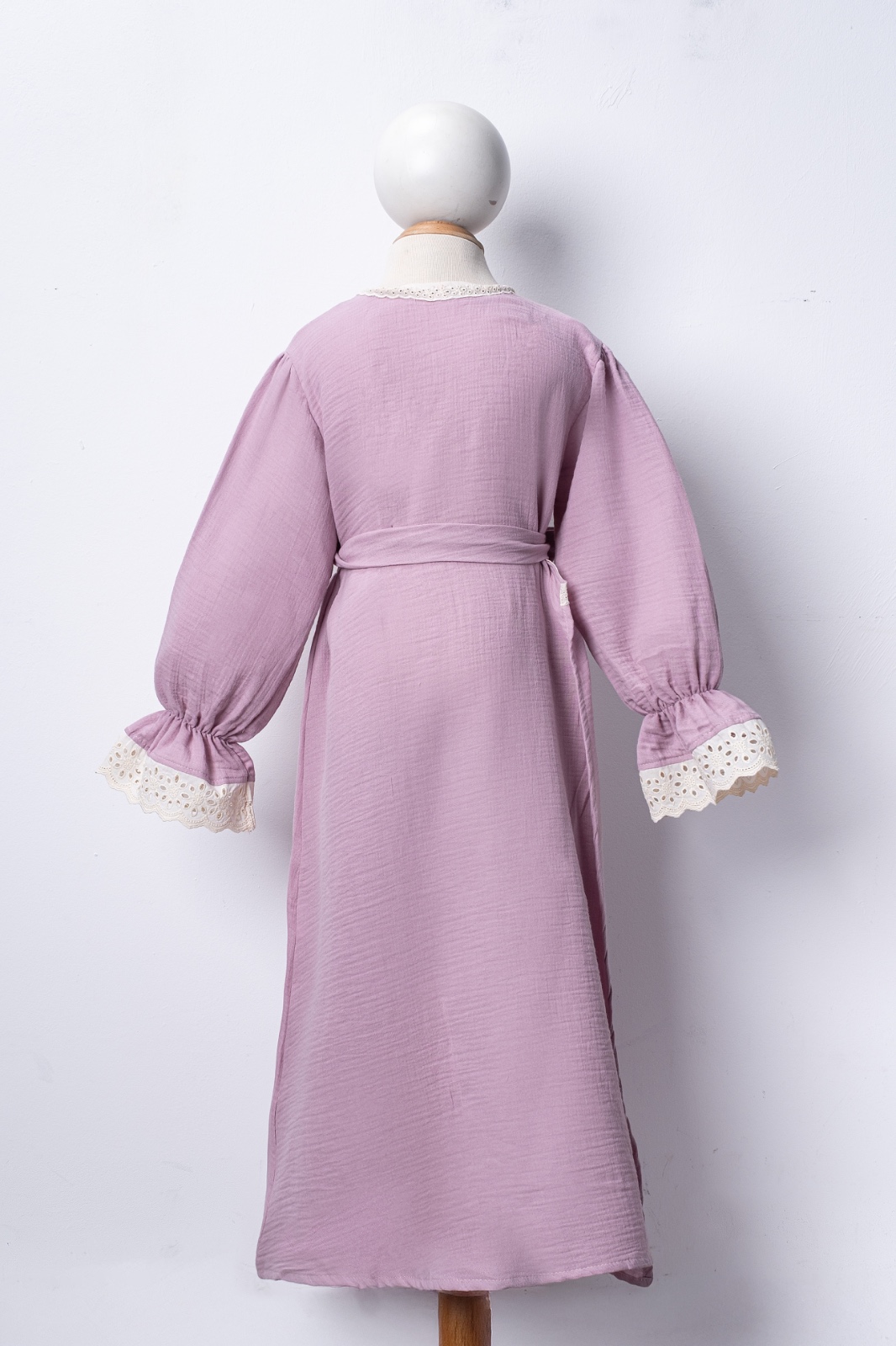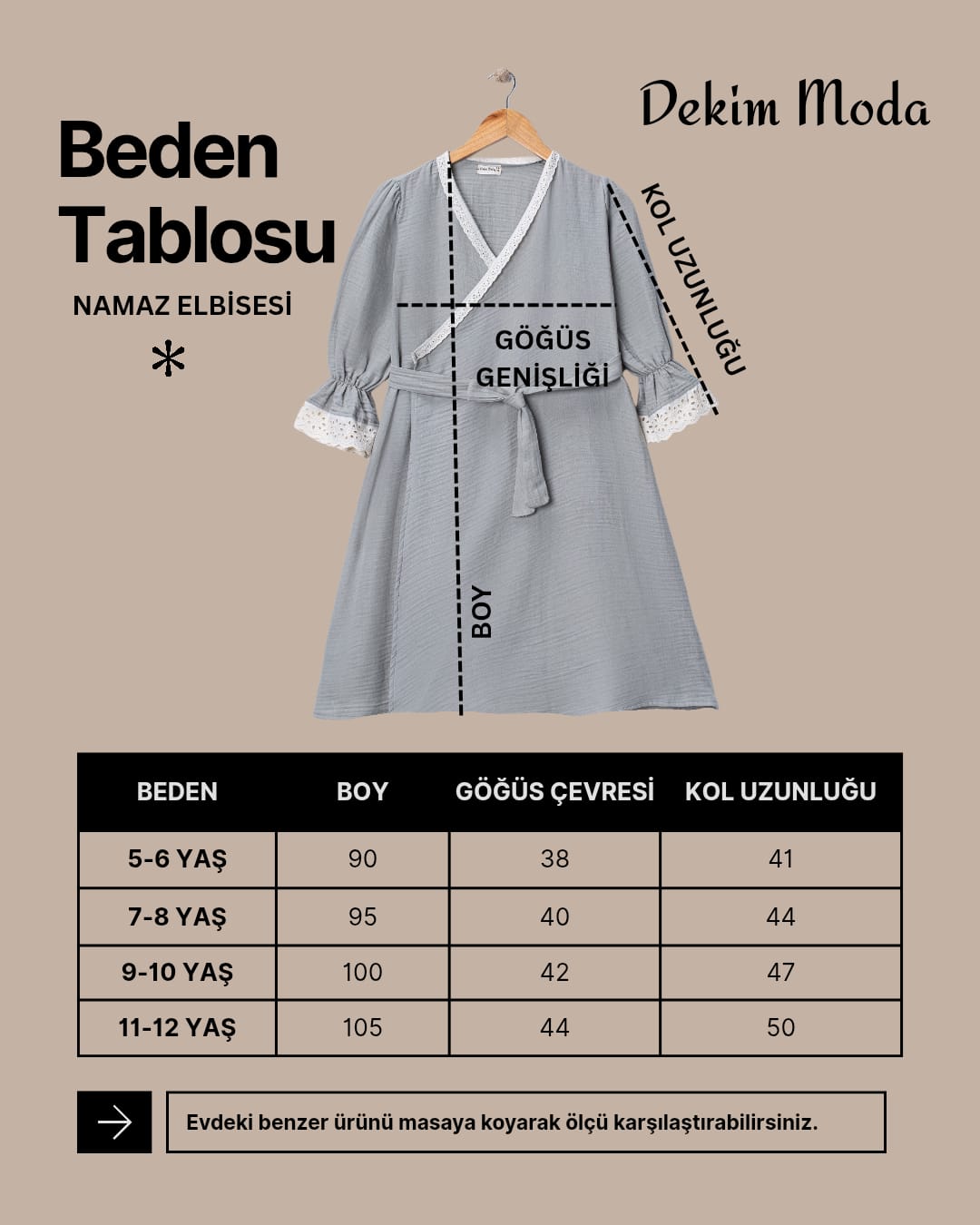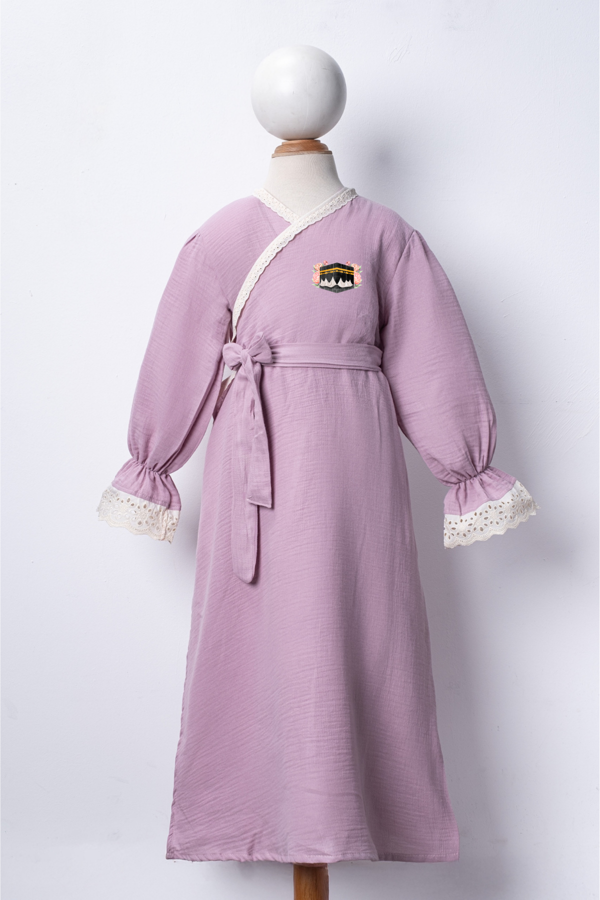 "Anne, ben kendim bağlayabilirim!" dedirten tasarımımızla tanışın. Özel bel kemeri ve pratik ip bağlama detayı sayesinde, minikler kimsenin yardımına ihtiyaç duymadan elbiselerini kendileri kolayca bağlayabilir. Müslin kumaşın hafifliği, fisto detaylarının zerafeti, hareket özgürlüğünü kısıtlamayan rahat kalıbı vardır, sıcak havalarda terletmez, çocukların ibadet sırasında konforlu hareket etmesine olanak sağlar.