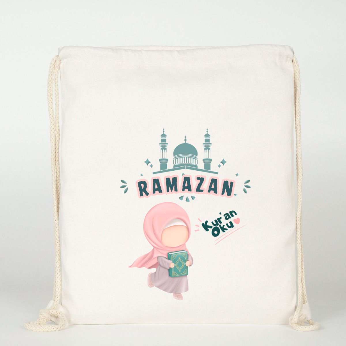 Ramazan Baskılı Ham Bez Sırt Çantası %100 Pamuk Kız Çocuk