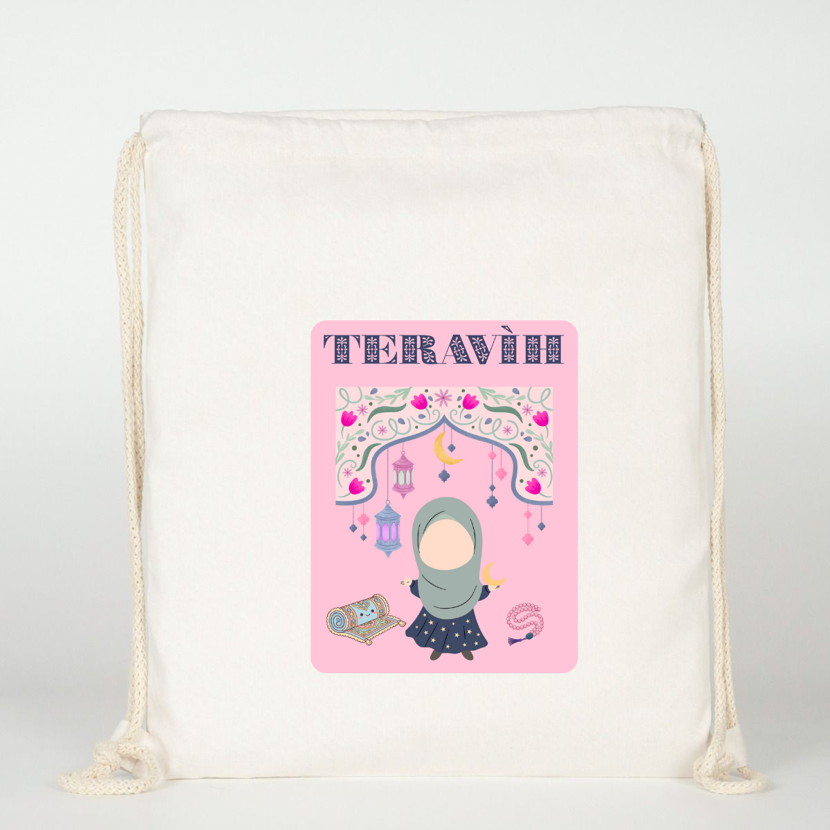 Büyük bir özenle üretilen "Teravih Çantası Dua" baskılı ham bez sırt çantası, gerekli eşyalarınızı taşımanın yanı sıra, manevi değerleri de yanınıza almanızı sağlar. Tarzınızı yansıtan bu çantayı alarak hem kendinize hem de sevdiklerinize güzel bir hediye seçeneği oluşturabilirsiniz. Huzur dolu günler dileriz!