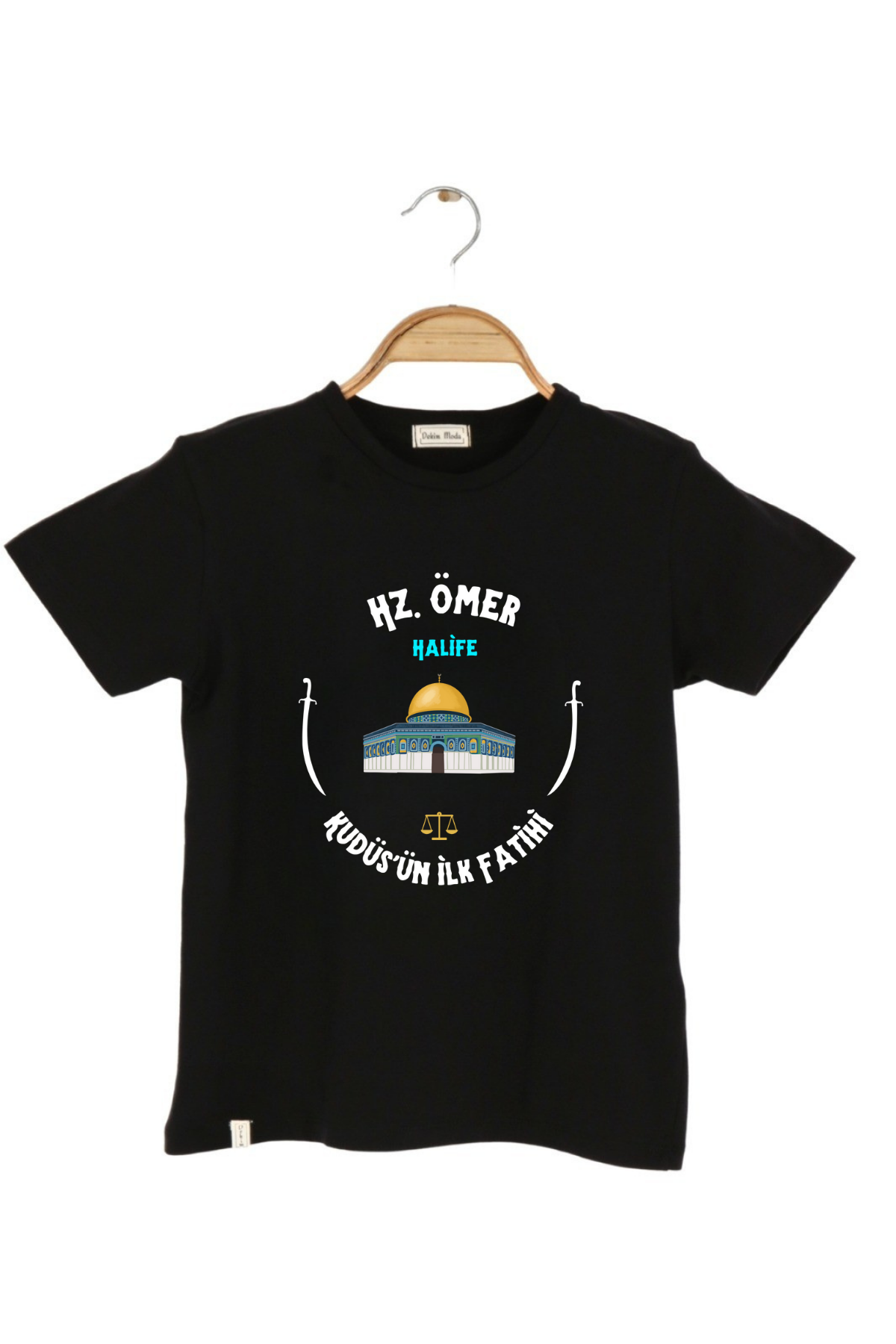Erkek Çocuklar ve Babalar için Kısa kollu, pamuklu, bisiklet yaka, baskılı t-shirt. İslami tema Hz.Ömer baskılı özel tasarım üründür.Çocuk fıtratına uygun, çocukların sevebileceği görseller kullanılarak tasarlanmıştır. Mescid-i Aksa'nın özel sevgisi çocuklarımızın kalplerinde çiçek açsın. Bilinçli anneler, fetih sevdalı, kahraman Hz.Ömer'i tanıyan ve anlayan bir nesil yetiştiriyor.Çocuklarımız gerçek kahramanları tanısın. T-shirt Regular (rahat/bol) kalıptır. Beden ölçülerine dikkat ederek yaşına uygun seçim yapabilirsiniz. %95 Pamuk %5 Elastan. Çok yumuşak, esnek ve kaliteli bir kumaştır. Uygun sıcaklıkta yıkama yapılması halinde kumaşta çekme yaşanmayacaktır. Kumaşlarımız Oeko-Tex sertifikasına sahiptir. Uluslararası düzeyde geçerli bir belge olan Ekoteks, OEKO-TEX kuruluşunun tekstil ürünleri için geliştirdiği standartları referans almaktadır. Ekoteks Belgesi, kumaşın zararsız olduğunu ve herhangi zararlı bir kimyasal madde içermediğini beyan etmektedir. #Özel Ürün 30 Derecede makinede yıkanabilir • Beyazlatıcı kullanımı önerilmez • Kurutucu kullanımı önerilmez • Tersten ve düşük ısı ile ütü önerilir