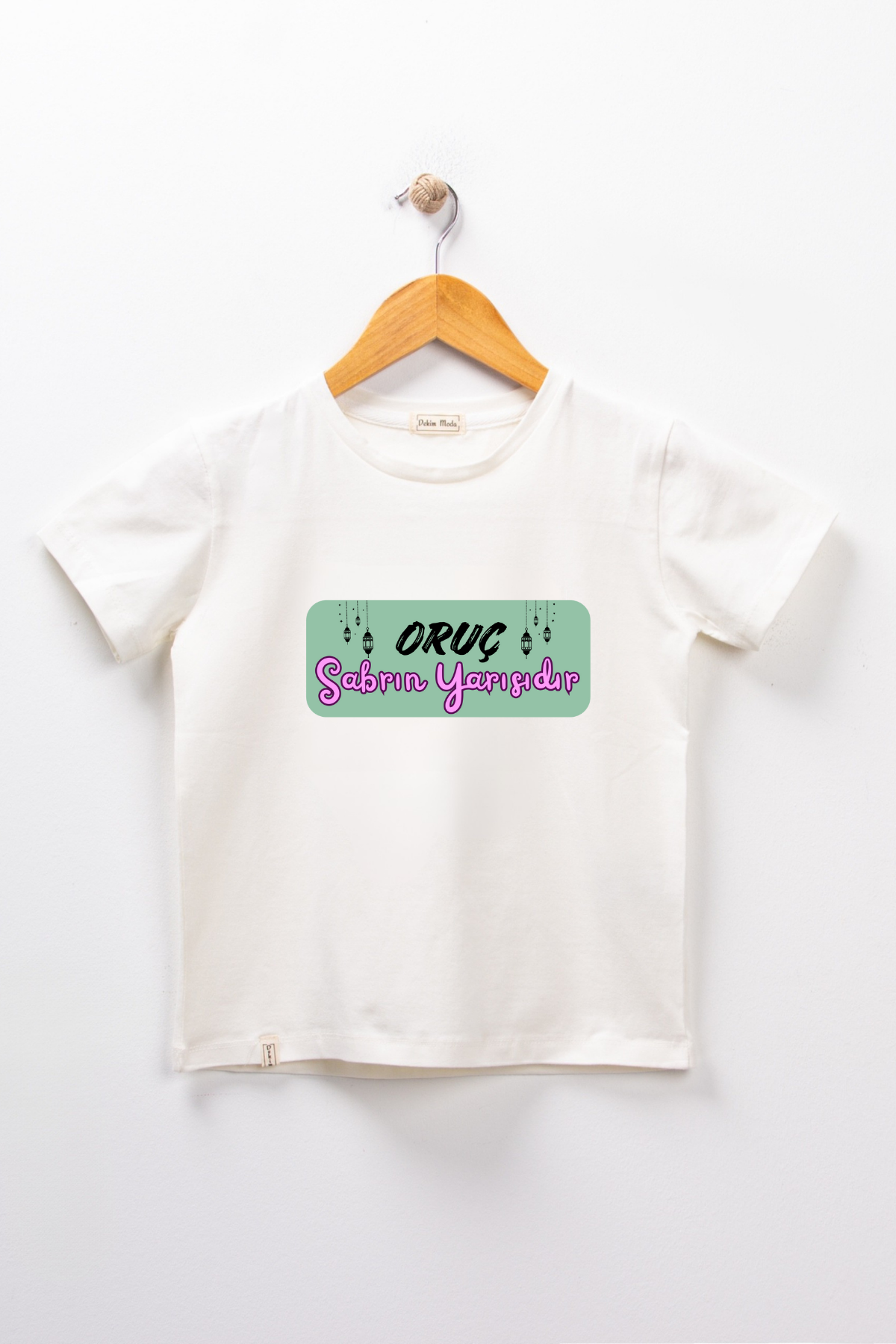 - Baskı: Tişörtün ön kısmında "Oruç Sabrın Yarısıdır" ifadesi şık bir tasarım ile baskı yapılmıştır. Bu anlamlı ifade, hem dini değerleri yansıtır hem de gündelik yaşamda derin anlamlar taşır.