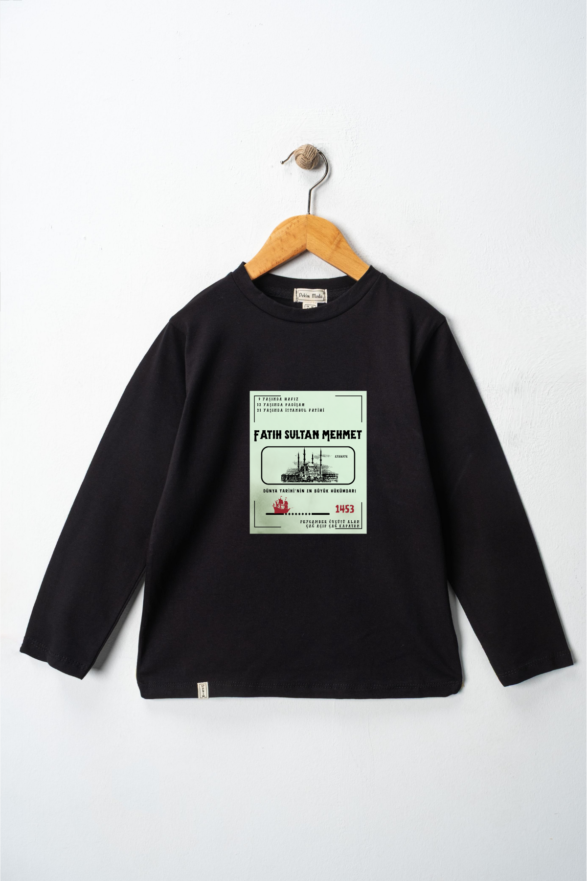 Yetişkin Uzun Kollu Bisiklet Yaka "Fatih Sultan Mehmet" Baskılı Tişört Mevsimlik Pamuklu